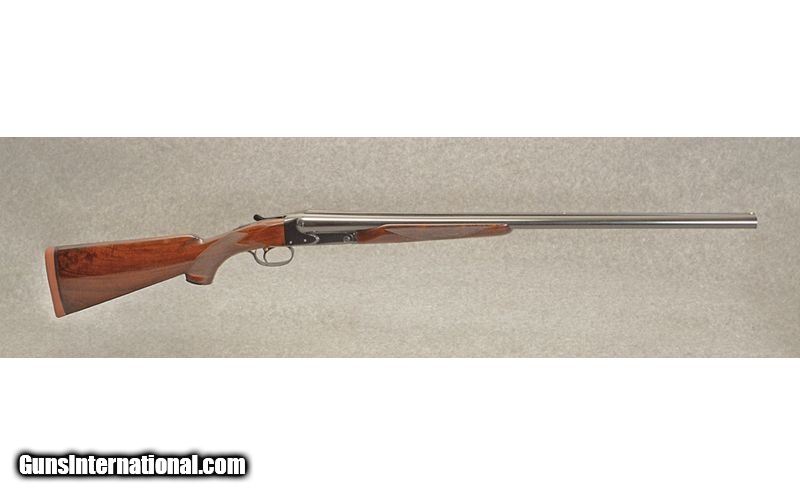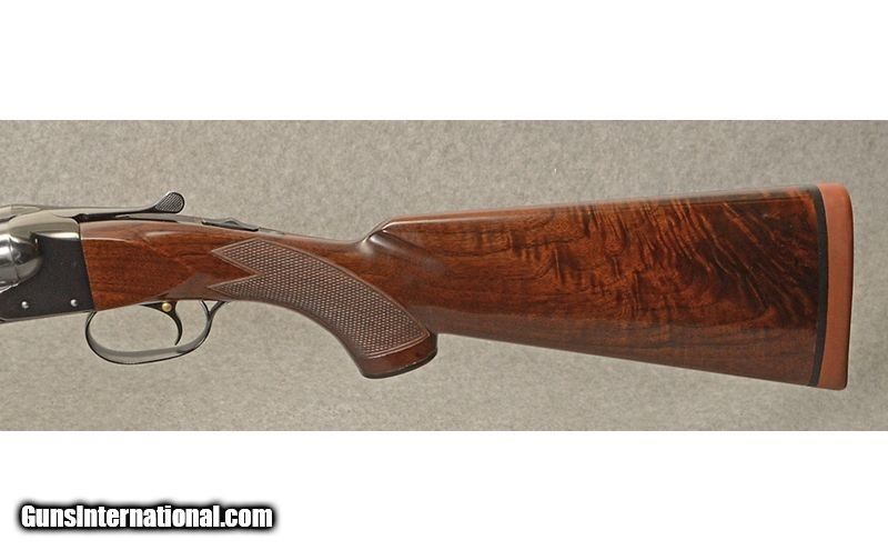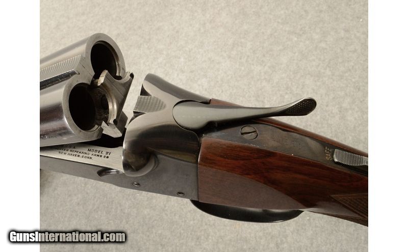 Description: Exceptional Winchester Model 21 Double Barrel Shotgun Manufactured circa 1949. Single white bead sight and white mid beat on the matte solid rib, chokes marked modified/full. The water table is marked with the three-line "MADE IN U.S.A. MODEL 21/WINCHESTER REPEATING ARMS CO./NEW HAVEN, CONN." Single trigger with selector, tang mounted automatic safety, and mounted with a checkered beaver tail walnut forearm. The checkering on the excellent wood shows the markings are crisp and clear. Mechanically excellent. 12 Gauge SOLD Chambers: 2 3/4" Shells only Metal Condition: Excellent Wood Condition: Excellent Bore Condition: Excellent Barrels: 28 Triggers: Single selective trigger Stock Dimensions: 14 1/2" LOP Fore End: Checkered beavertail Butt Pad: Red Winchester recoil pad Sights: Matte solid rib with white mid bead and white bead front sight Chokes: "Full, Modified Item Location: Garner, NC |