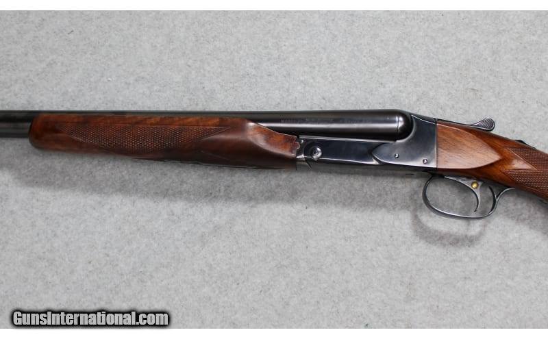 Description: This is a Winchester double barrel 12-gauge shotgun. It features checkered walnut foregrip and pistol grip, has a rubber recoil pad and a front beaded sight. Firearm has a 30" barrel with fixed choke (IM, Cyl) and the length of pull is 14.5 inches. This piece is in very good condition with only minor handling marks and scuffs. A fine addition to any collection. 12 Gauge SOLD Chambers: 2 Metal Condition: Very good with normal handling marks Wood Condition: Very good with normal handling marks Bore Condition: Bright and clear with good rifling Barrels: 30 inch Triggers: 1 Stock Dimensions: 14.5 LOP Fore End: Checkered walnut foregrip Butt Pad: Rubber recoil pad Weight: 7 lb 15 Oz Sights: Beaded front sight Item Location: Fort Worth, TX |