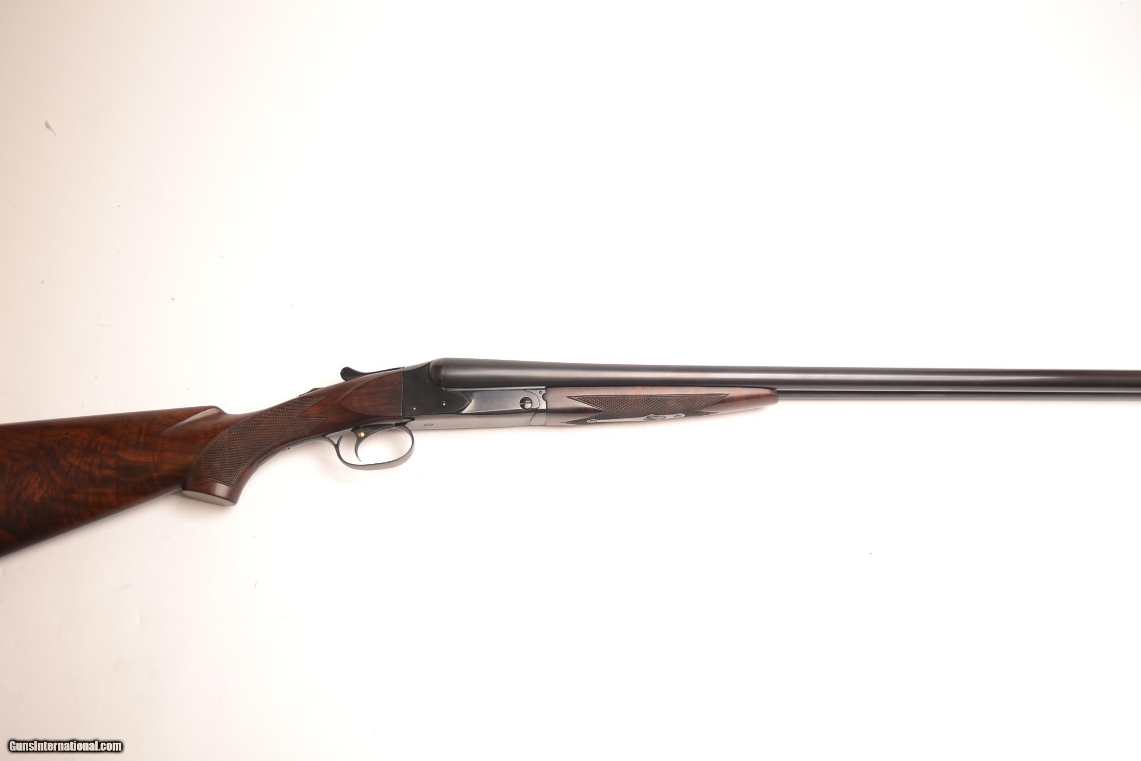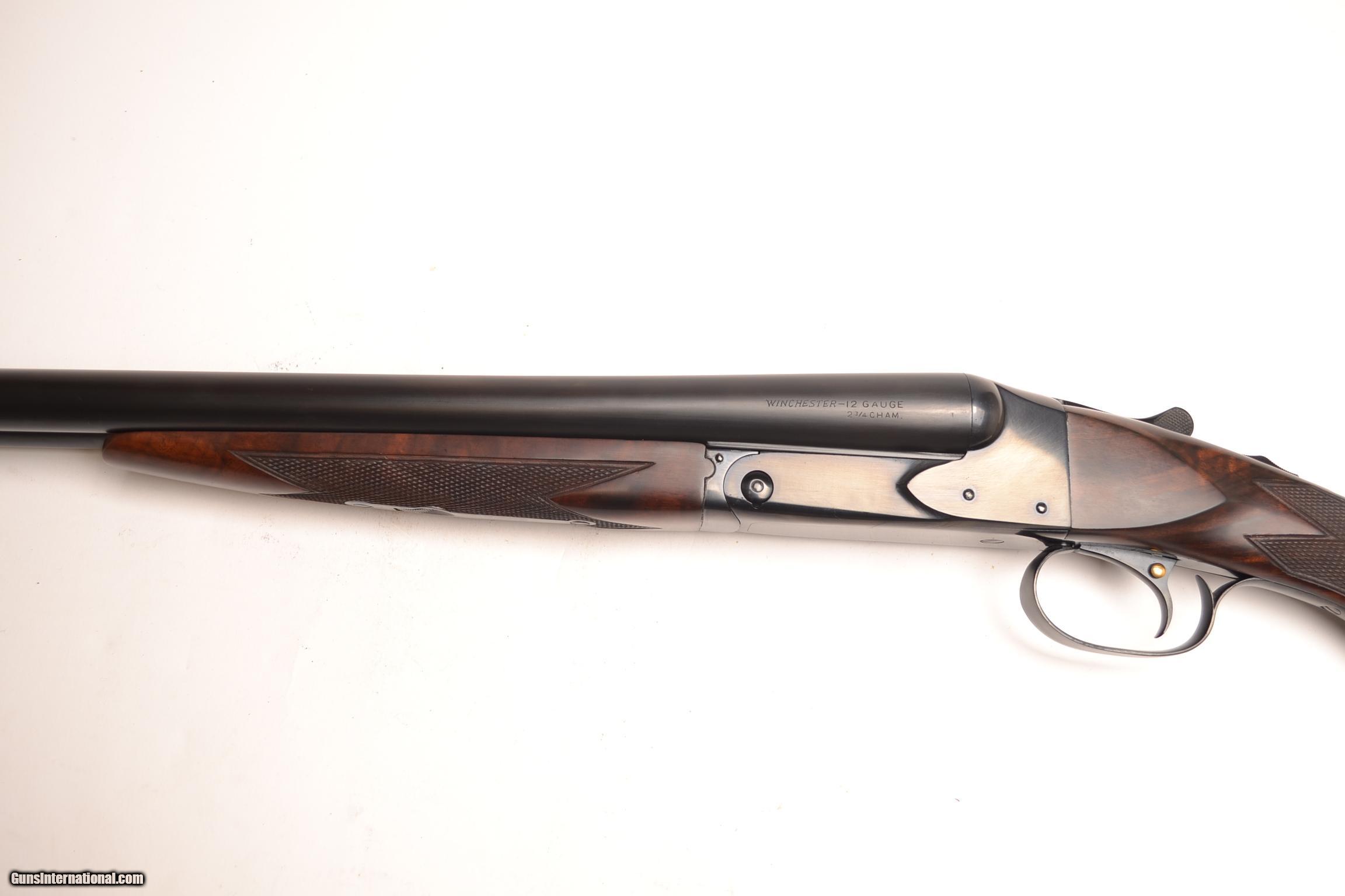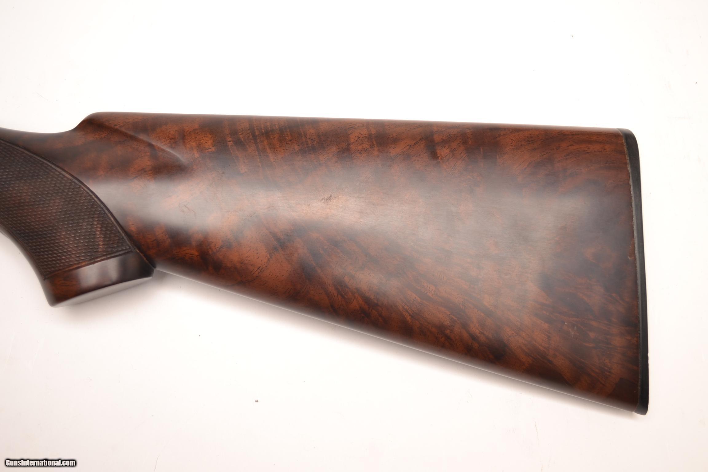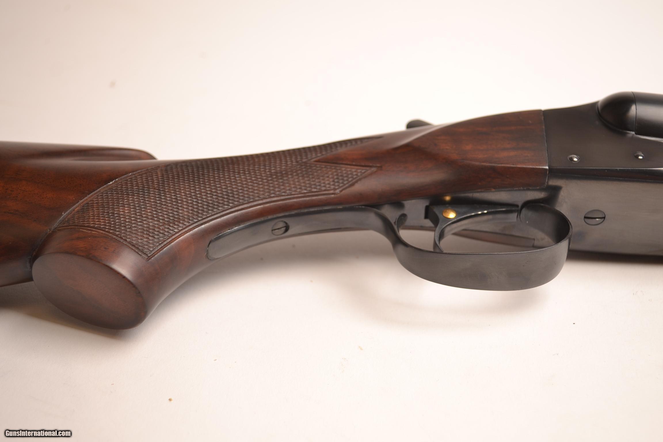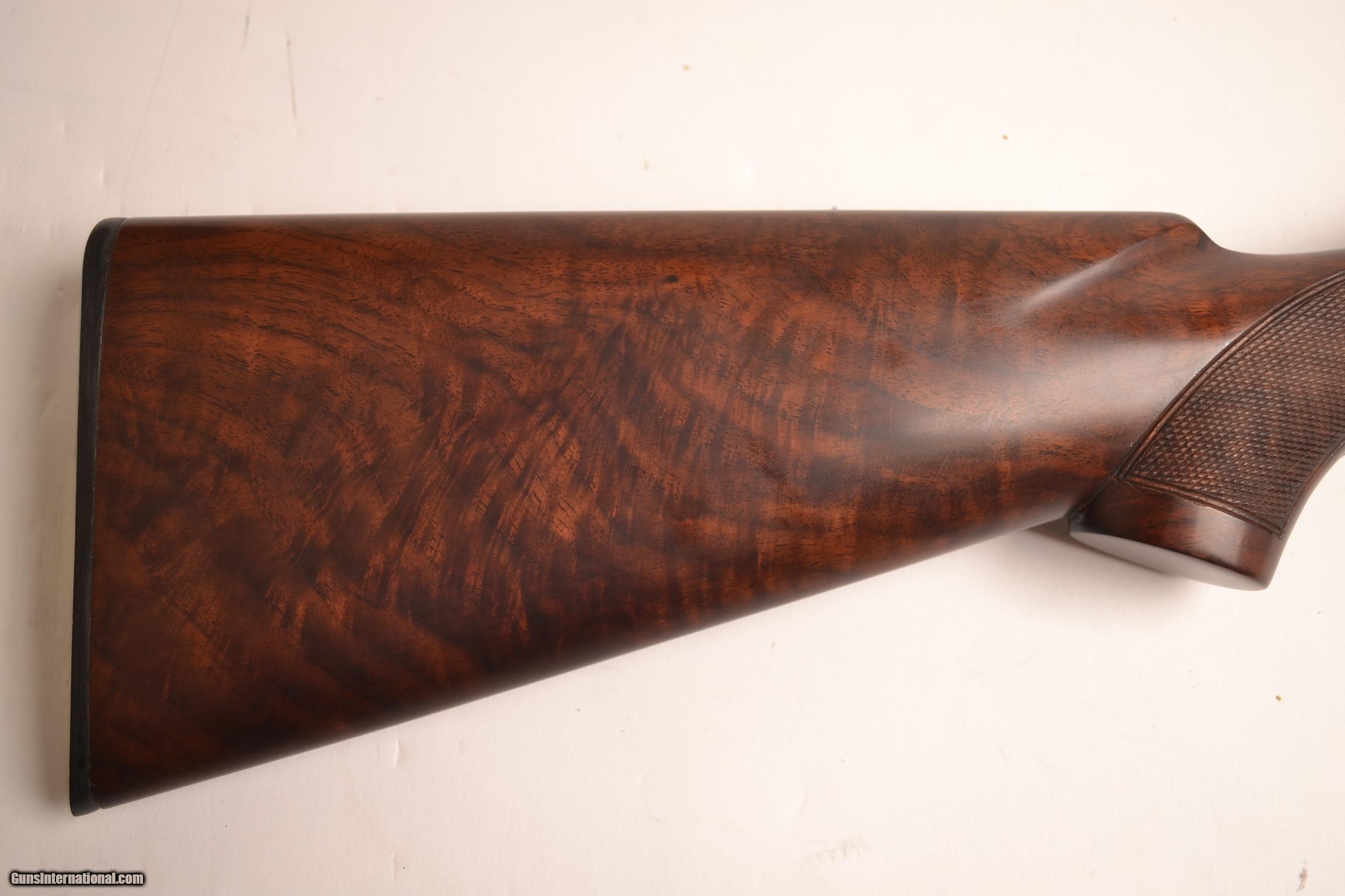 Description: Winchester Model 21,12ga., 28" barrels, choked IC/Mod. Pistol grip, butt plate, highly figured feather crotch wood. Rare splinter forend, Single Selective Trigger, Auto Ejector, matte rib. Superior gun that shows new in every way. The gun is sharp, crisp, extra tight, and clean. Inventory# 33833 14 1/4" x 1 1/2" x 2" Price: $6,999.00 SOLD |