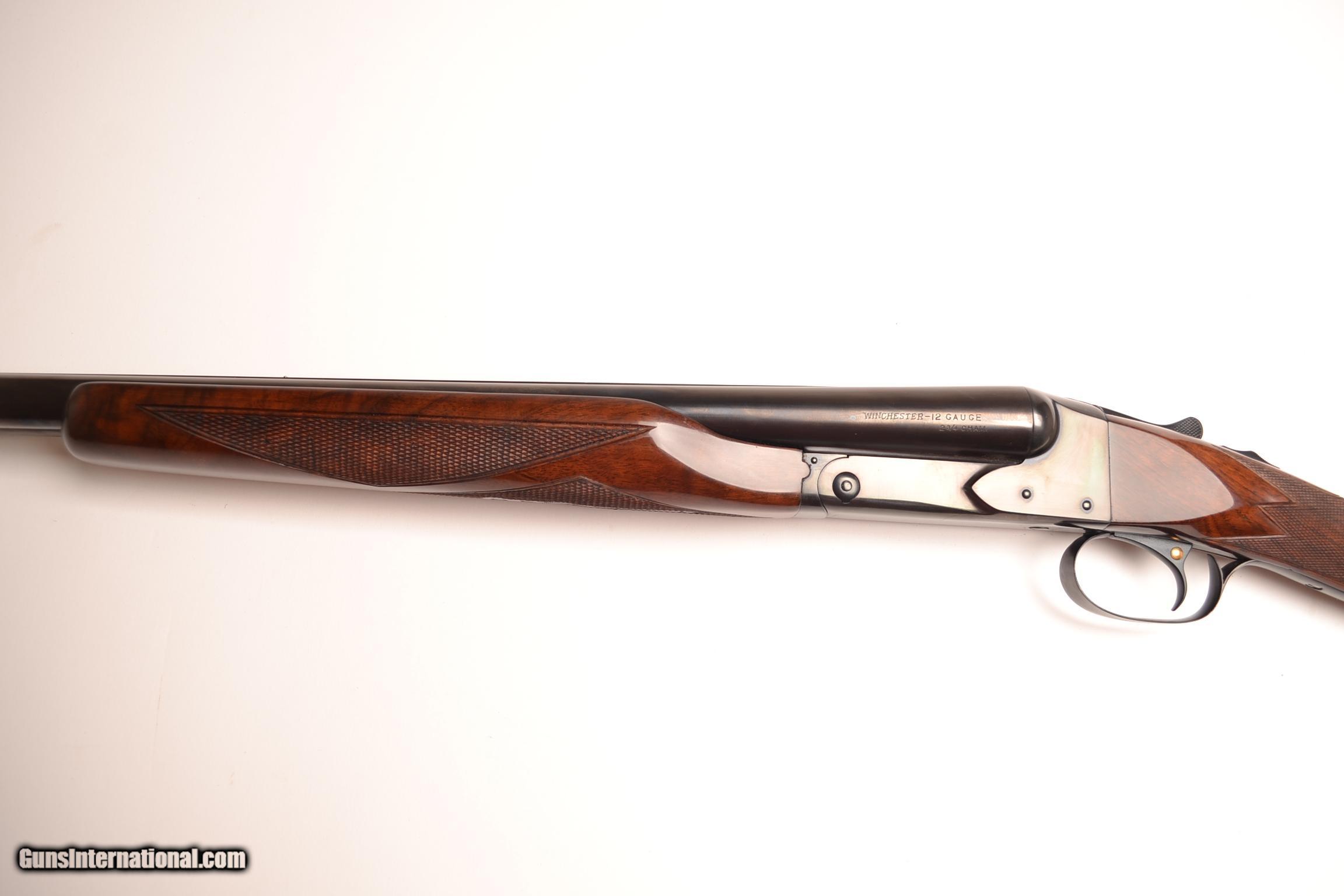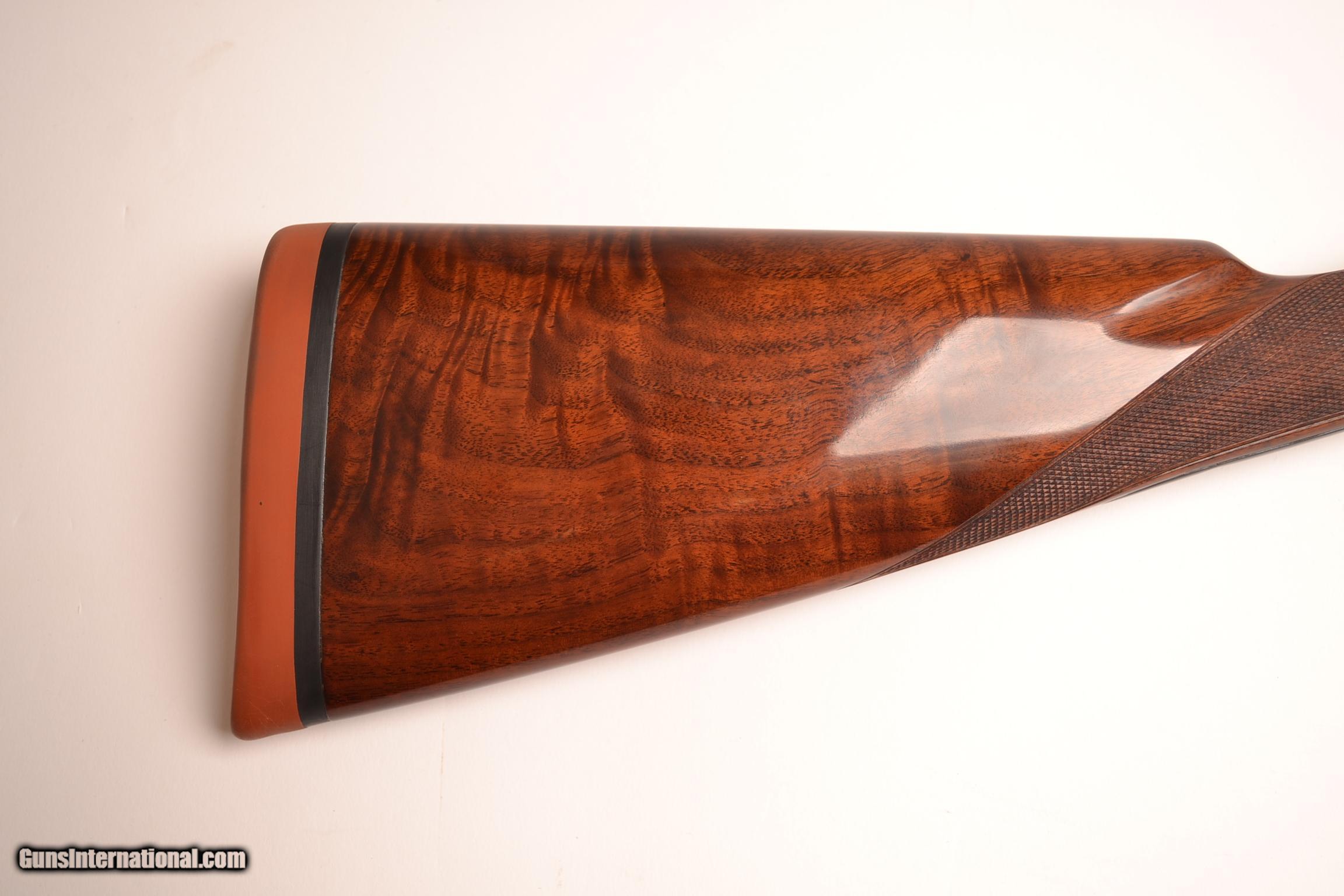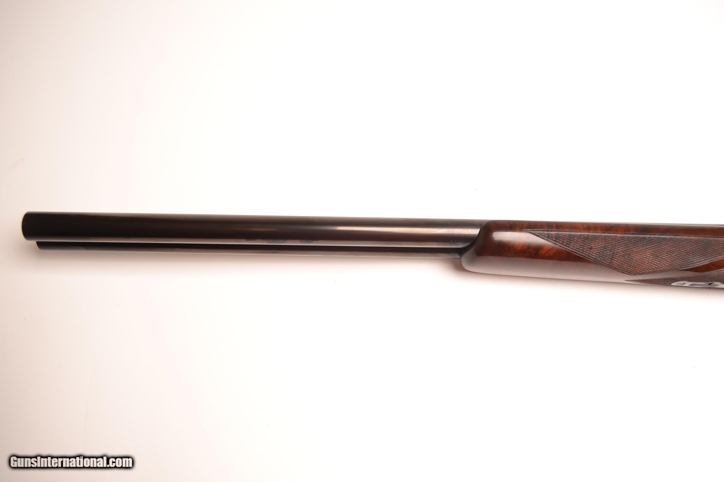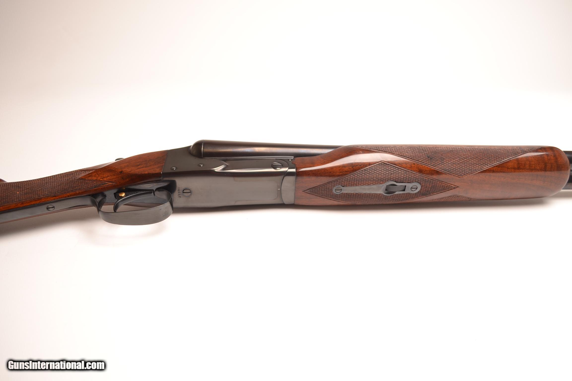 Description: Winchester - Model 21, 12ga. 26” barrels, choked WS1/WS2, straight grip, single selective trigger, auto-ejector, matte rib. This gun has 1950’s diamond checkering pattern on forend. 98% blue, marked skeet on bottom of the frame. Inv: 28743 LOP: 13 7/8” x 1 1/2" x 2" $5,750.00 SOLD |