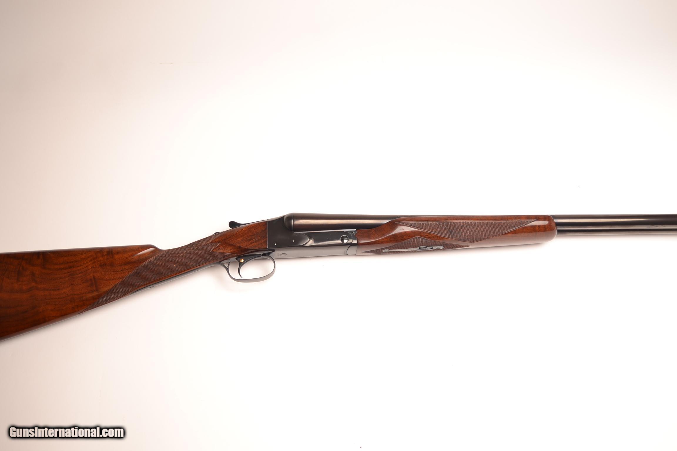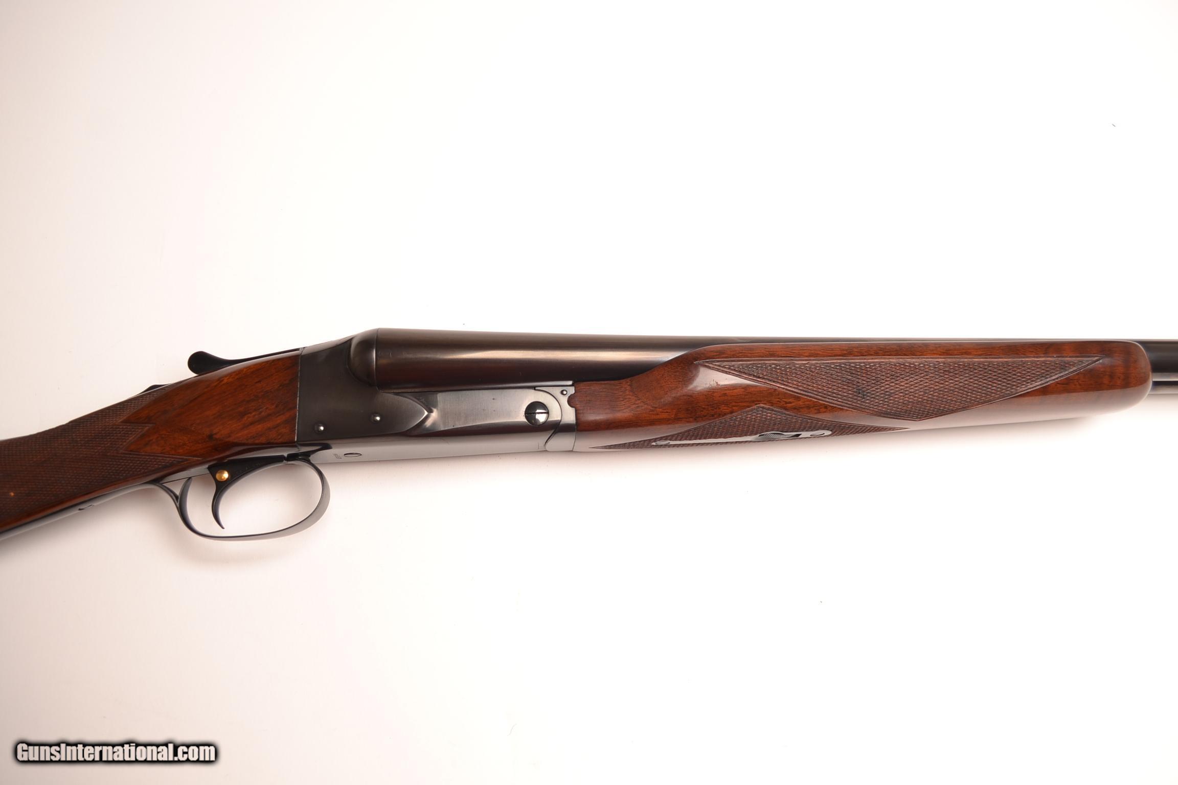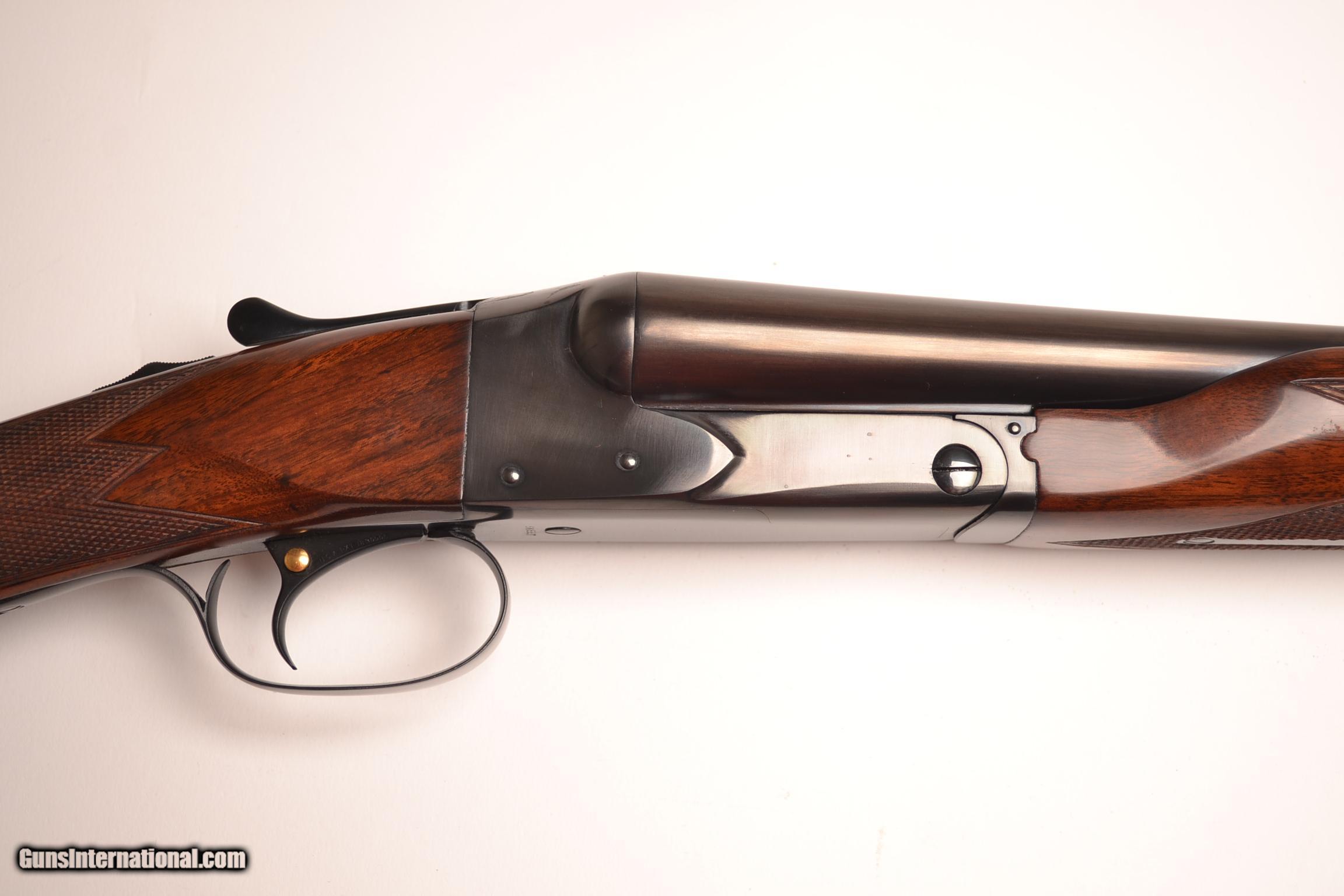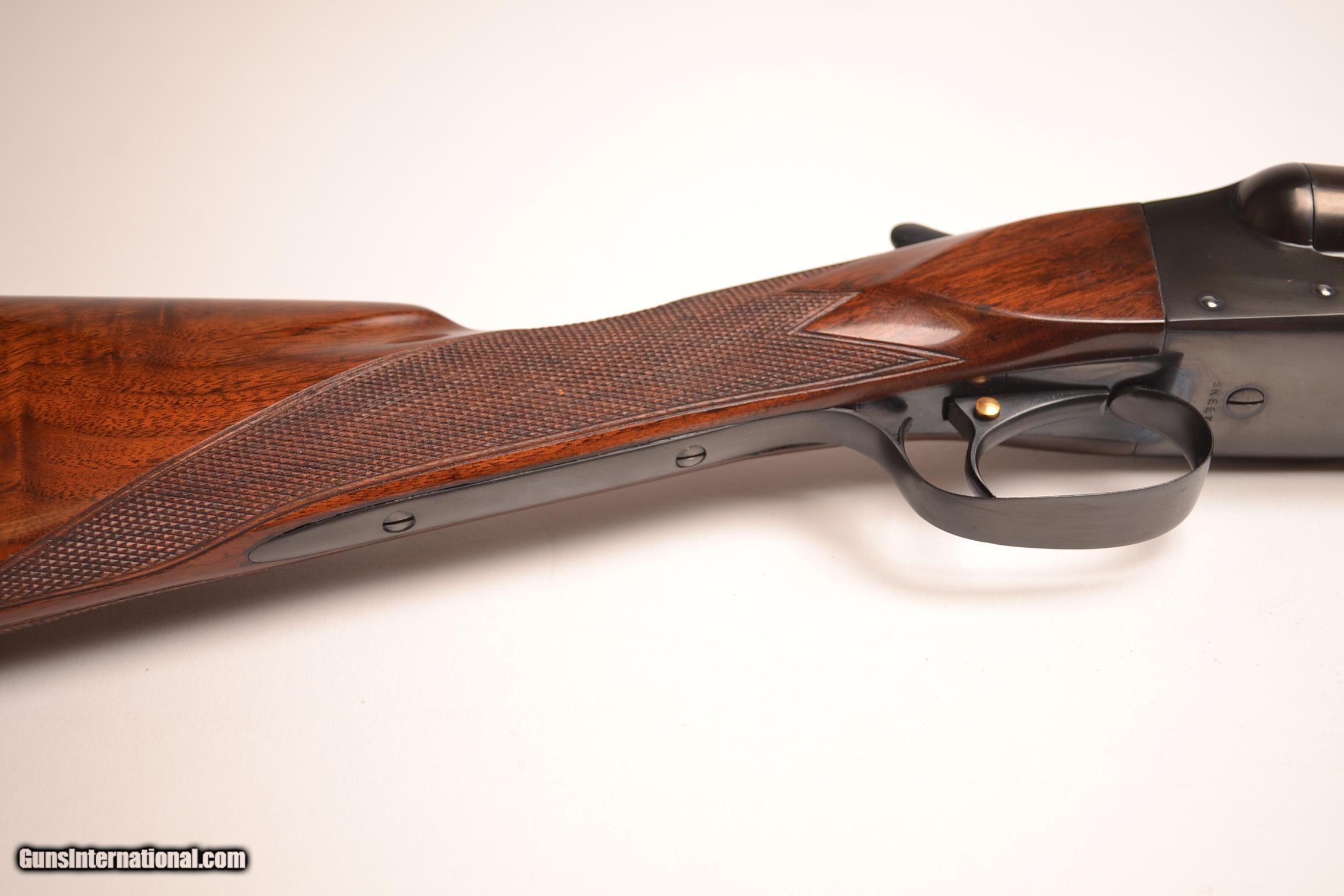 Description: Winchester - Model 21, 12ga. 26” barrels, choked WS1/WS2, straight grip, single selective trigger, auto-ejector, matte rib. This gun has 1950’s diamond checkering pattern on forend. 98% blue, marked skeet on bottom of the frame. Inv: 28743 LOP: 13 7/8” x 1 1/2" x 2" $5,750.00 SOLD |