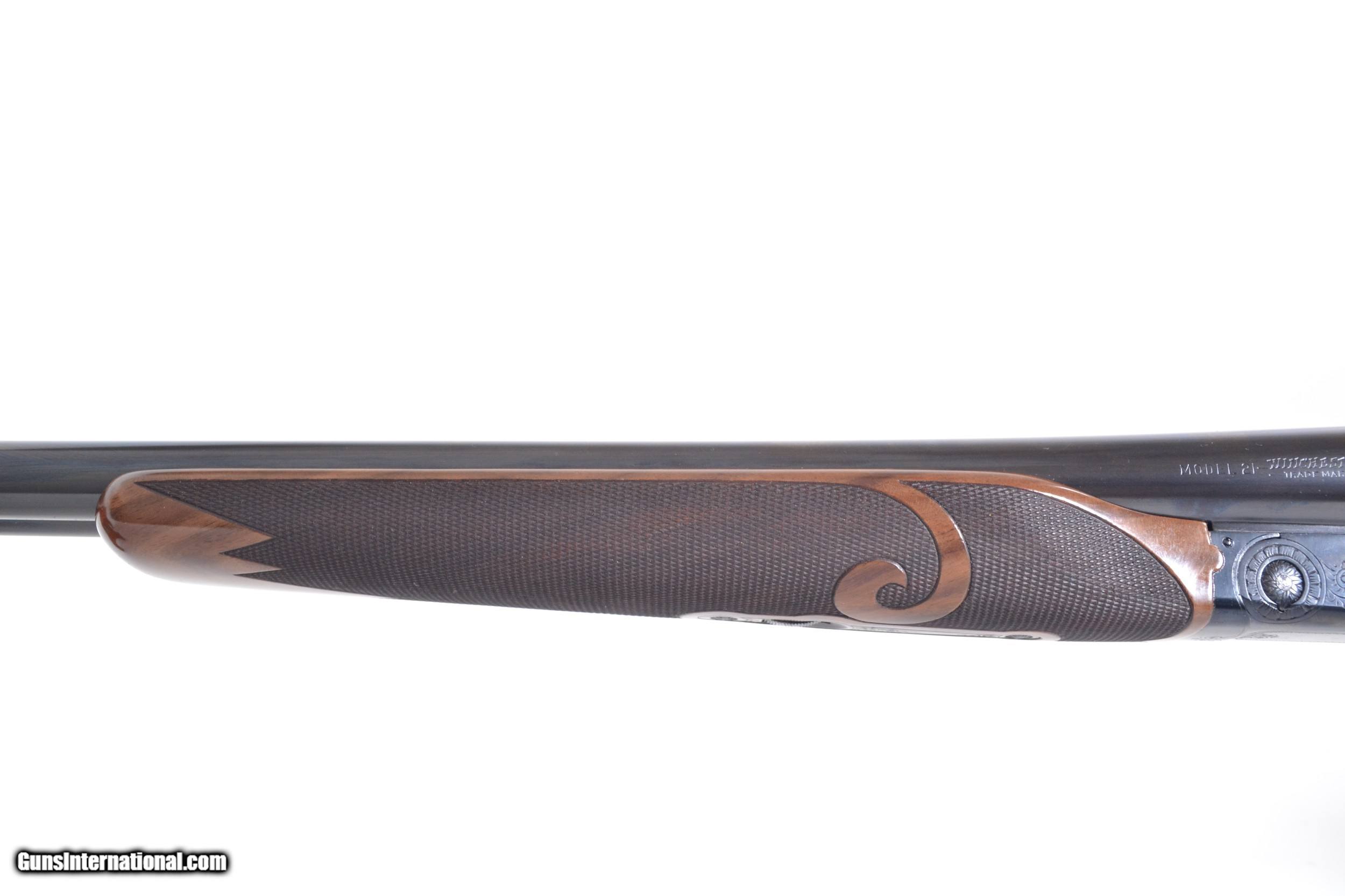 Description: Winchester Model 21 12ga. 26” barrel choked IC/MOD. Factory #2 engraved, A- carved wood, factory leather covered pad, letter from Cody Museum, made in 1955 and built to order. Extremely rare combination, superior wood, 99% gun, full factory documentation. Pistol grip, matte rib, single trigger, ejector. Inventory # 29361 Price - $8,995 SOLD |