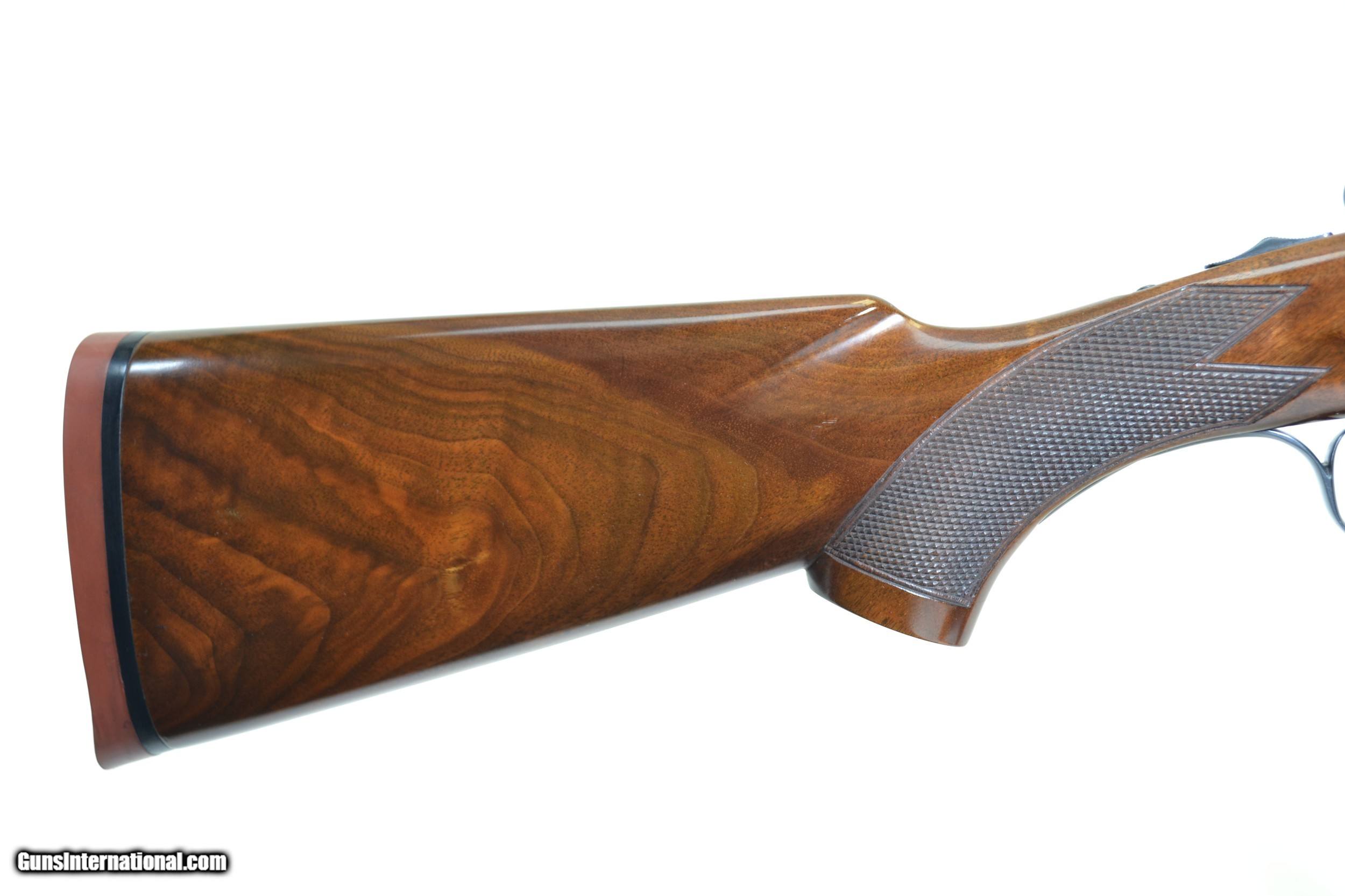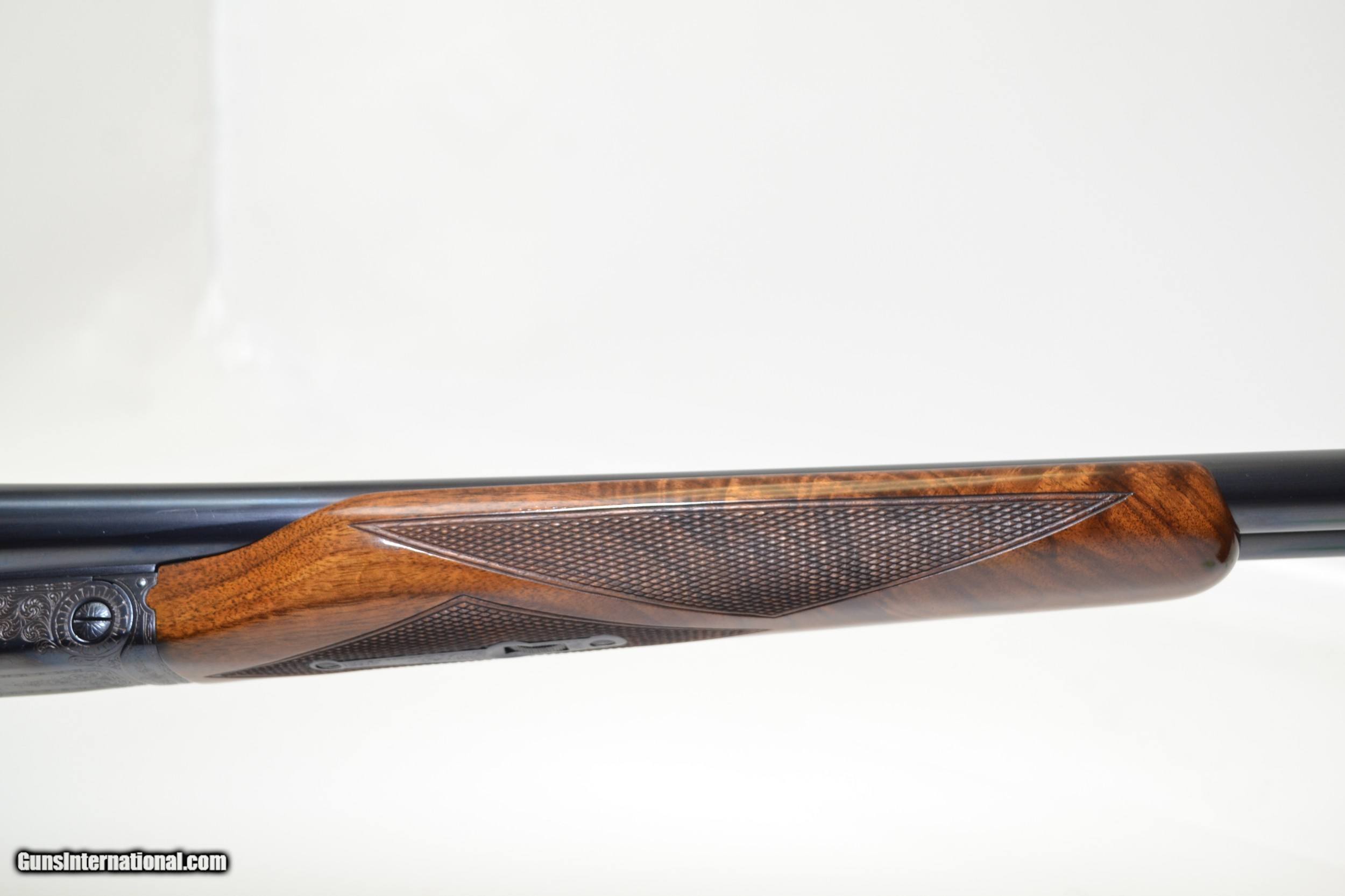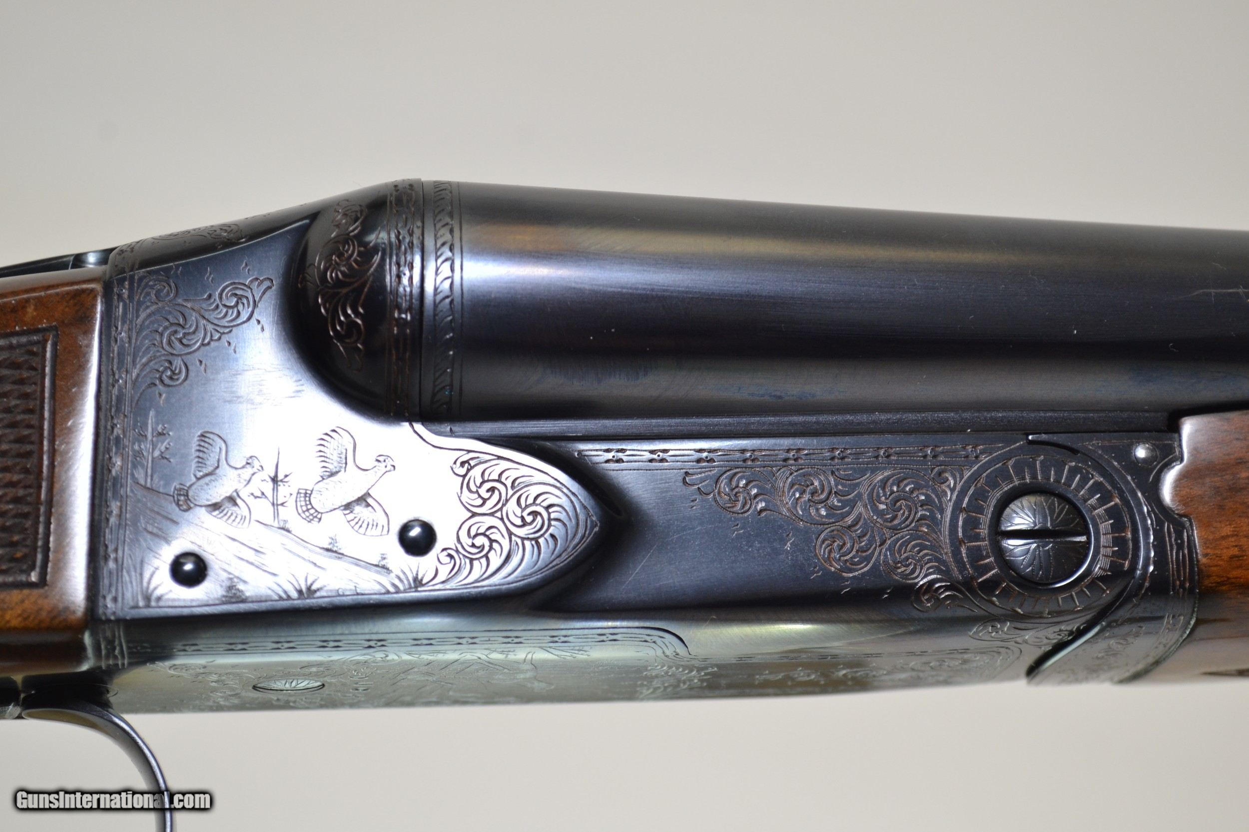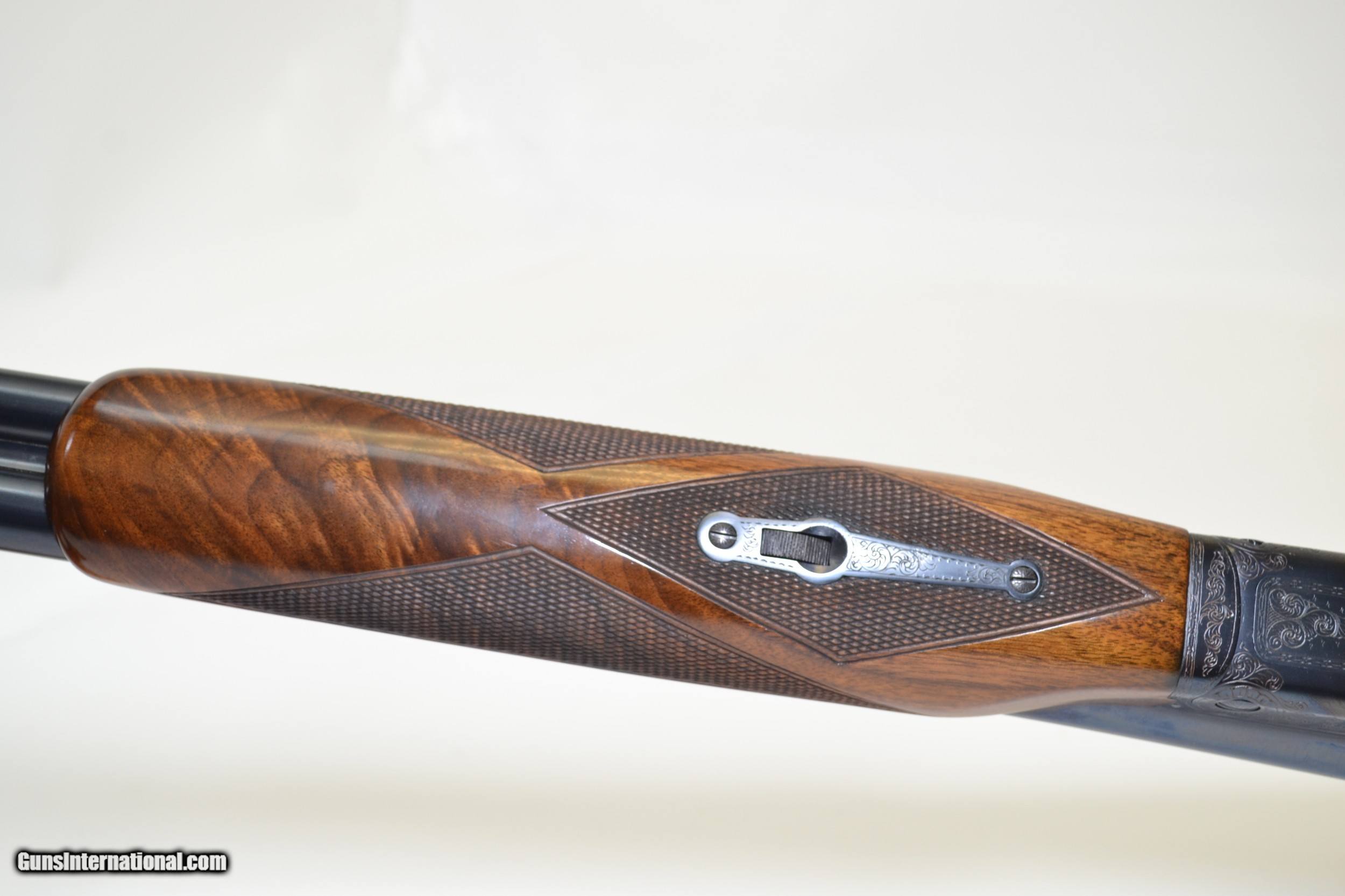 Description: WINCHESTER –Model 21, 12ga, 32” choked F/F, 3” chamber, nicely figured pistol grip stock, solid rib, factory Winchester recoil pad, single selective trigger, checkered side panels, beavertail forend with diamond pattern checkering, auto ejectors, #4 engraving pattern, extra clean and tight in excellent condition throughout, available for immediate delivery.
