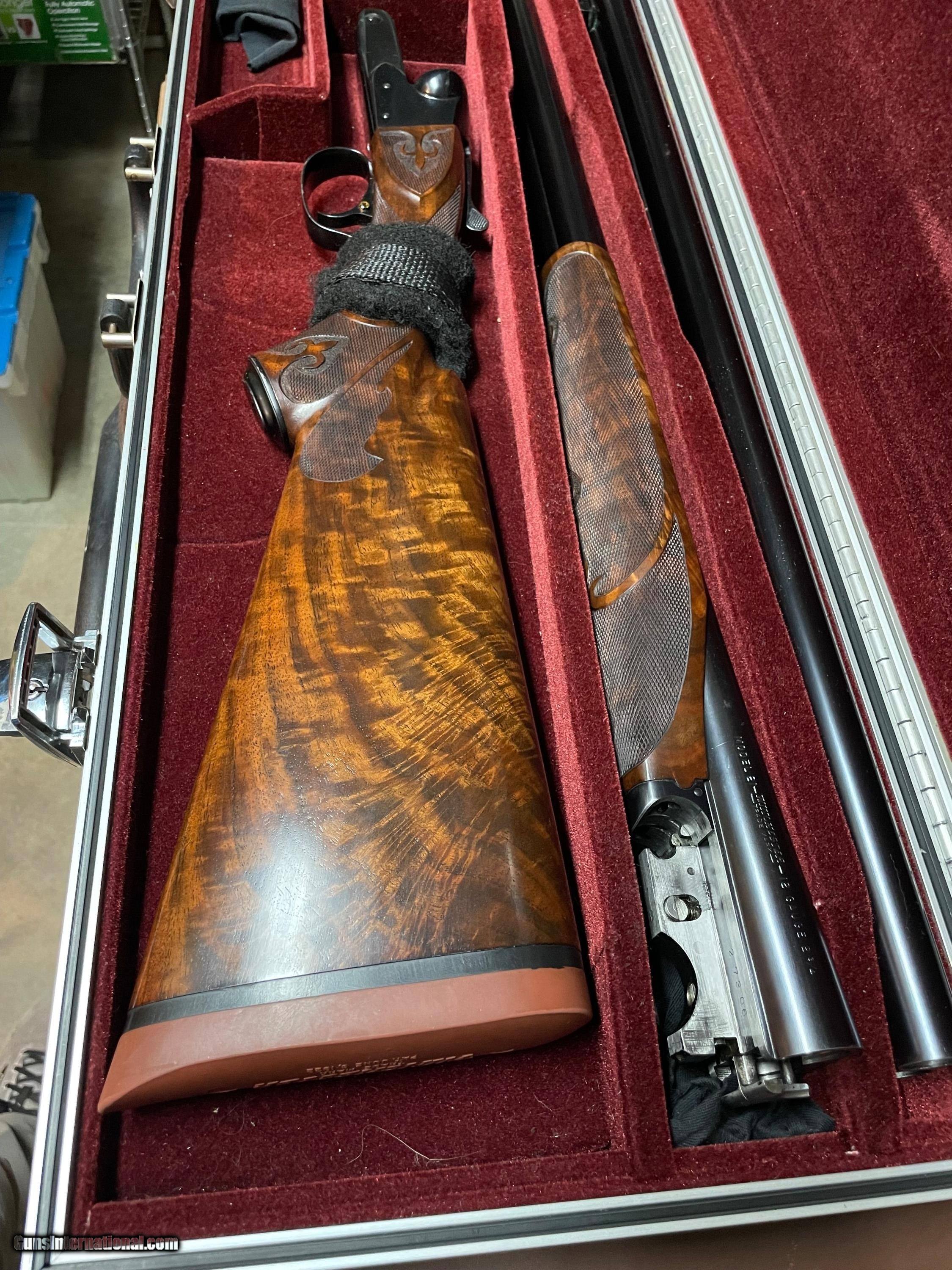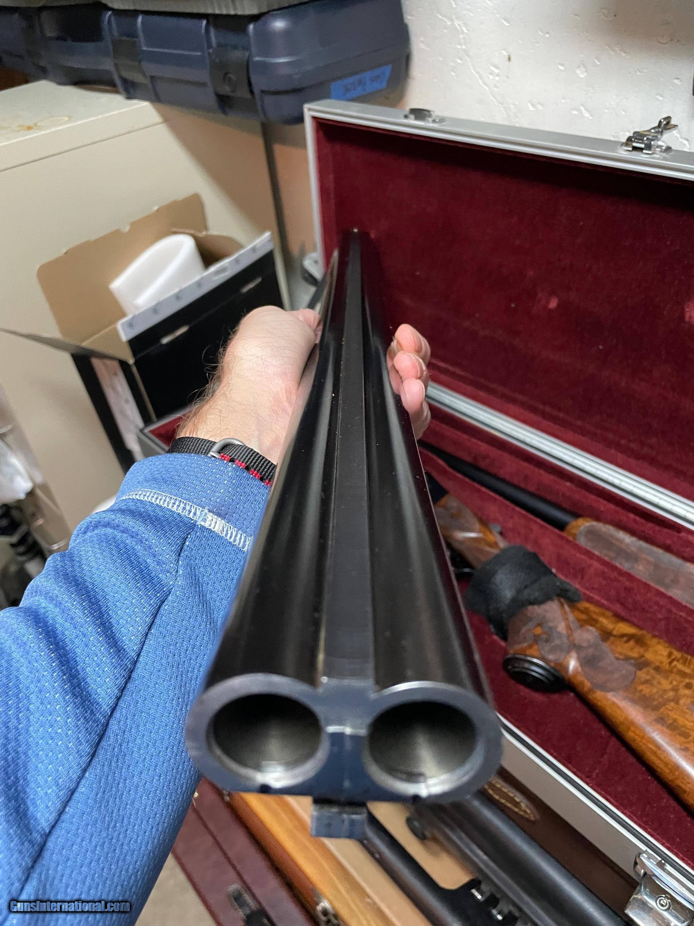 Description: Very good condition, and very good mechanical condition Winchester Model 21. 12ga two barrel set with America Case. This gun has excelllent stock and forend, all metal is in very goid condition. Trigger guard and grip cap have some wear ( see photos) 30" barrel has Mod and Full ckoke with ejectors and solid rib. 26" barrel has WS1/WS2 chokes and solid rib with mid bead bores are excellent and shiny LOP 15". DAC 1 3/8" DAH 1 11/16 weight 8lb 5oz. I have used this gun for Skeet and Sporting clays. It cryshes targets and looks good doing it. SOLD Shotgun Gauge: 12 Gauge Manufacturer: Winchester Model: 21 Chambers: Excellent Ejectors: Yes Condition: Very Good Metal Condition: Very Good Wood Condition: Excellent Bore Condition: Excellent Barrels: Pair Barrel Type: Side x side Triggers: Single selective Stock Comb: DAC 1” 3/8 Stock Heel: 1 11/16” Stock Cast: Cast off LOP: 15” Rib: Solid Weight: 8lbs 5oz Chokes: Fixed Case: Americase |