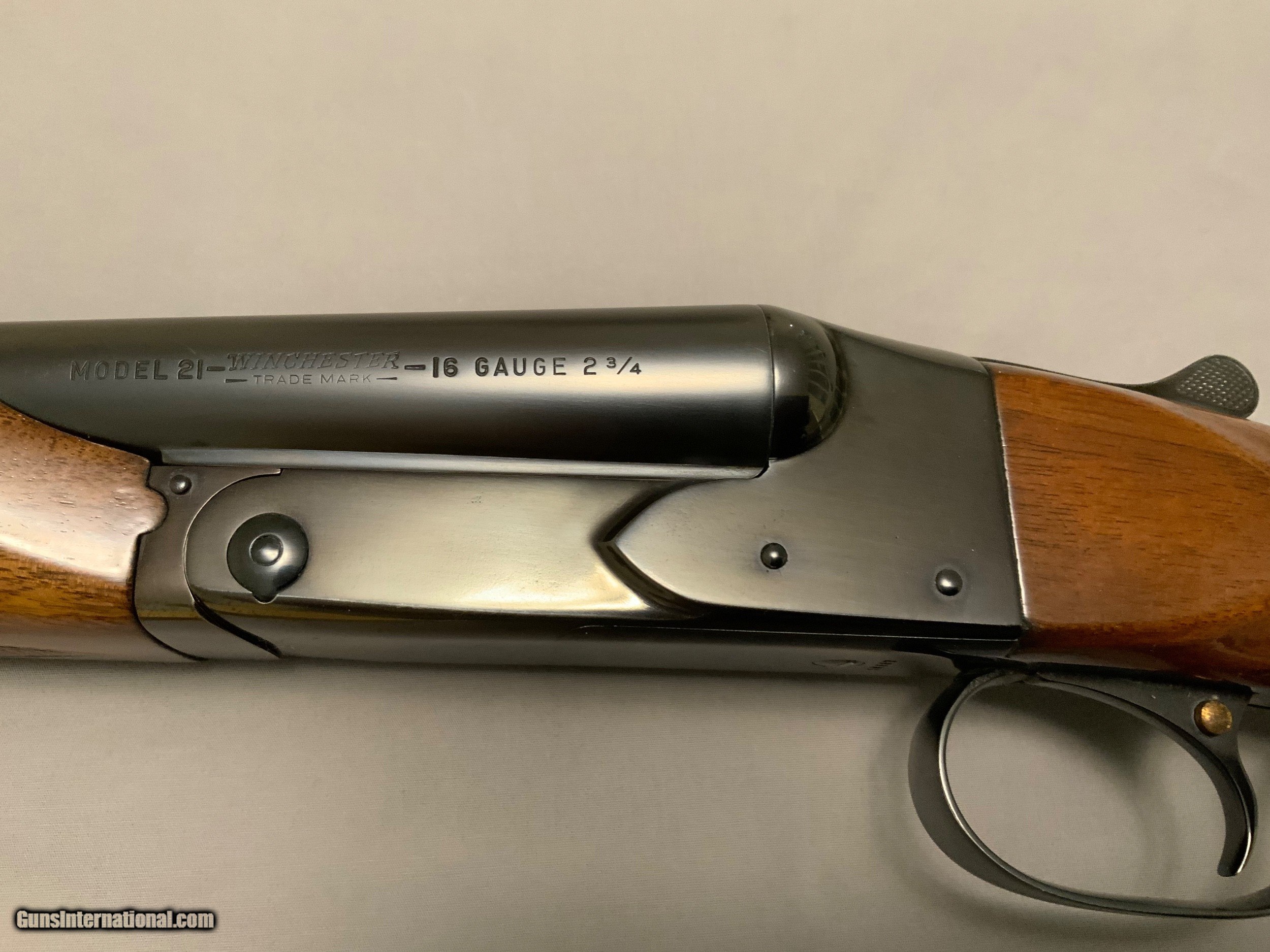 Description: Rare 16 guage "skeet". Ws-1 Ws-2, 26" barrel. Early 1950's. Excellent condition. Buyer pays shipping. SOLD Shotgun Gauge: 16 Gauge Manufacturer: Winchester Model: 21 Serial Number: 237xx Barrel Length: 26” Bore: skeet Ejectors: yes Condition: excellent Metal Condition: excellent Wood Condition: excellent Bore Condition: excellent Triggers: 1 Rib: yes |