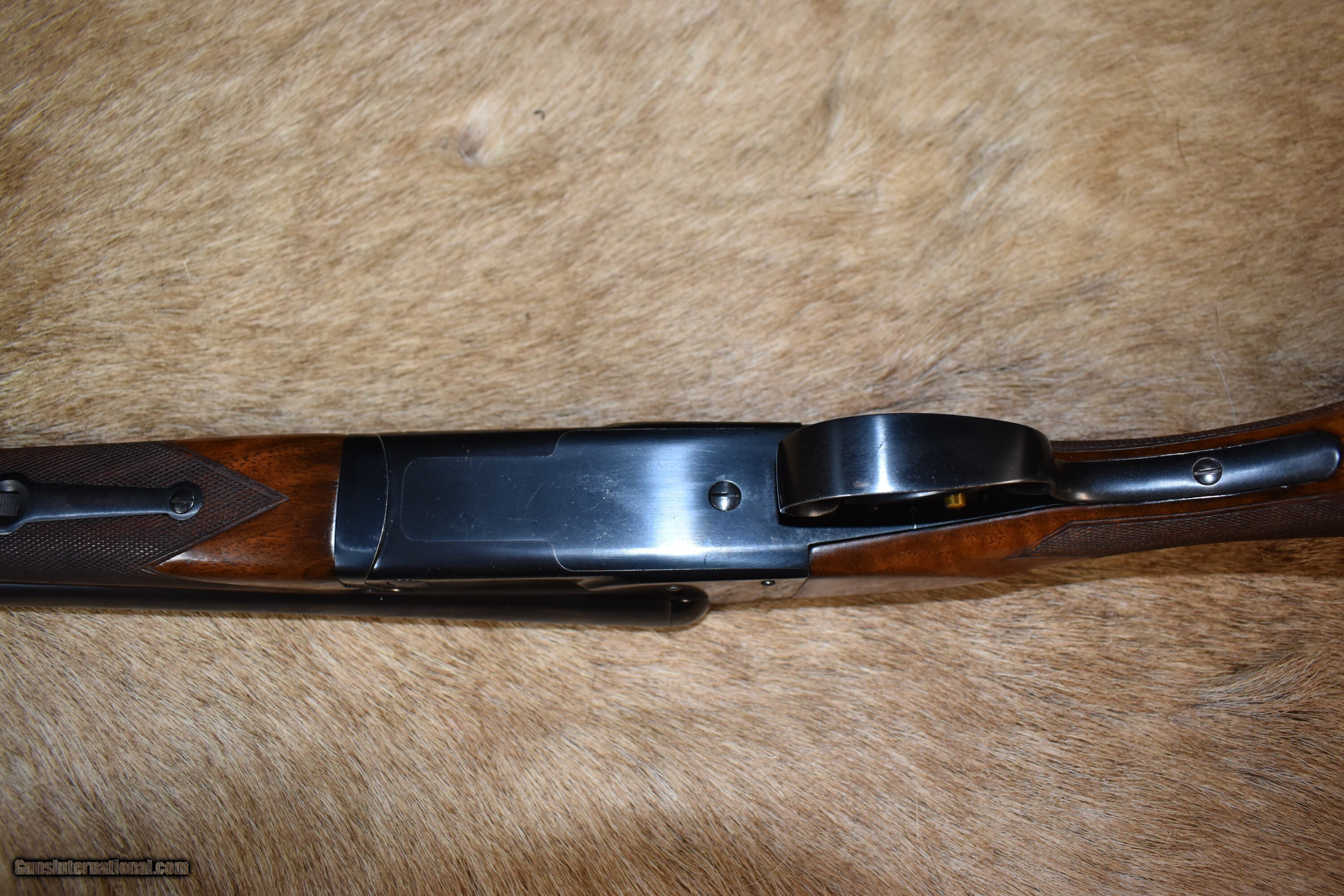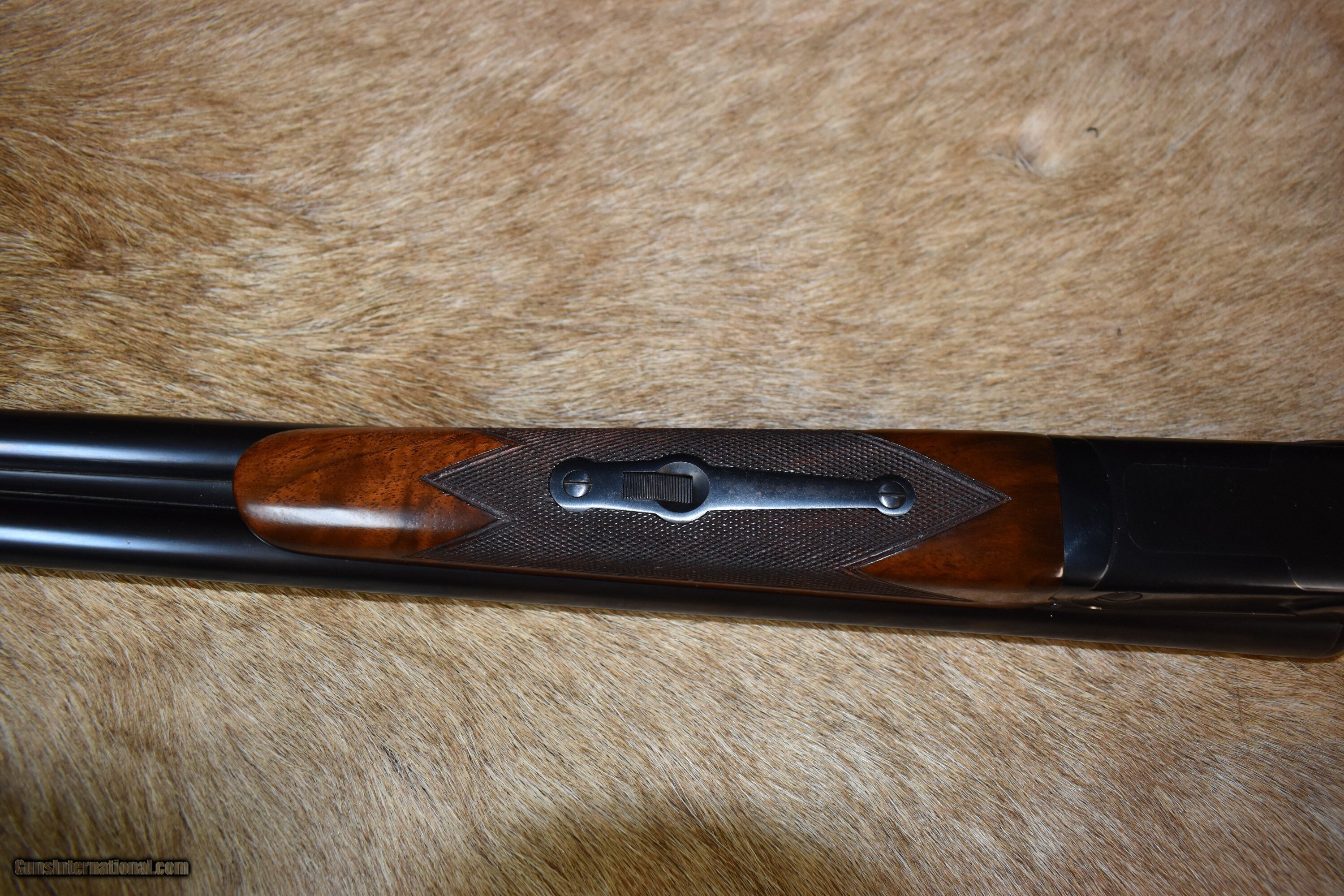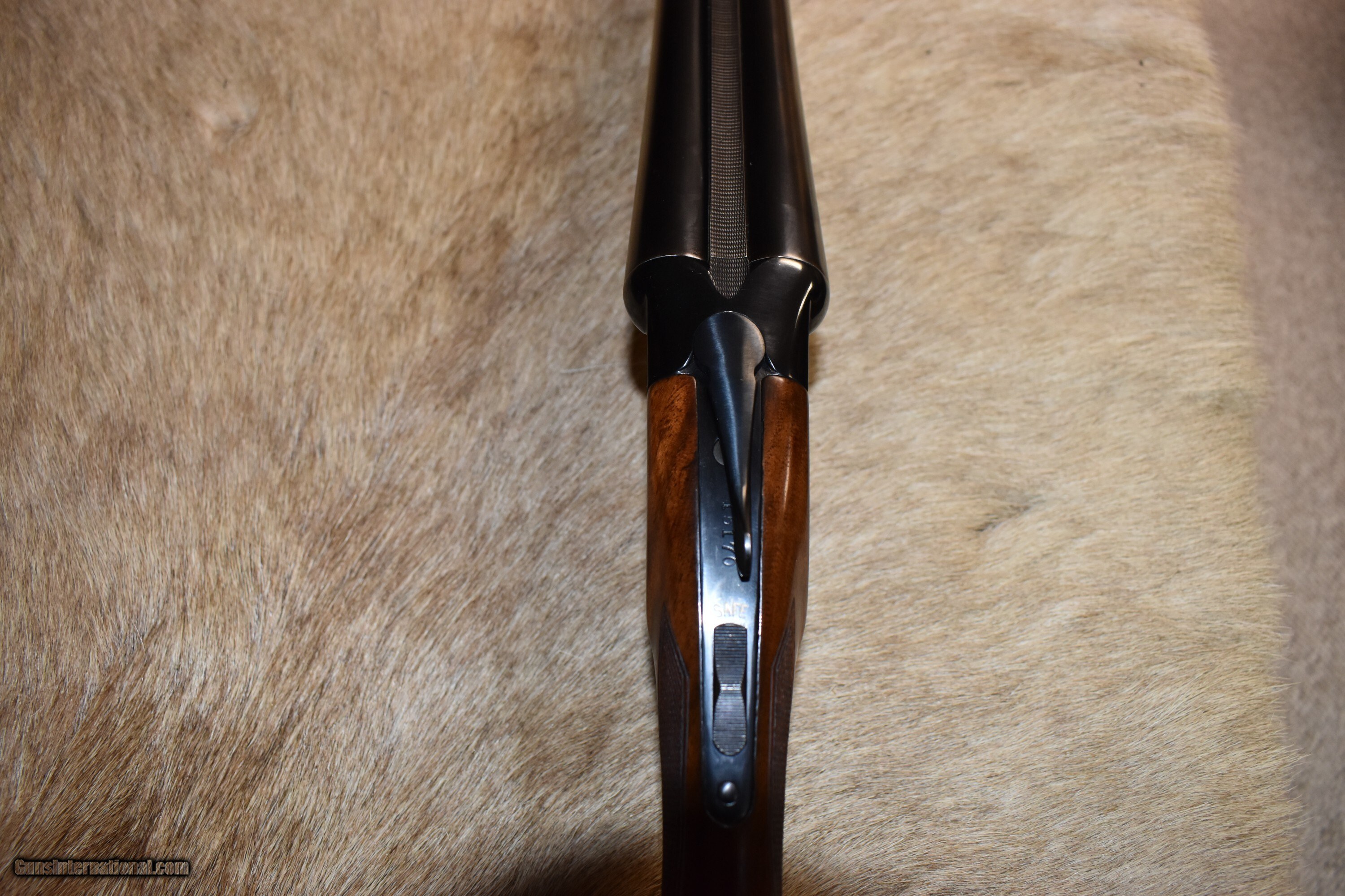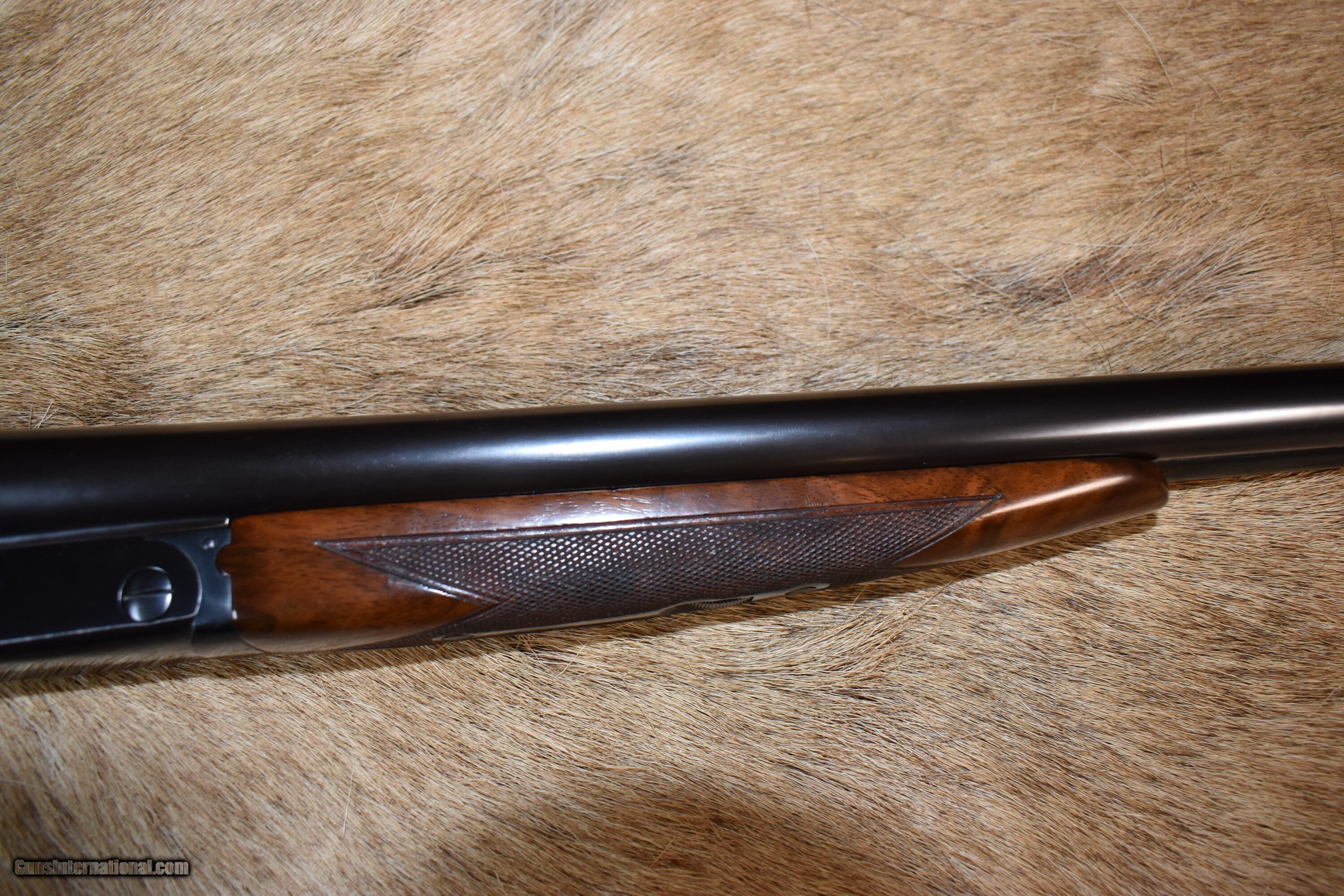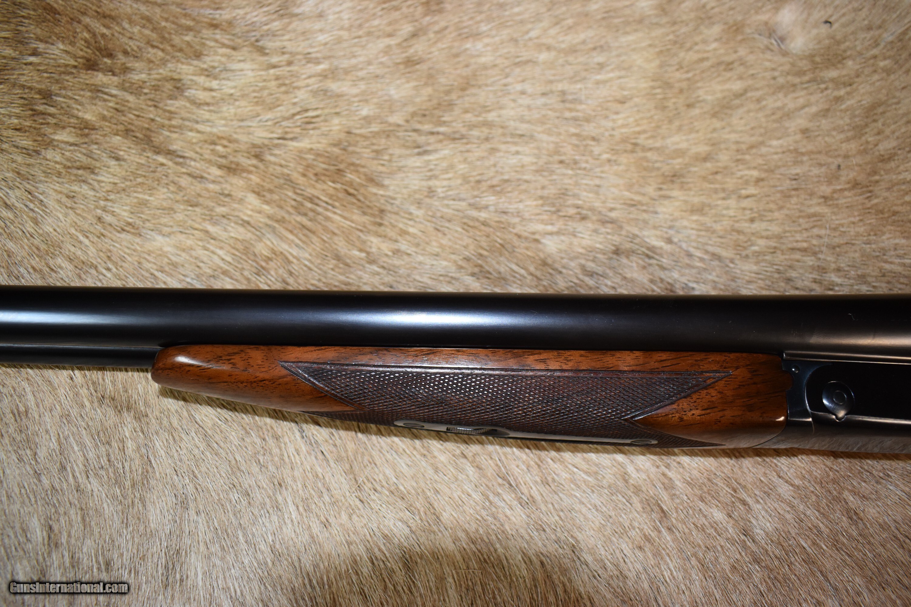 Description: Like new Winchester Model 21, 16 Ga. Made in 1939 (Cody Letter) sent back to Winchester Custom Shop for upgrade in 1964 (Cody Letter). Comes with 28" IC & Mod barrel. Weighs 6 lb 4 oz. Great game gun. Shotgun Gauge: 16 Gauge Manufacturer: Winchester Model: 21 Barrel Length: 28 Chambers: 2 3/4 Ejectors: Yes Condition: 99% Metal Condition: 99% Wood Condition: 99% Bore Condition: 99% Action: S-S Triggers: Single Stock Drop: 1 7/16 Butt Pad: Original Winchester LOP: 14 3/8 Manufacture Date: 1939 Chokes: IC-Mod Price: $7,500.00 Contact Seller |