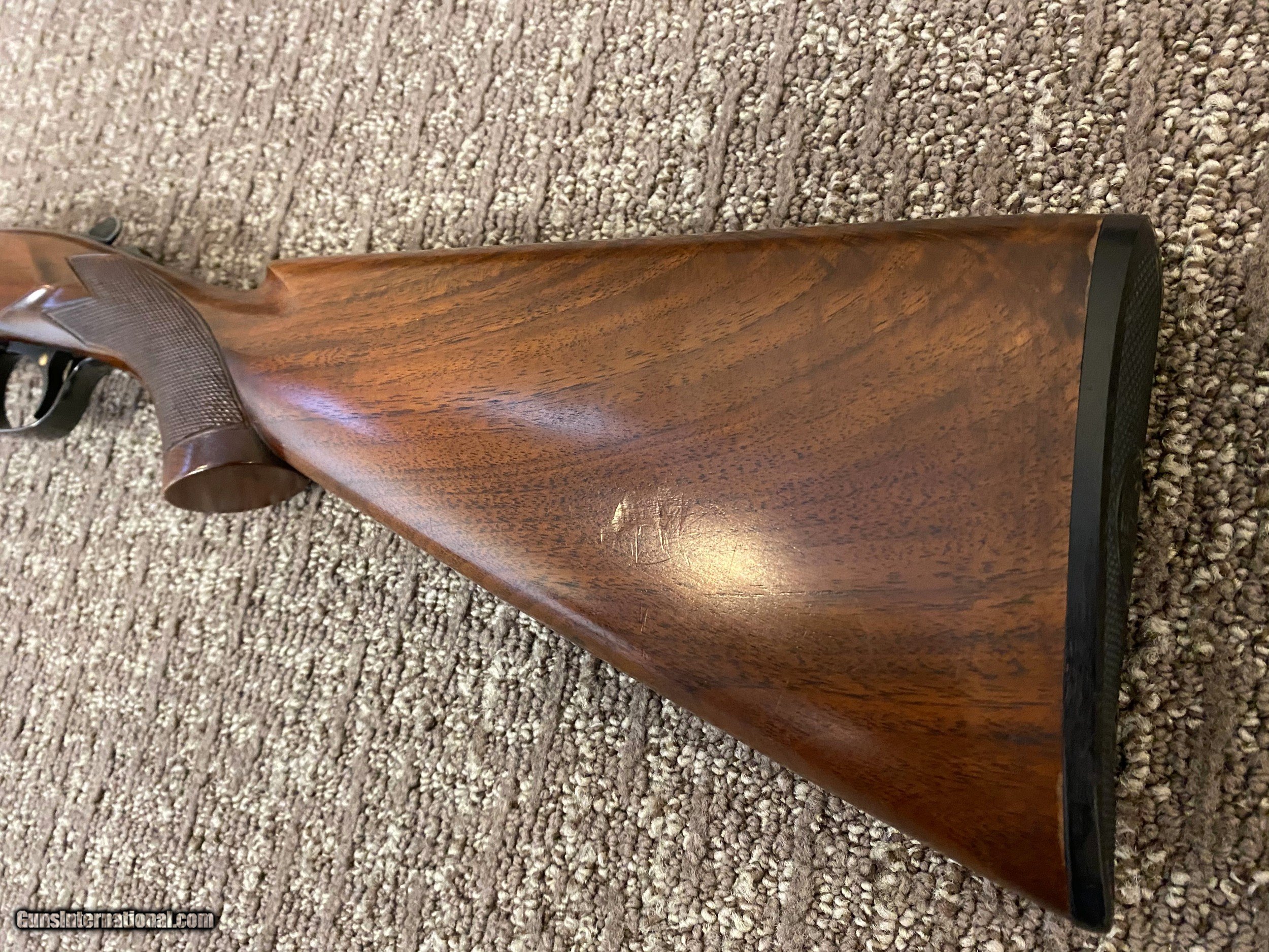 Description: Winchester Model 21 16 gauge Consignment shotgun from the estate of a Military Firearms & Winchester Collector. Overall finish is 92%. Bore is bright and shinny. The weight of the shotgun is 6 lb 14 oz. The barrels are marked "MOD." and "IMP CYL." The right side of the trigger plate does have a pitting spot. The bottom of the plate has discoloration. Included Cody Firearms Museum historical data for this serialized shotgun. Buyer is repsonsible for insured UPS ground shipping charges. SOLD Curio/Relic: Yes Shotgun Gauge: 16 Gauge Manufacturer: Winchester Model: 21 Serial Number: 18569 Barrel Length: 26 Ejectors: Selective Condition: Very Good Triggers: Single Stock: Pistol Grip Stock Drop: 1 Stock Comb: 1.5 Stock Heel: 2.5 Fore End: Beaver Tail LOP: 14 Manufacture Date: August 12, 1948 Choke Left: Modified Choke Right: Improved Cylinder |
