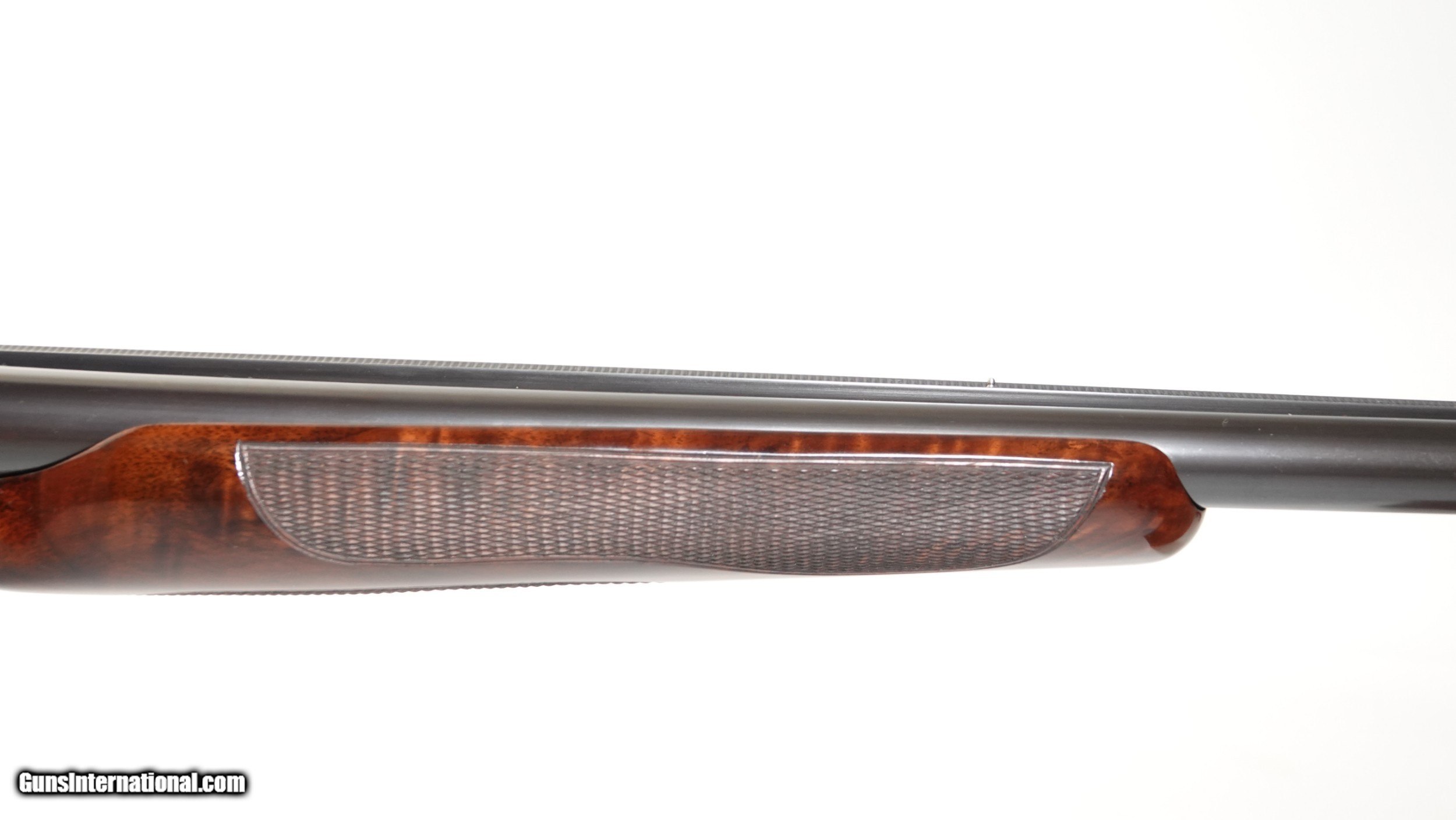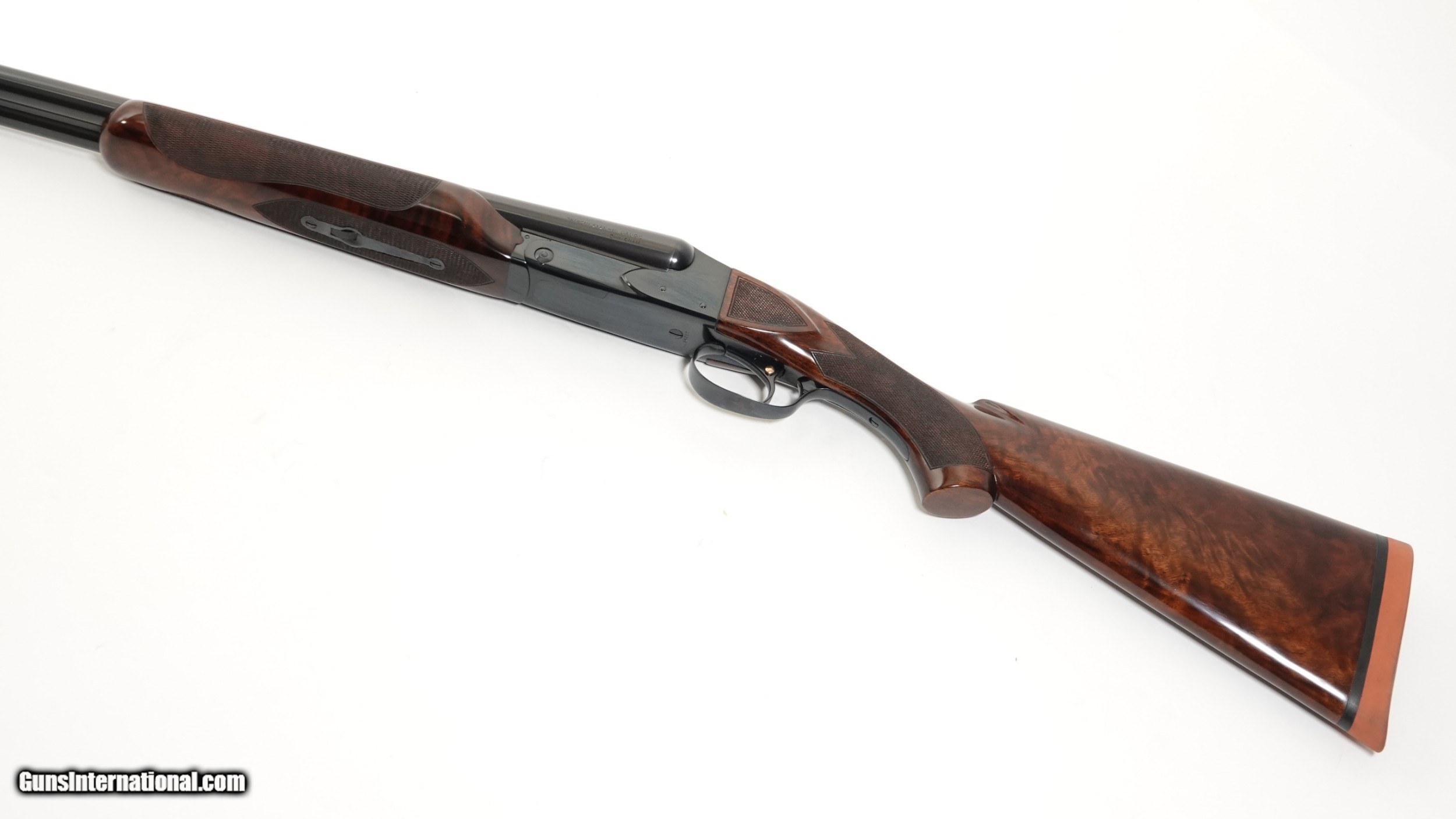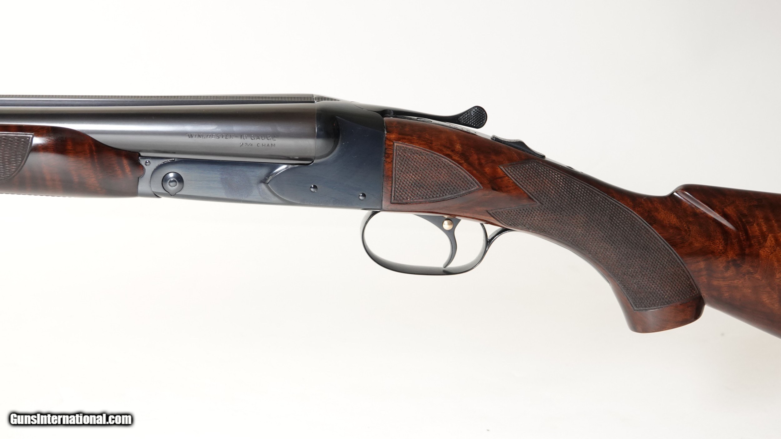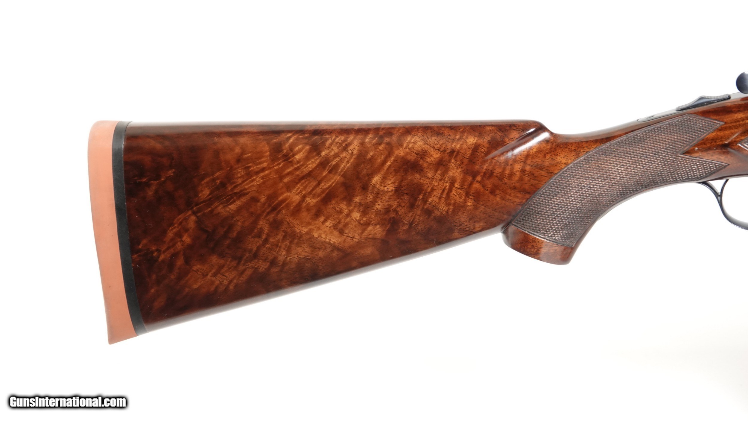 Description: Winchester - Model 21, 16ga 26” WS1/WS2, extra fancy full feathercrotch black walnut pistol grip stock, Winchester pad, checkered side panels, beavertail forend with kidney pattern checkering, marked SKEET on bottom plate, single selective trigger, automatic ejectors, solid matte rib, 99% condition throughout, available for immediate delivery. Inventory # 46560 14 ¼” x 1 ½” x 2 5/8” 6 lbs., 11 oz. Price $7,250 SOLD |