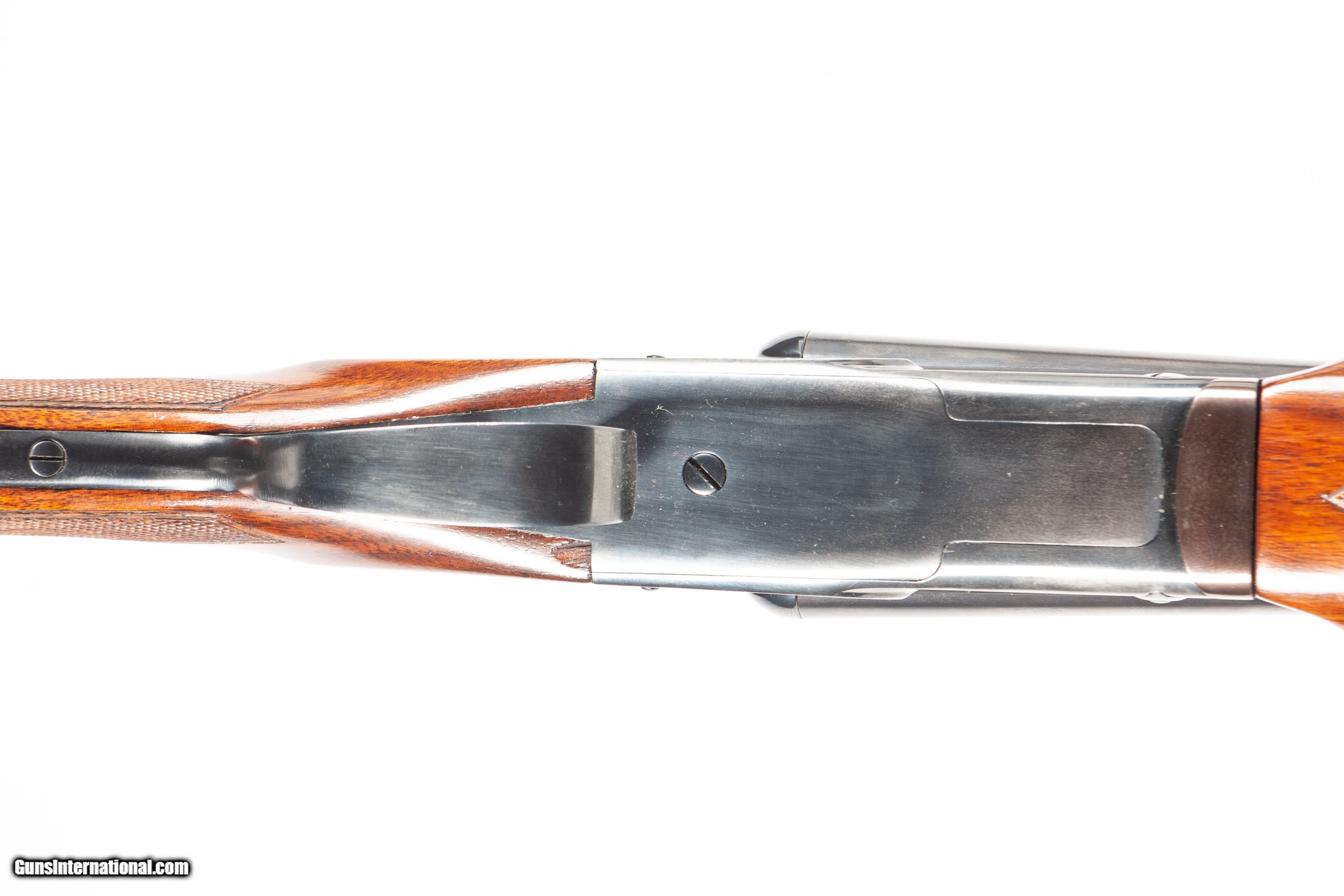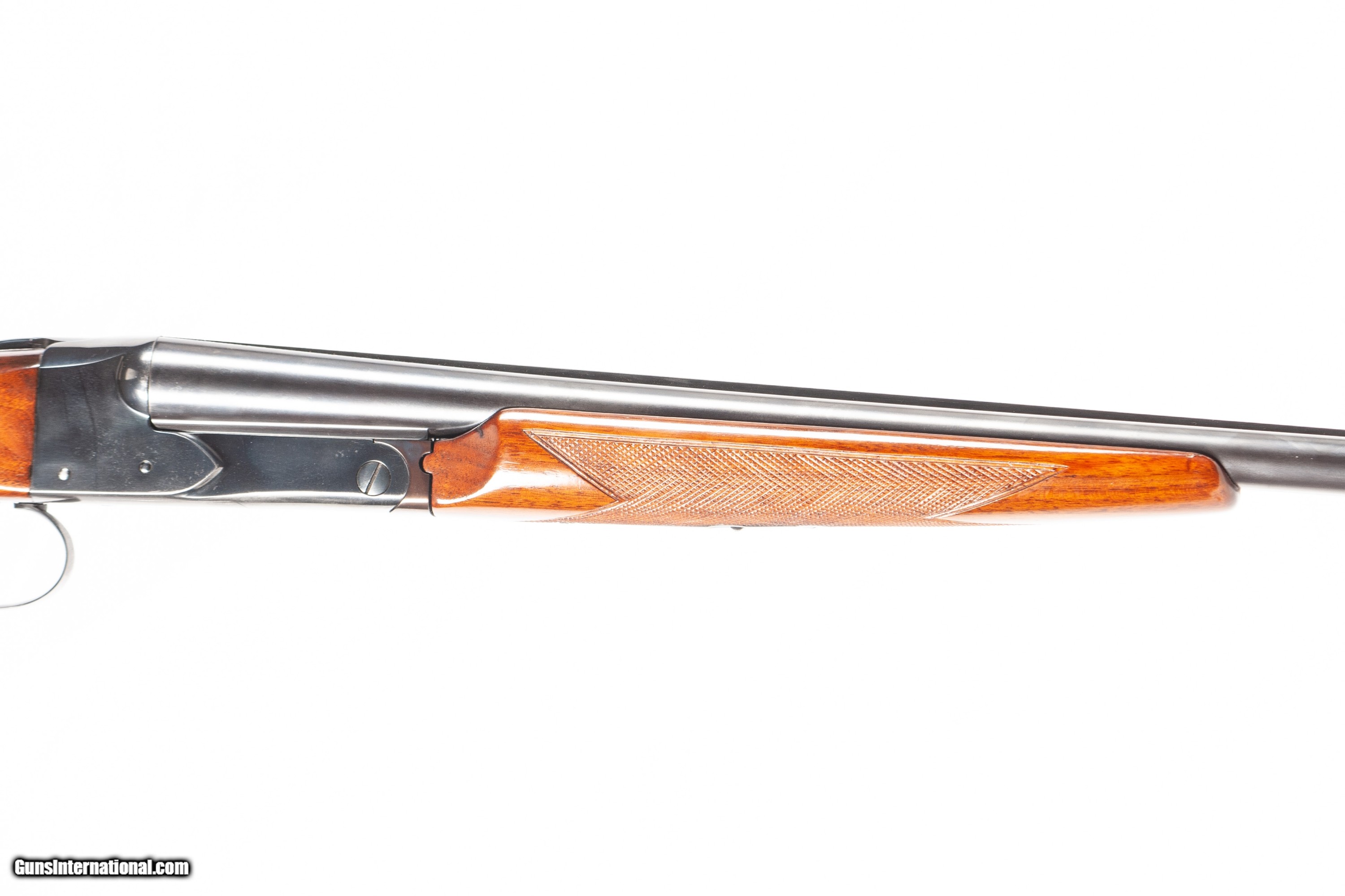 Winchester Model 21 chambered for 20 Gauge with 26 inch barrels with bright and shiny bores fixed chokes ( full left modified right) and a 14 1/4 inch LOP. The gun has been reblued and the stock has been modified. This firearm is in excellent condition and is covered by Dury's Lifetime Warranty.