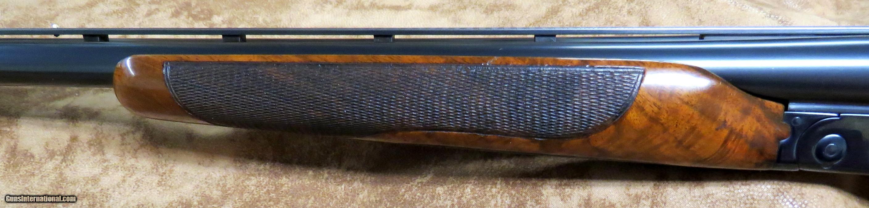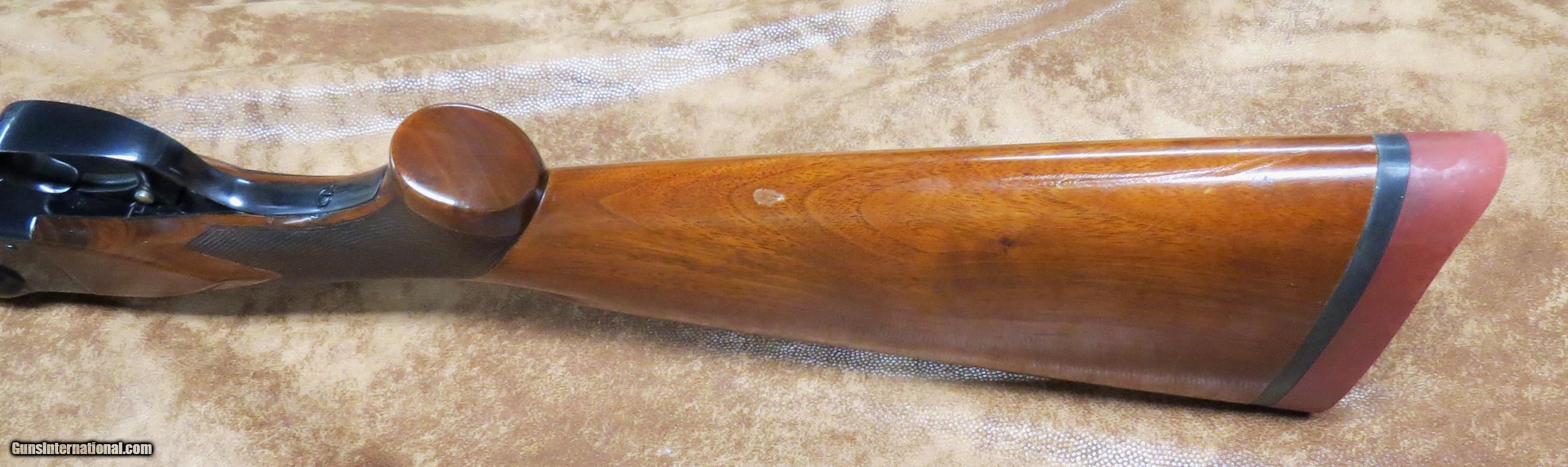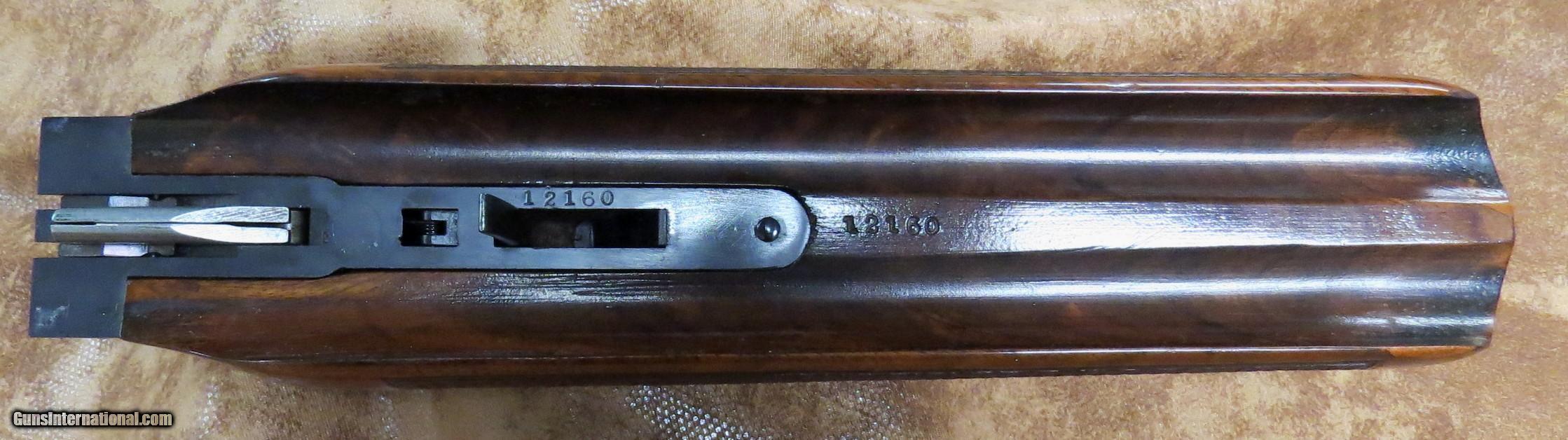 Description: A wonderful Winchester Model 21 standard grade 20ga shotgun with hard to find ventilated rib and fantastic shooting dimensions.... it feels like it points itself. Pre-war 1937 gun. This gun retains nearly all of it's professionally reapplied finishes... it has been properly done and shows very nicely. 28" barrels marked modified & full. Bores measure .614/.614 with 9k & 22K of chokes. Min. wall thicknesses are 28k & 27K. Ventilated rib with white Bradley type front bead & midbead. Mint bright bores with no dings/dents in barrels. Early barrel address & patent markings atop barrels. Interestingly, no chamber length marking. Chambers measure 3" with slide in gauge. Nicely colored walnut uncapped pistol grip buttstock & beavertail forend. Clean, sharp checkering. Solid red Winchester recoil pad. Fantastic dimensions at LOP 13 3/4" to rear position single trigger. (14+" if front trigger) 1 1/2" DAC 2" DAH. Some very minor handling marks in wood finish from gentle use. No cracks. Automatic ejectors. Single select trigger. Gun operates crisply. Nicely equipped Model 21 20ga priced right & ready to enjoy. 6# 13 oz SOLD Curio/Relic: Yes Bore: 20 Chambers: 3 Ejectors: yes Stock Comb: 1 1/2 Stock Heel: 2 LOP: 13 3/4" rear (14+ if front) Rib: Ventilated Weight: 6# 13oz Manufacture Date: 1937 Choke Left: mod Choke Right: full Minimum Wall Thickness Left: 28k Minimum Wall Thickness Right: 27K |