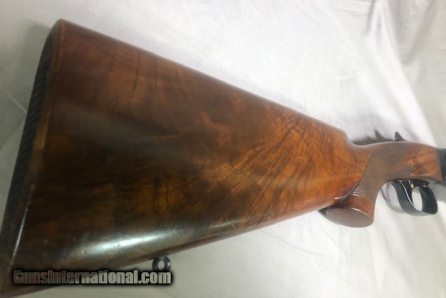 Description: Winchester Model 21 20g 26" SOLD 06-27-2019 Very good- all original SN- 18053 6 1/2 lbs Comb 1 5/8" Heel 2 5/8" LOP 14 1/8" to checkerd butt Cast 0 Ejectors Manual safety 26" bbls WS 1 - WS 2 Single selective trigger 2 3/4" chambers 95% blue, worn at the edges. Stock has some minor scratches, nothing deep or unsightly. Sling and factory swivels. Nice clean bores. This is one special shotgun. Great for skeet and even better for birds! Please call or email for additional information and photos. SOLD |
