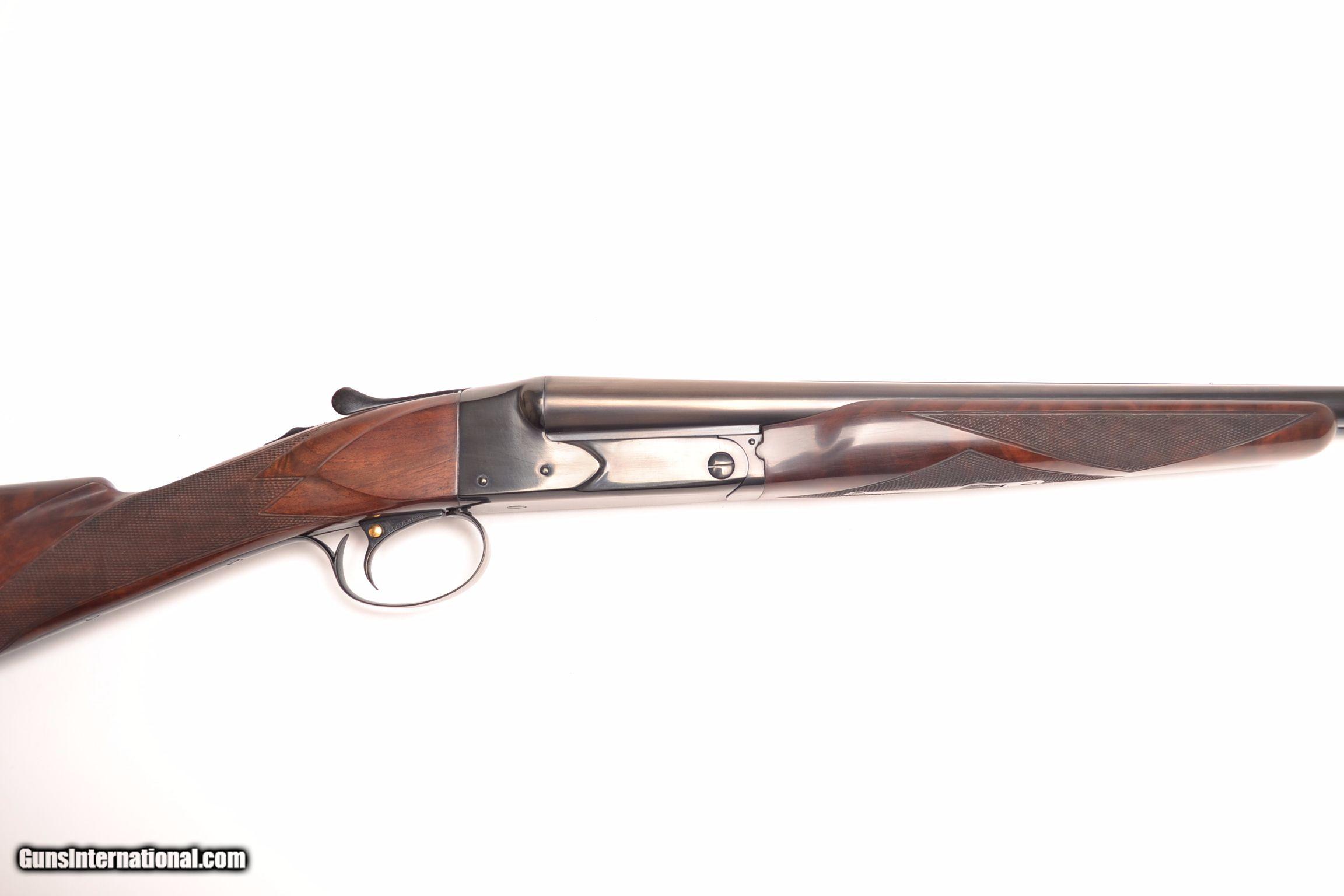 Description: Winchester Model 21, 20ga. 26” barrels choked WS1/WS1. Straight grip, single selective trigger, auto ejector, matte rib, checkered butt, 3 point checkering, diamond checkering pattern on forend. This is a 1950’s gun with a great piece of full feather crotch black American walnut. Truly an outstanding gun that is 99% as new, no excuses Inventory # 40787 LOP – 14 ¼” Price - $10,350.00 SOLD |