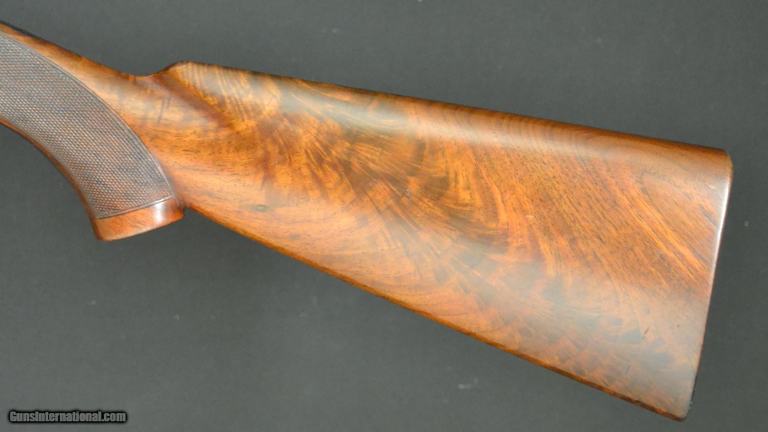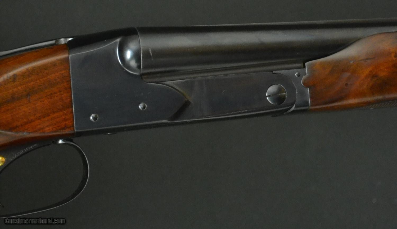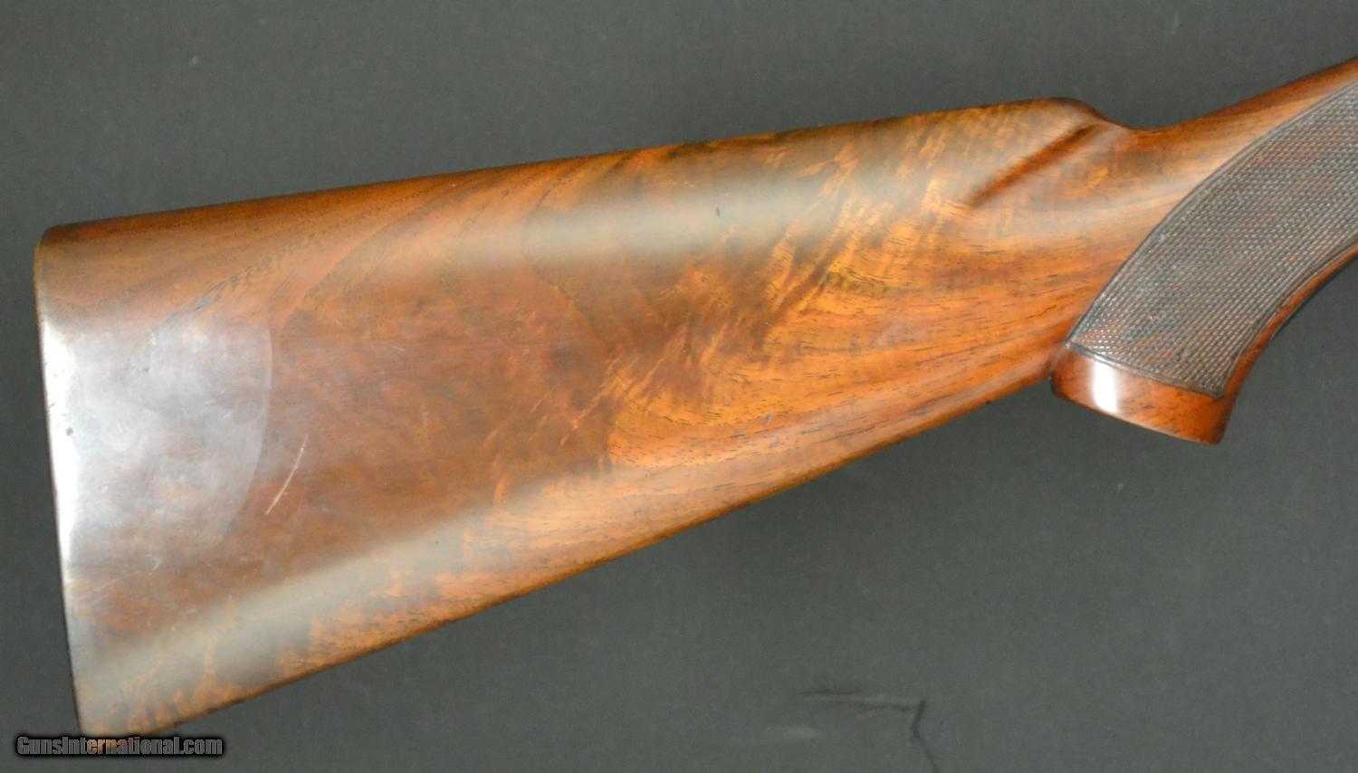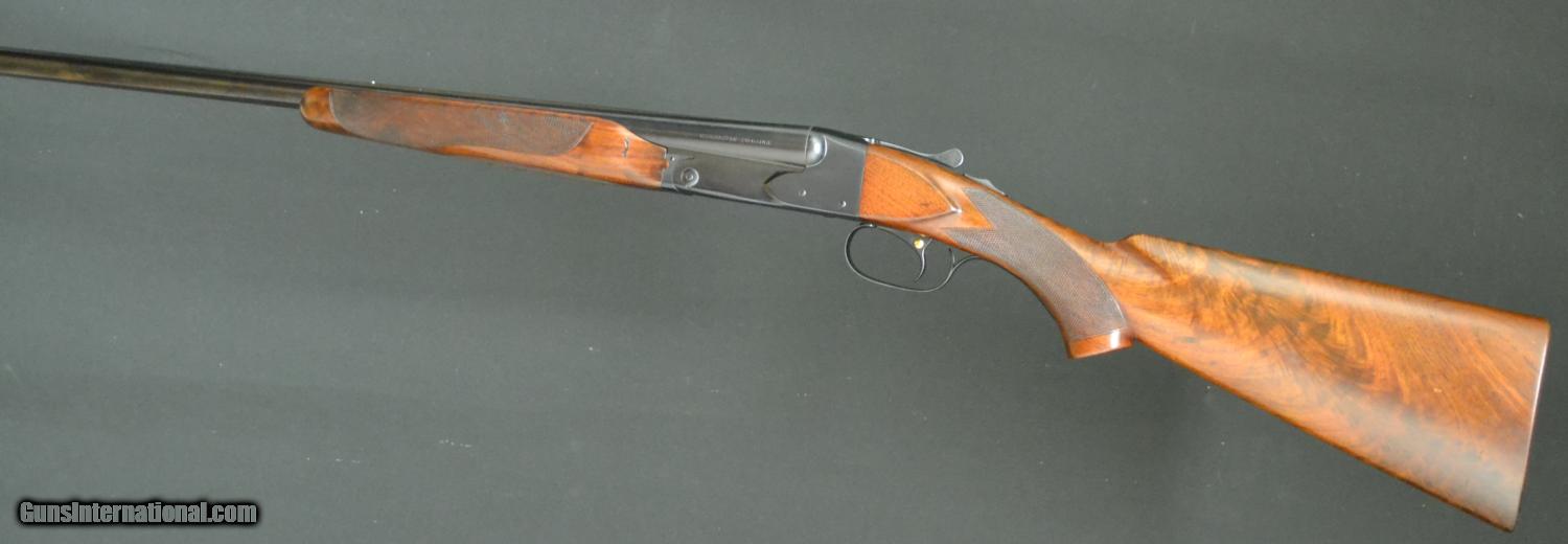 Description: Winchester – Model 21 20ga., 26" barrels choked Sk/Sk. Pistol grip, checkered butt, single selective trigger, auto ejector, beavertail. matte rib. A great piece of feather crotch, unaltered 99% gun. Small blemishes in wood but not refinished. Very few Model 21, 20ga’s. of this quality are available. Just a really sharp, honest gun.