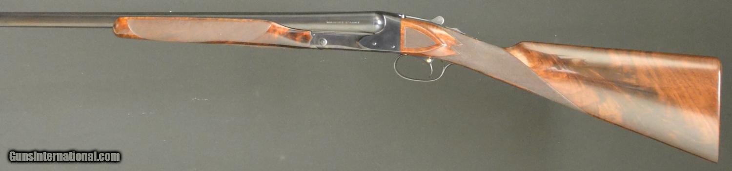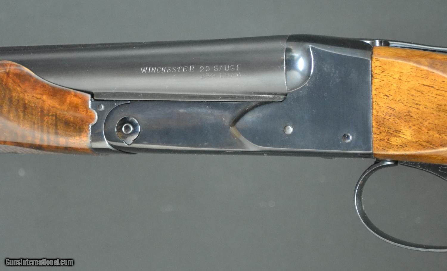 Description: Winchester Model 21, 20ga., 26” barrels choked WS1/WS2. Straight grip, checkered butt, single selective trigger, beavertail forend. A superb perfect feather crotch with 3 point checkering. A 99% as new gun. This gun is tight, clean and in virtually perfect condition. Absolutely mint barrels, this is a great small bore 21 with no excuses. Extremely hard to find.