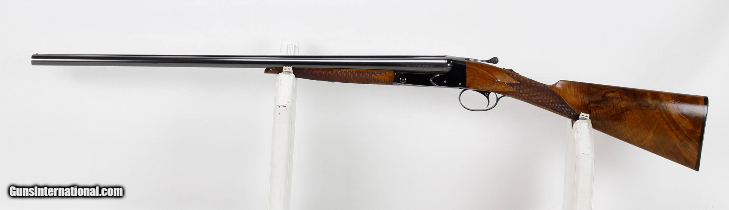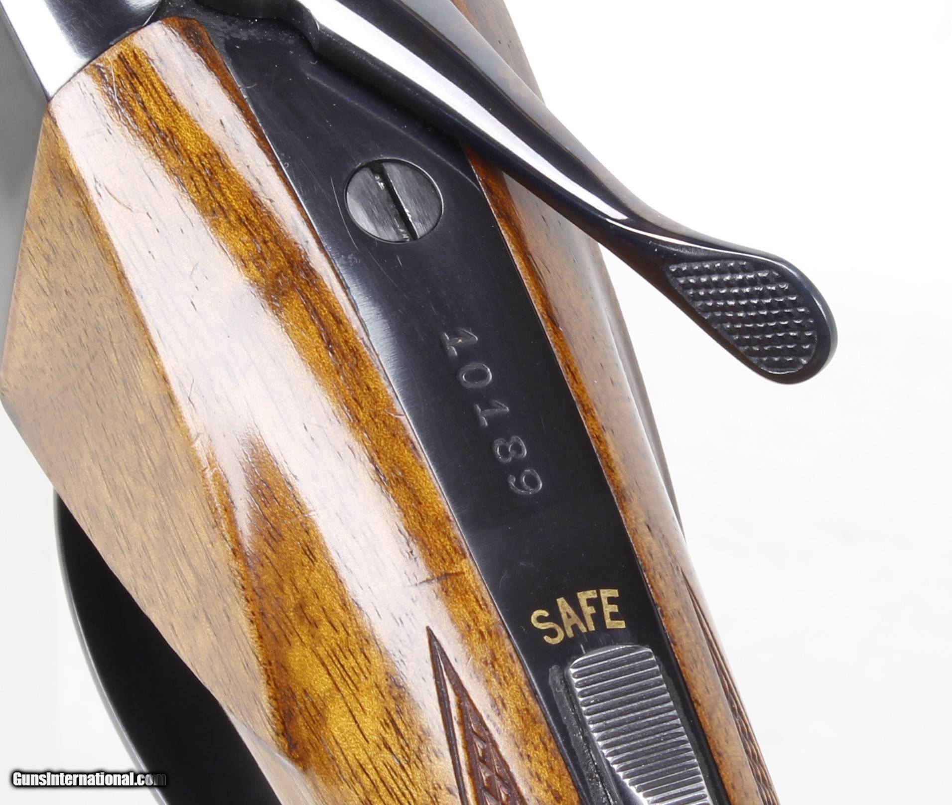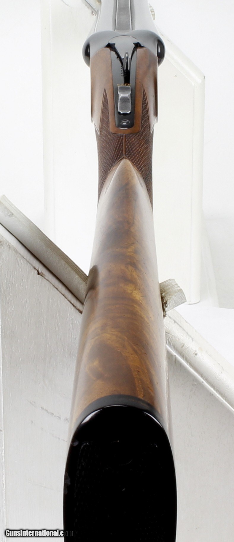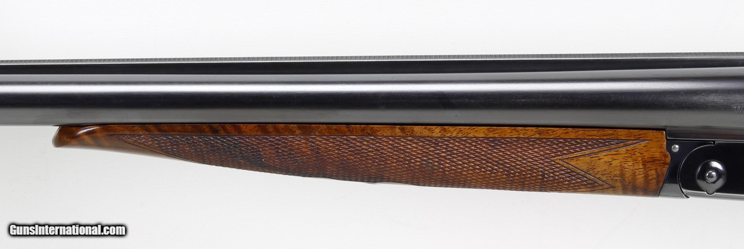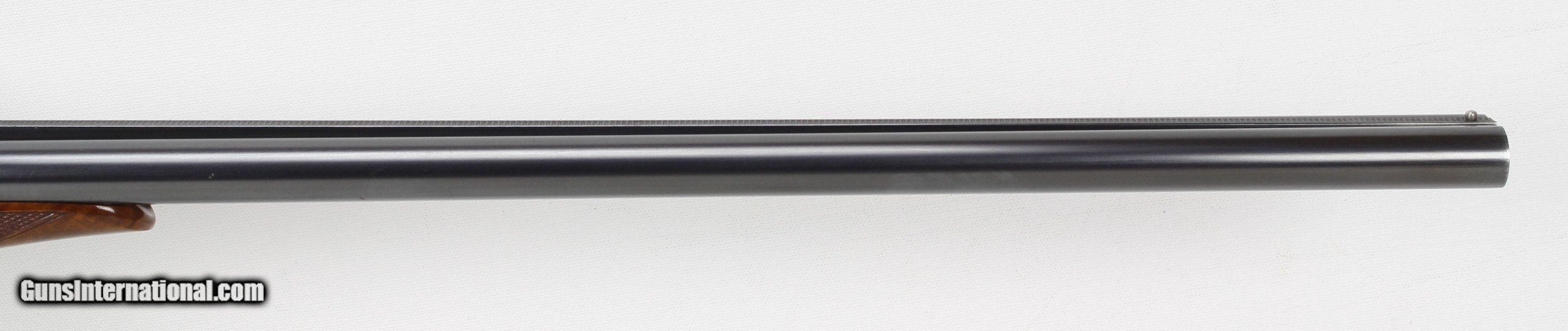 Description: WINCHESTER MODEL 21, 20GA, 26" VR Barrels, Choked: IC/MOD, Fine Replacement HIGH GRADE Stock & Fore-End W/Fine Line Checkering. Original Winchester Case. LOP: 14", DAC: 1 1/4", DAH: 1 3/4". SN#10189, MFG: 1940. Bores are Fine, Ejectors in Time. Single Select Trigger. Weight: 6lbs, 2ozs, Ships to Lower 48 W/Insurance: $55.00 Additional Pictures on request. SOLD Curio/Relic: Yes |
