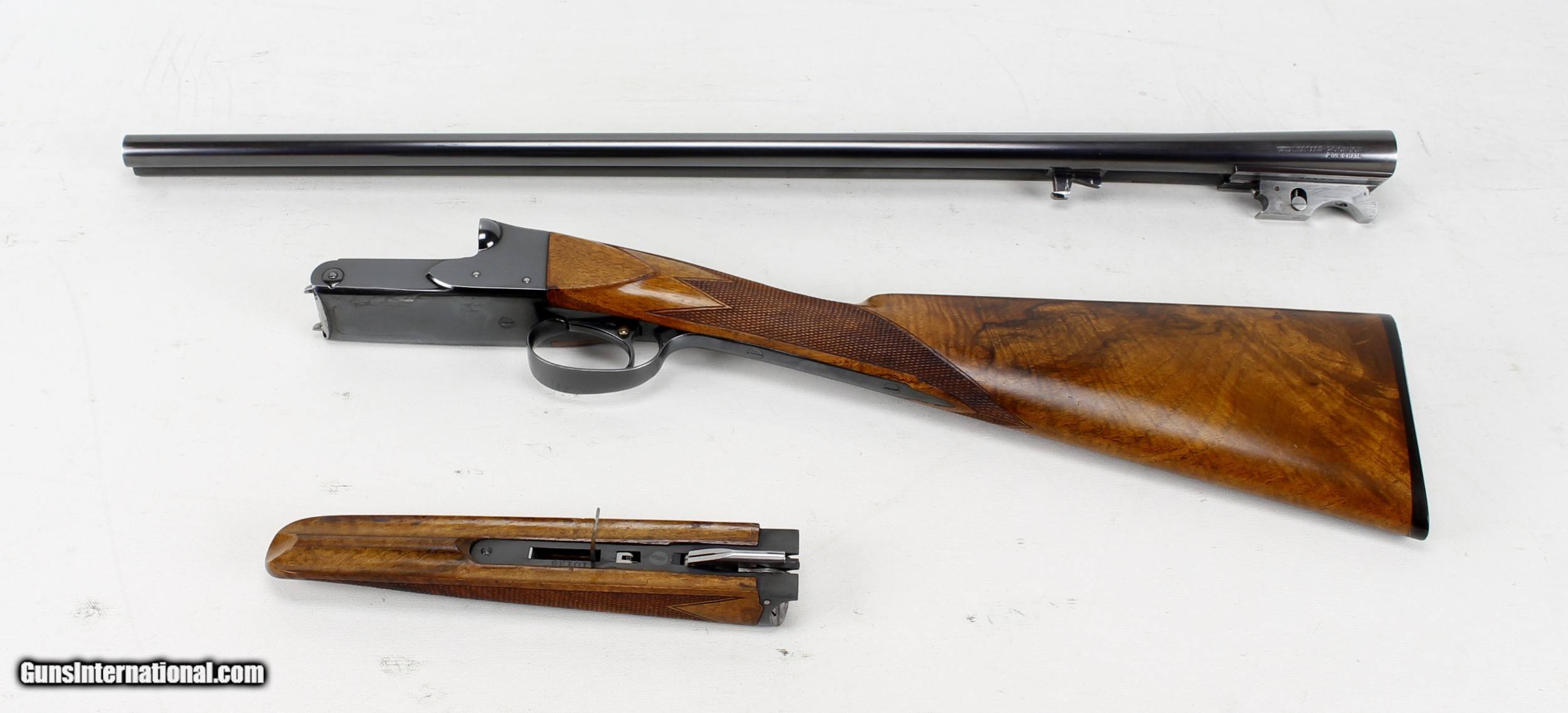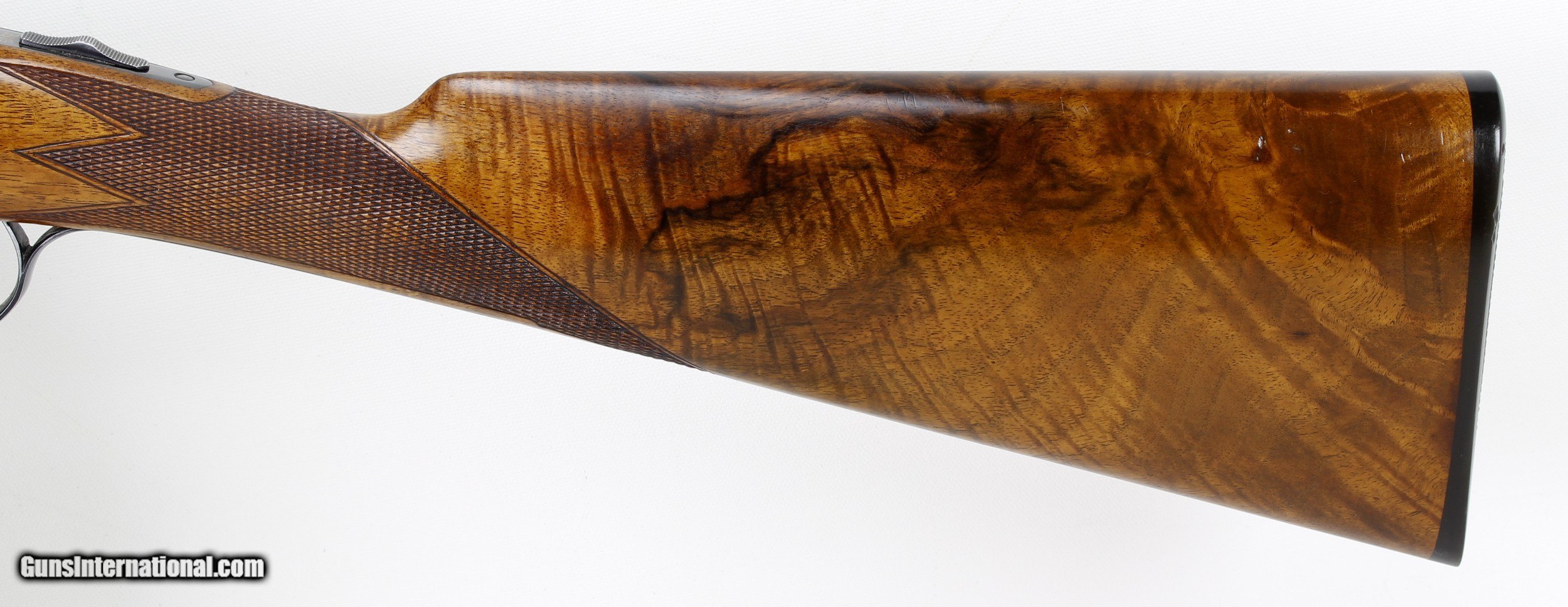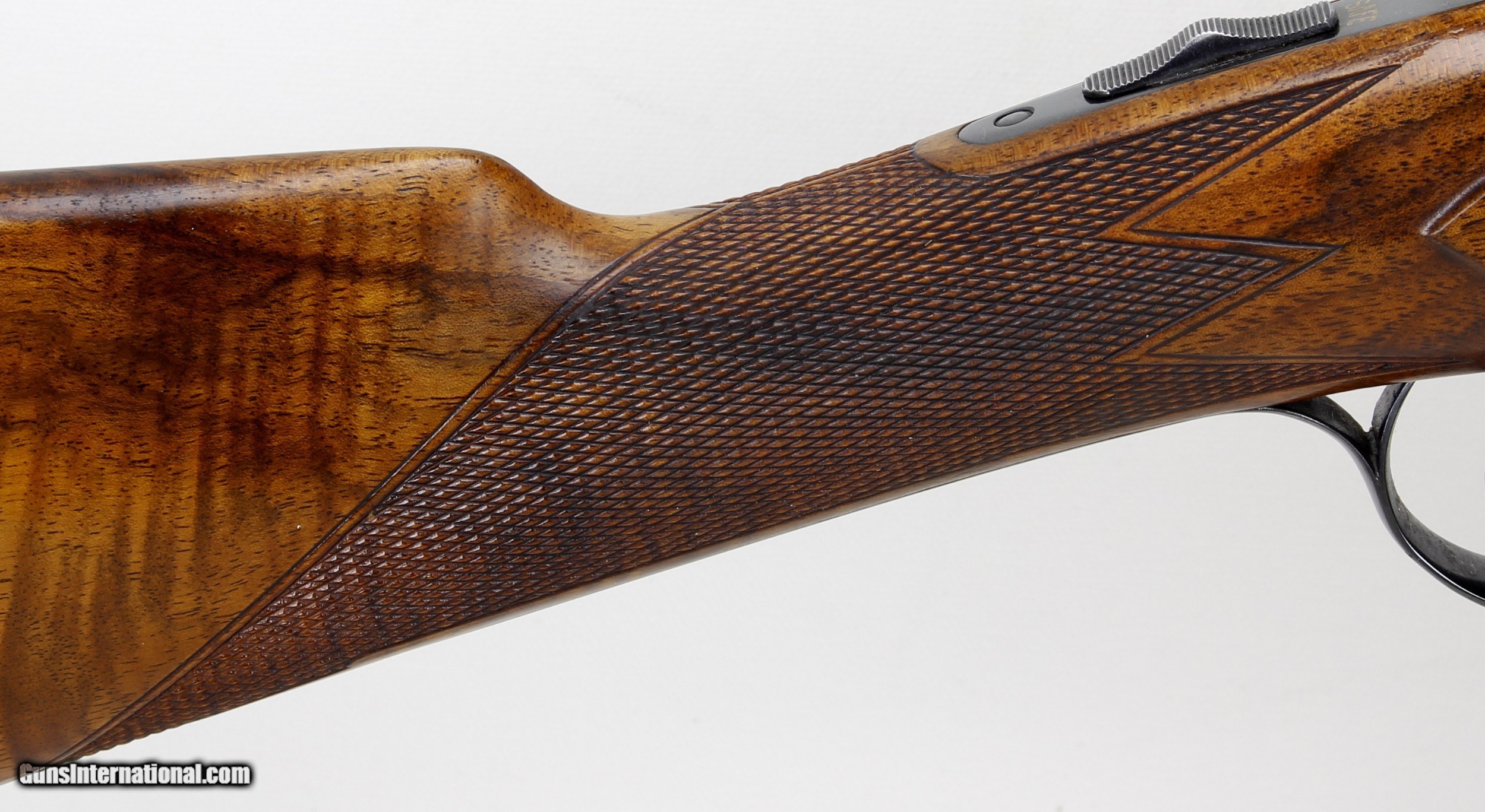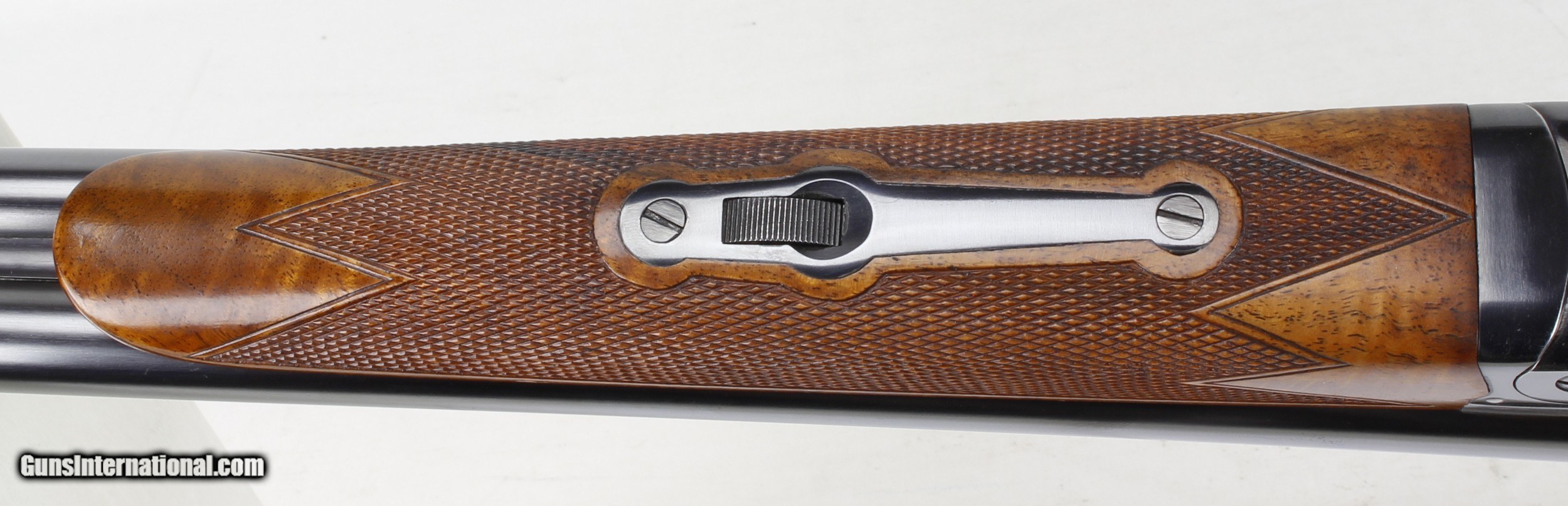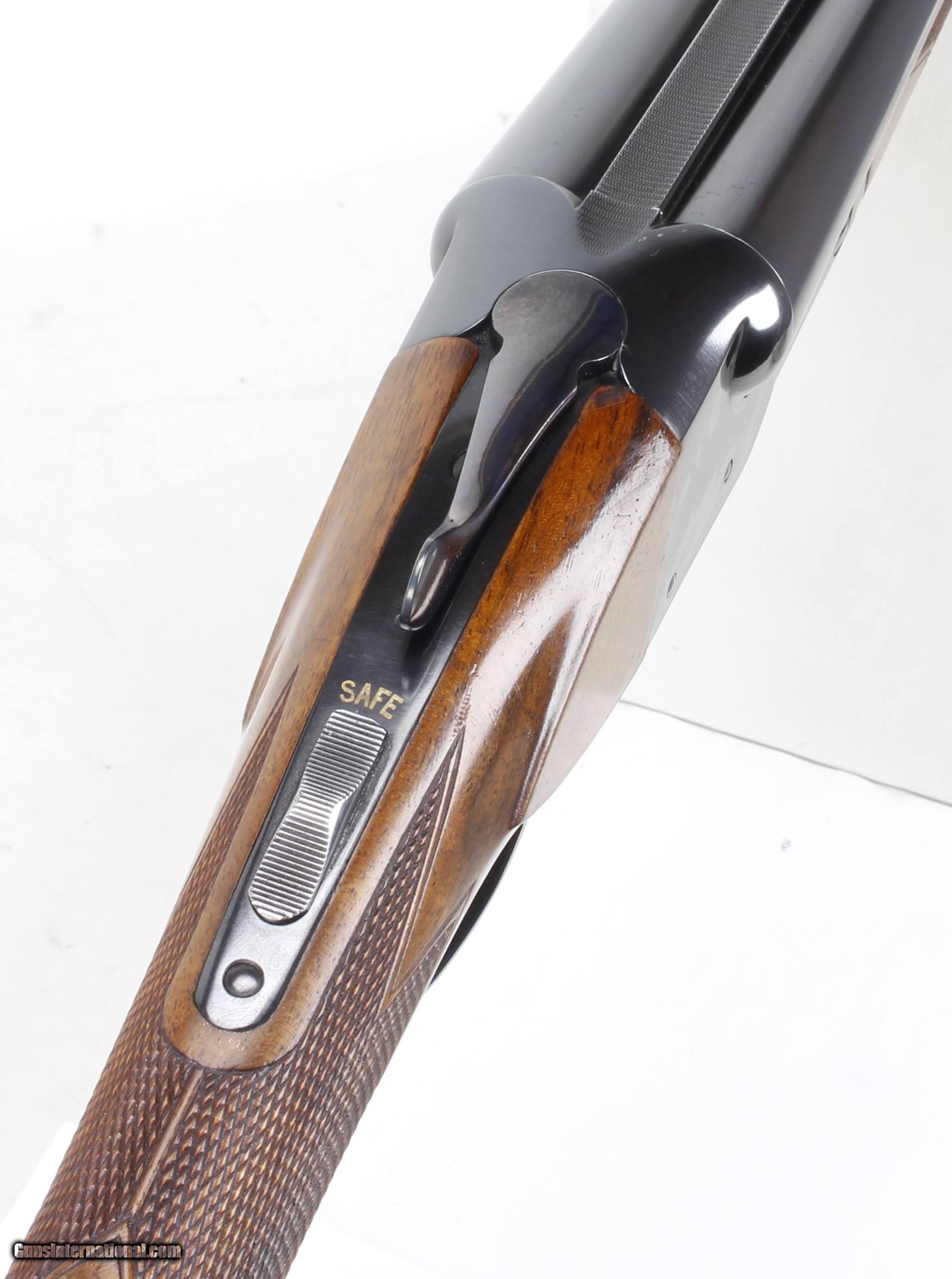Description: WINCHESTER MODEL 21, 20GA, 26" VR Barrels, Choked: IC/MOD, Fine Replacement HIGH GRADE Stock & Fore-End W/Fine Line Checkering. Original Winchester Case. LOP: 14", DAC: 1 1/4", DAH: 1 3/4". SN#10189, MFG: 1940. Bores are Fine, Ejectors in Time. Single Select Trigger. Weight: 6lbs, 2ozs, Ships to Lower 48 W/Insurance: $55.00 Additional Pictures on request. SOLD Curio/Relic: Yes |