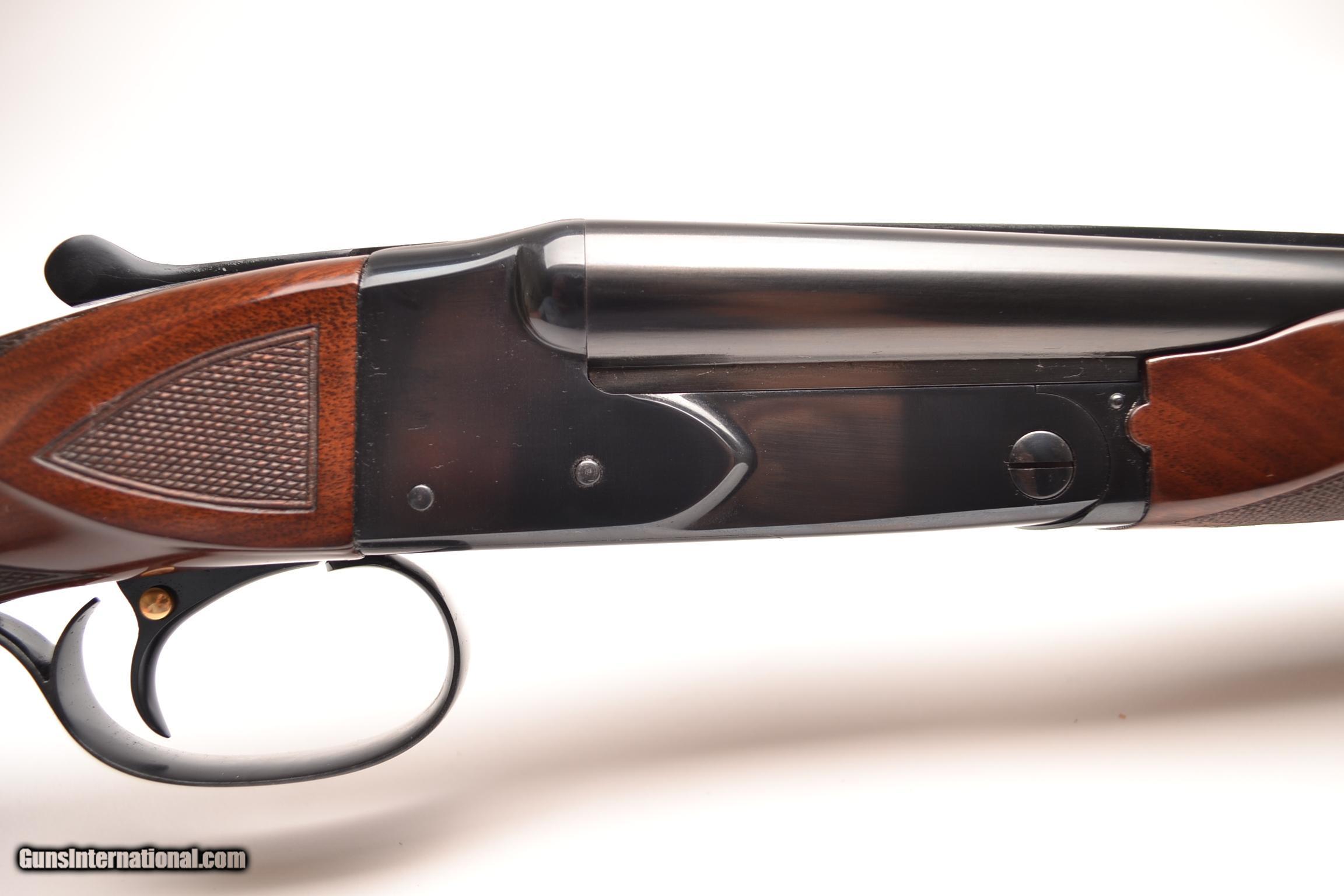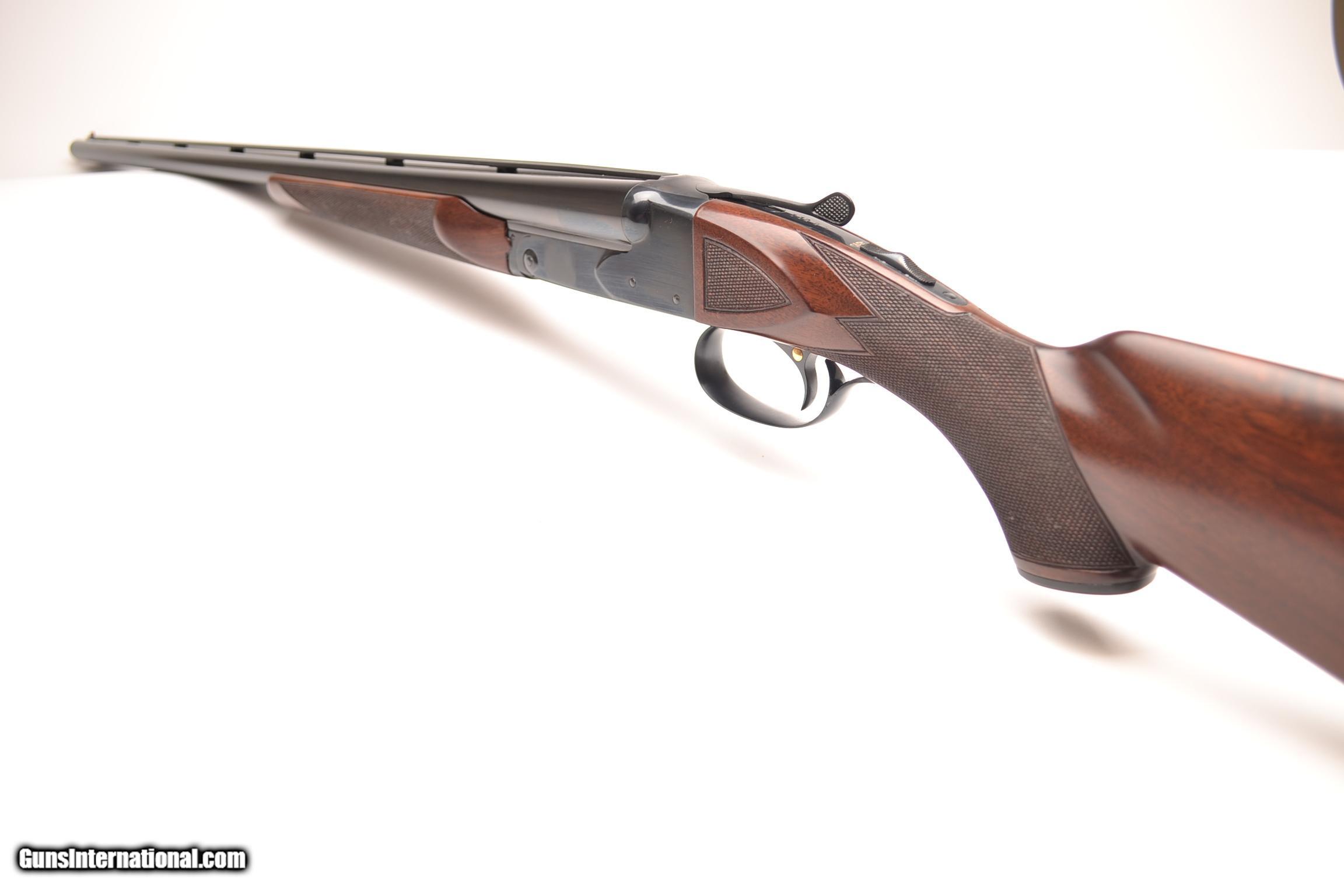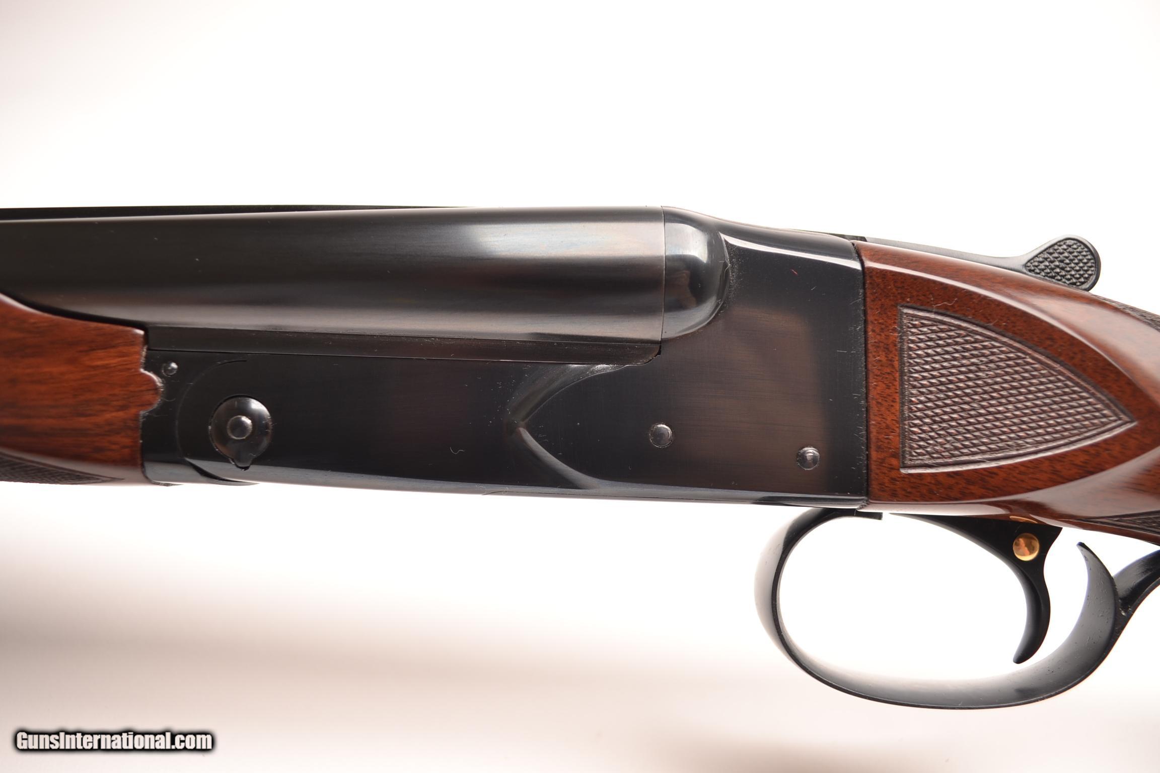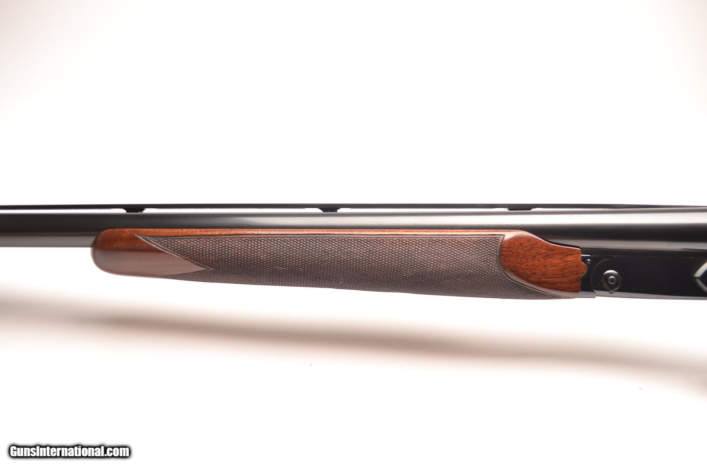 Description: Winchester Model 21, 20ga. , 28” barrels, choked WS1/WS2. Factory 3” magnum, capped pistol grip, checkered butt, 3 point checkering, checkered side panels. Nicely figured black walnut feathercrotch. Very unusual configuration. FACTORY VENT RIB, VERY RARE. This gun is 99% as new. A perfect gun. Inventory # 40537 Price - $12,995 SOLD |