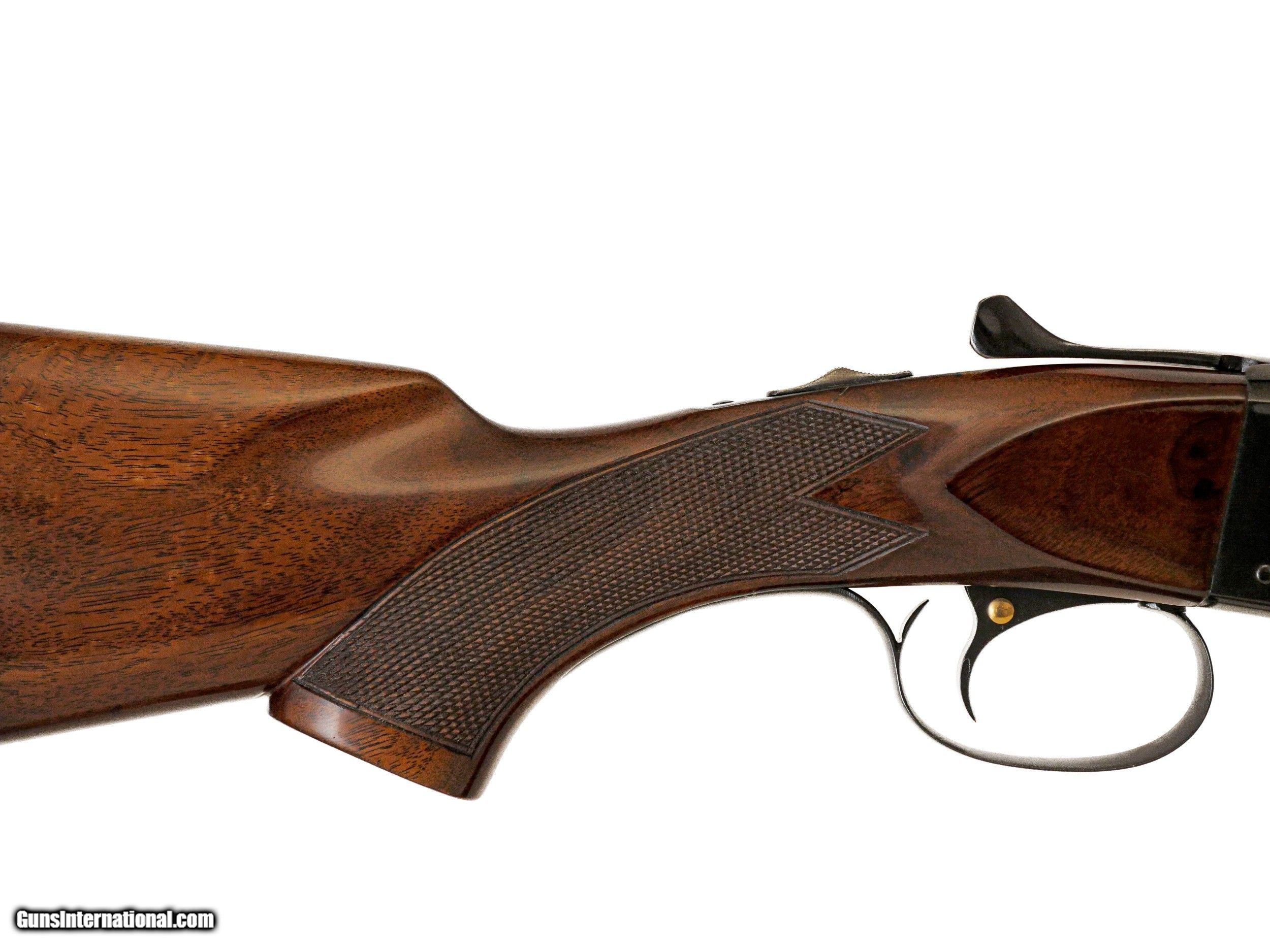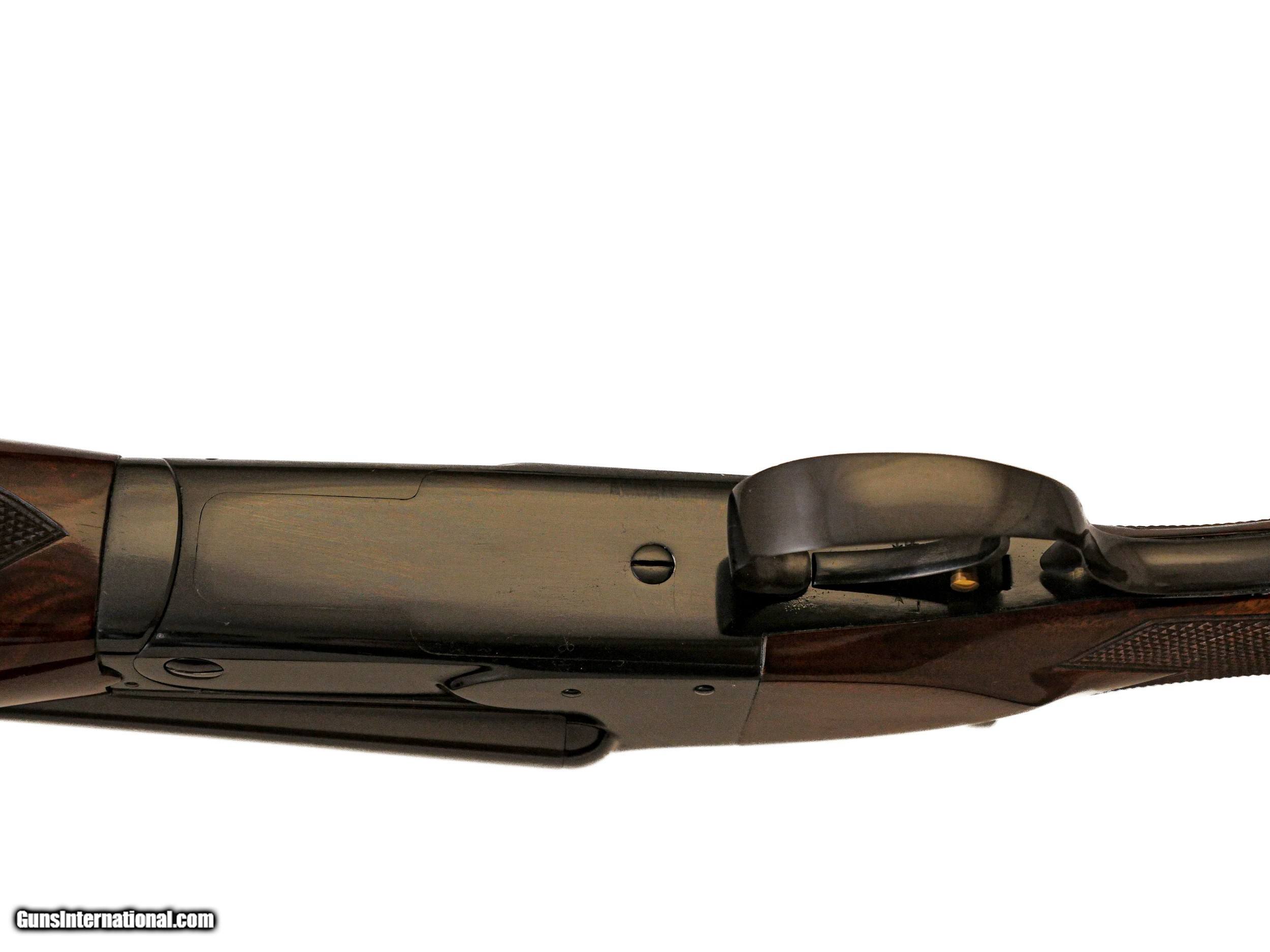 Description: Winchester - Model 21, 20ga. 28" Barrels Choked M/F. Fancy feathercrotch pistol grip American black walnut stock, Winchester recoil pad, beavertail forend with kidney pattern checkering, auto safety, single selective trigger, automatic ejectors, solid matte rib, perfect configuration, near perfect condition throughout, available for immediate delivery. S & H - $50.00. Inv: 51237 6 lbs. 10 oz. 14 ¼” x 1 ½” x 2 5/8” $9,750.00 SOLD |