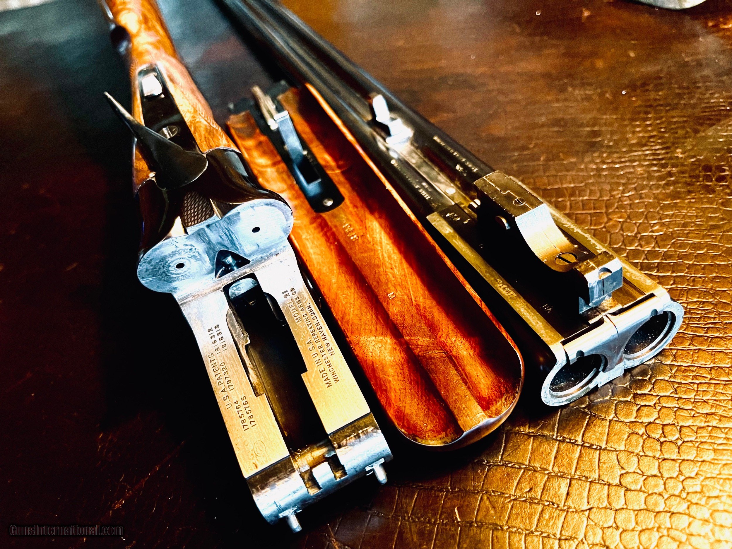SOLD Shotgun Gauge: 20 Gauge Manufacturer: Winchester Model: Model 21 Serial Number: 9448 Barrel Length: 26” Chambers: 2 3/4” Ejectors: Auto Timed Crisp Condition: Spectacular Metal Condition: Spectacular Wood Condition: AS NEW Bore Condition: Shiny Triggers: Single Stock: Pistol Grip Cap Stock Comb: 1 1/2” Stock Heel: 2 1/2” Stock Cast: Neutral Fore End: Hession Style Beavertail Butt Pad: Checkered Butt LOP: 14” Rib: Solid Hand Matted Finish: Hand Rubbed Oil Weight: 6 lbs 9 ozs Manufacture Date: 1934 Choke Left: WS2 Choke Right: WS1 |