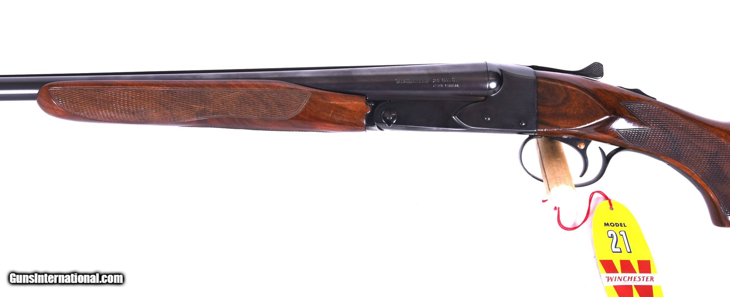 Description: Up for grabs is a gorgeous Wimchester model 21 in 20Ga.Gorgeous deluxe wood package. Black receiver. Made in 1949. 28" barrels. Mod/Full choked. Beavertail forend. Auto ejectors. Single trigger. SOLD |
