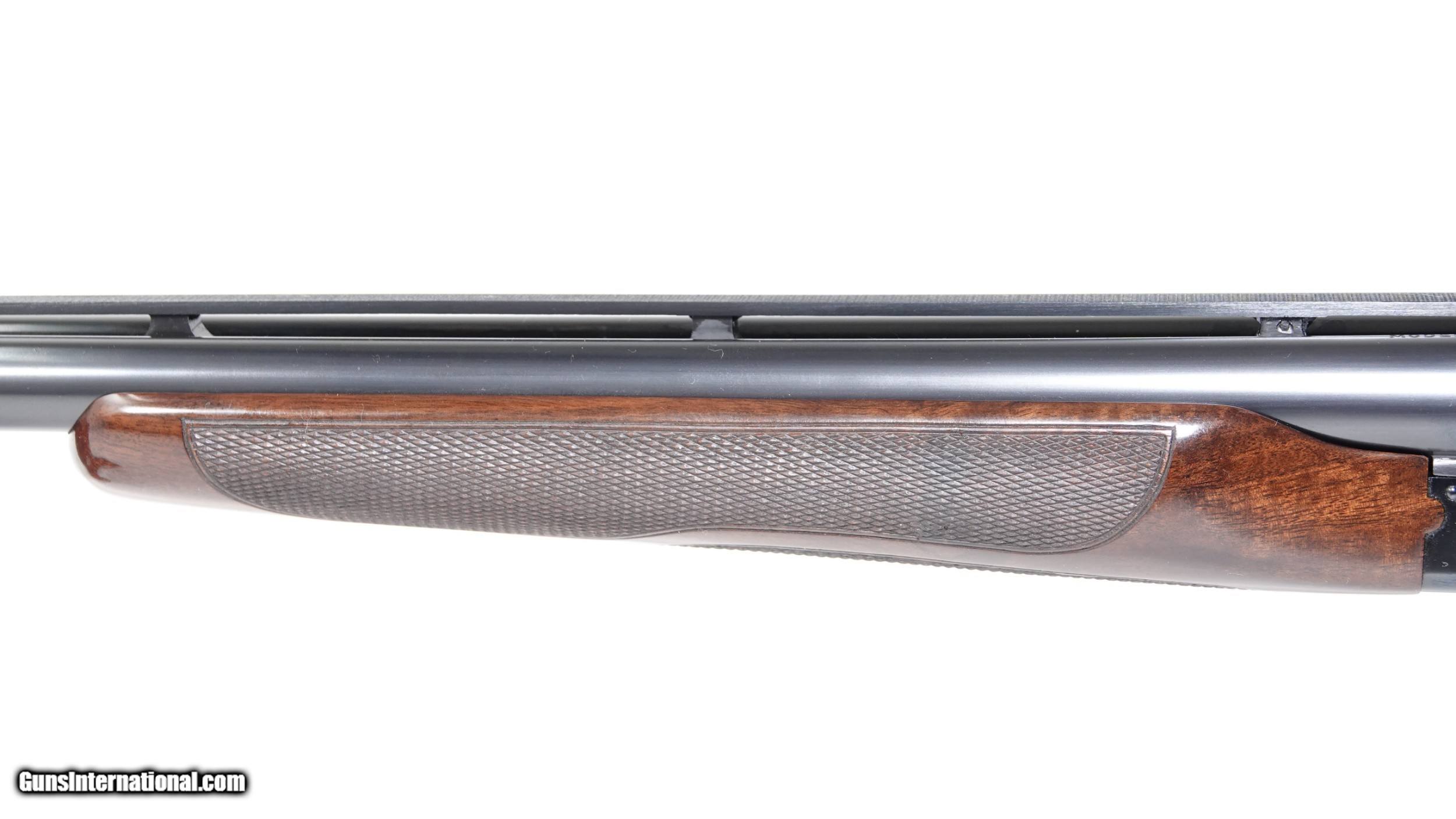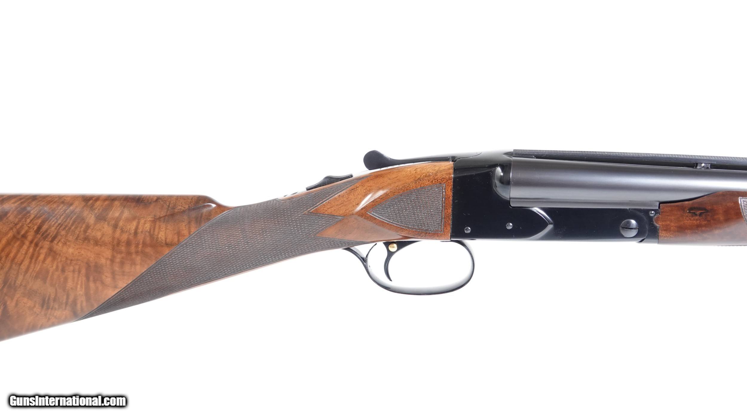 Description: Winchester - Model 21, 28ga. 28” Barrels Choked IC/Mod. This gun features a vent rib, kidney style beavertail, straight grip stock with 3 point checkering, checkered side panels and a checkered butt, highly figured feather crotch walnut, auto ejector, single selective trigger. This is a very rare early 28 gauge with the heavier barrels, sharp checkering, and sharp corners. It is perfect in every single way and is in as new condition. Inv# 46437 8 lbs. 14 1/4" x 1 3/8" x 1 5/8" $18,500.00 SOLD |