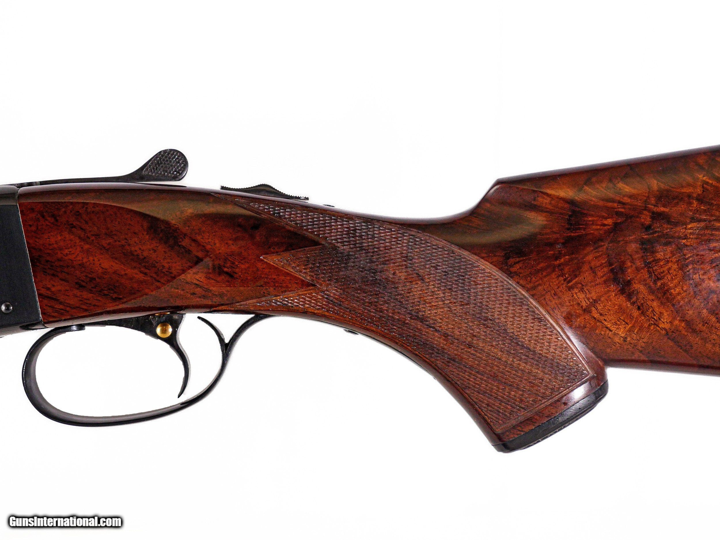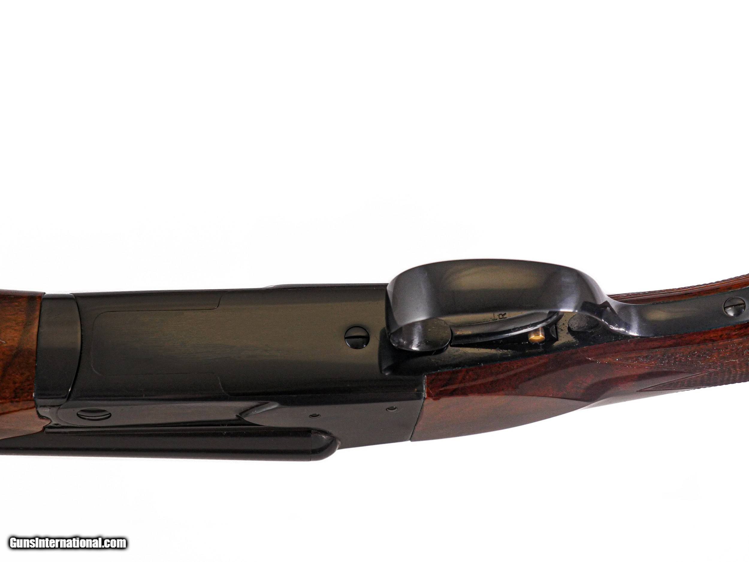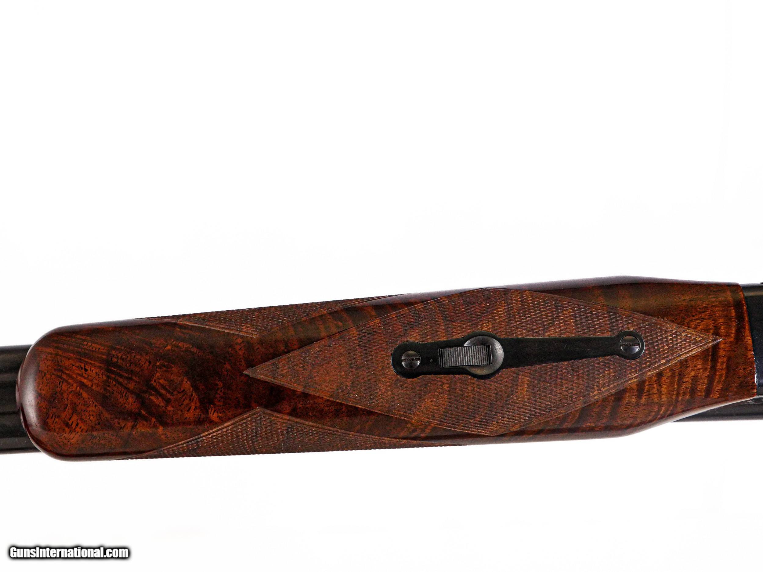 Description: Winchester - Model 21, 28ga. 28" Barrels Choked IC/M. American black walnut capped pistol grip stock, beavertail forend with diamond style checkering, butt plate, single selective trigger, automatic ejectors, vent rib, , perfect 99% as new overall condition, a beautiful Model 21 in the ideal configuration, flatside round frame receiver, a rare configuration, available for immediate delivery. Inv: 51482 7 lbs. 6 oz. 14 ½” x 1 ½” x 2” $18,500.00 SOLD |