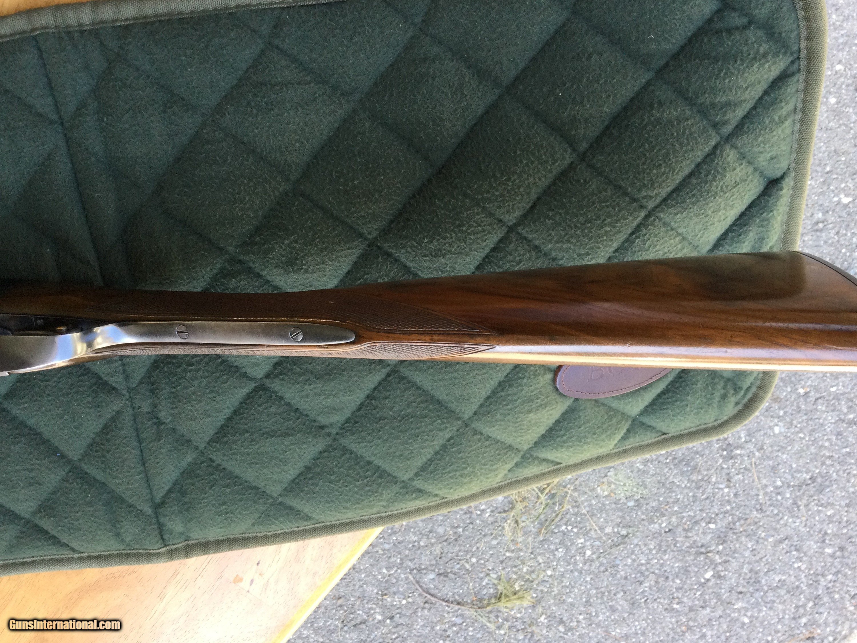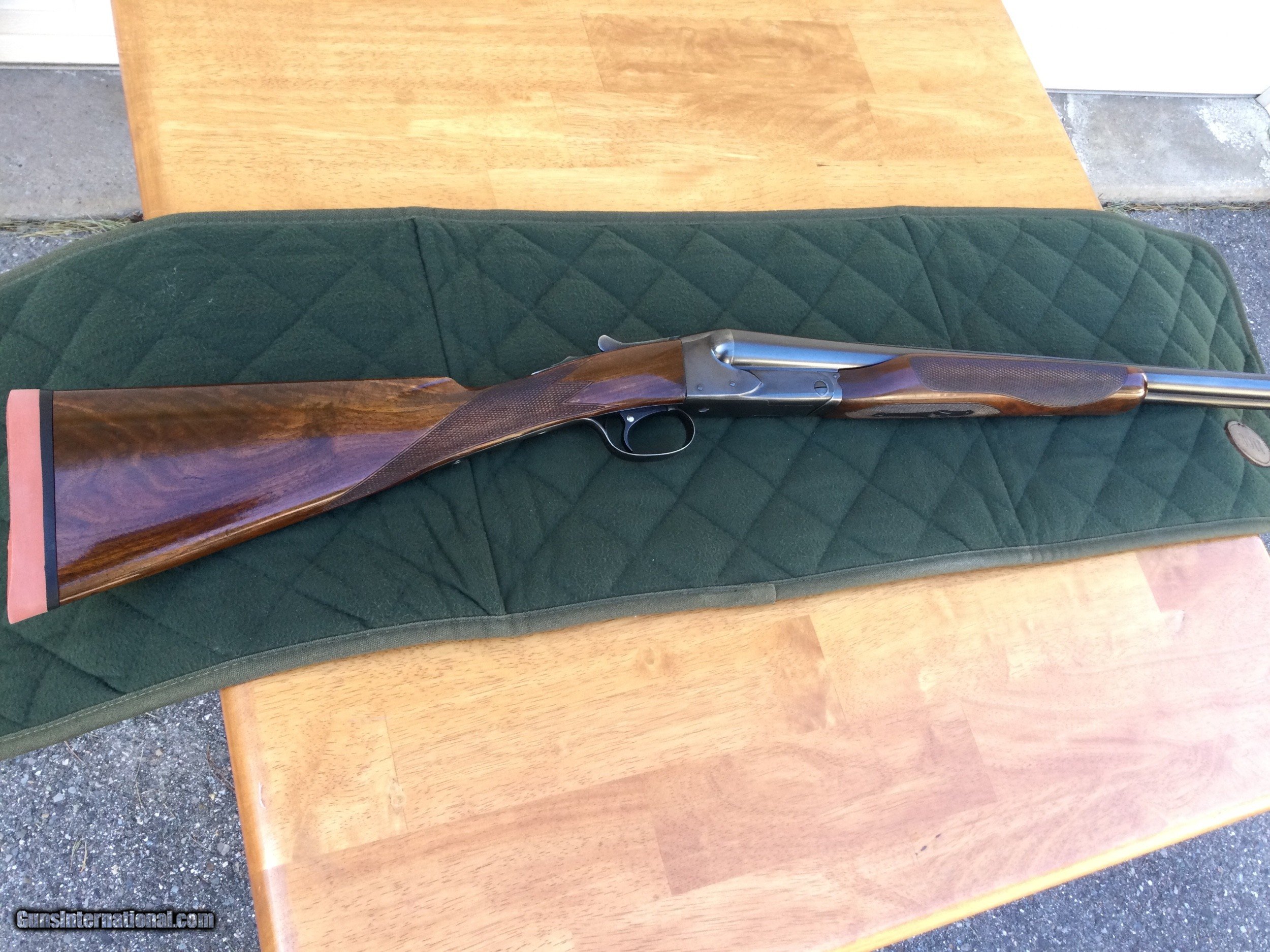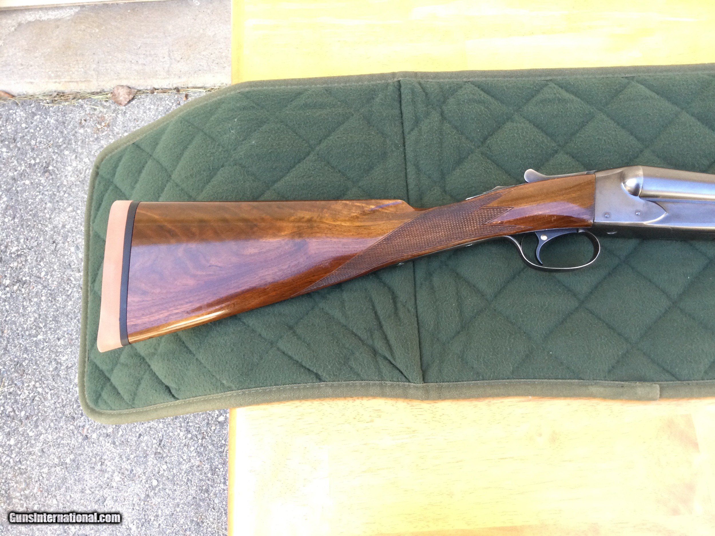 Description: Here is a Beautiful--- Winchester Model 21, 32 inch barrels, 12 Gauge Trap. If you want a gun with all the bells and whistles this is it!!!! It is in excellent original condition with; Ejectors, Single Selective Trigger, Factory 32 inch Vent Rib, Non Automatic Safety, it is Choked Full and Full, they are original and have not been tampered with. The LOP is 14 Inches with a Beautiful Winchester Red Recoil Pad. If you want a beautiful collectible shotgun that you can use and that will not deprecate in value, you can not ask for more than this Model 21. This Shotgun weights approximately 8 pounds 2 ounces and would make a wonderful Sporting Clays or any game gun you would want to shoot. The Model 21 is a shotgun known for its durability and to find one configured like this is almost impossible. The stock is an English Grip with Beavertail Forend with marks so slight they are hard to photograph. Treat yourself to a SxS Shotgun that feels lively in the hands and will withstand many lifetimes. Thank you for looking. GO TIME!!!! SOLD Shotgun Gauge: 12 Gauge Manufacturer: Winchester Model: Model 21 Serial Number: 14977 Barrel Length: 32 inch Ejectors: Yes Condition: Excellent Metal Condition: Excellent Wood Condition: Excellent Bore Condition: Excellent Triggers: Single Selectable Stock: English Style Walnut LOP: 14 inches Rib: Factory Raised Rib |