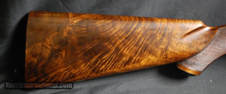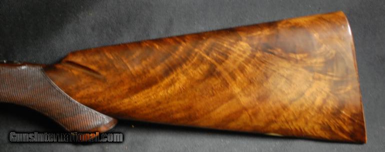 Description: WINCHESTER - Model 21-6 Pigeon Grade, 16ga., 26” IC/M, AAA fancy feather crotch capped pistol stock with a checkered butt, marked Pigeon Grade in gold on metal pistol grip cap, gold SST, AE, beavertail forend with Winchester custom pattern checkering and ebony tip, ventilated rib, flatside round frame receiver, 99% everything, extremely clean and tight, includes original factory box. 14 ¼” x 1 1/2” x 2 ¼” 7 lbs. 15 oz. $19,999