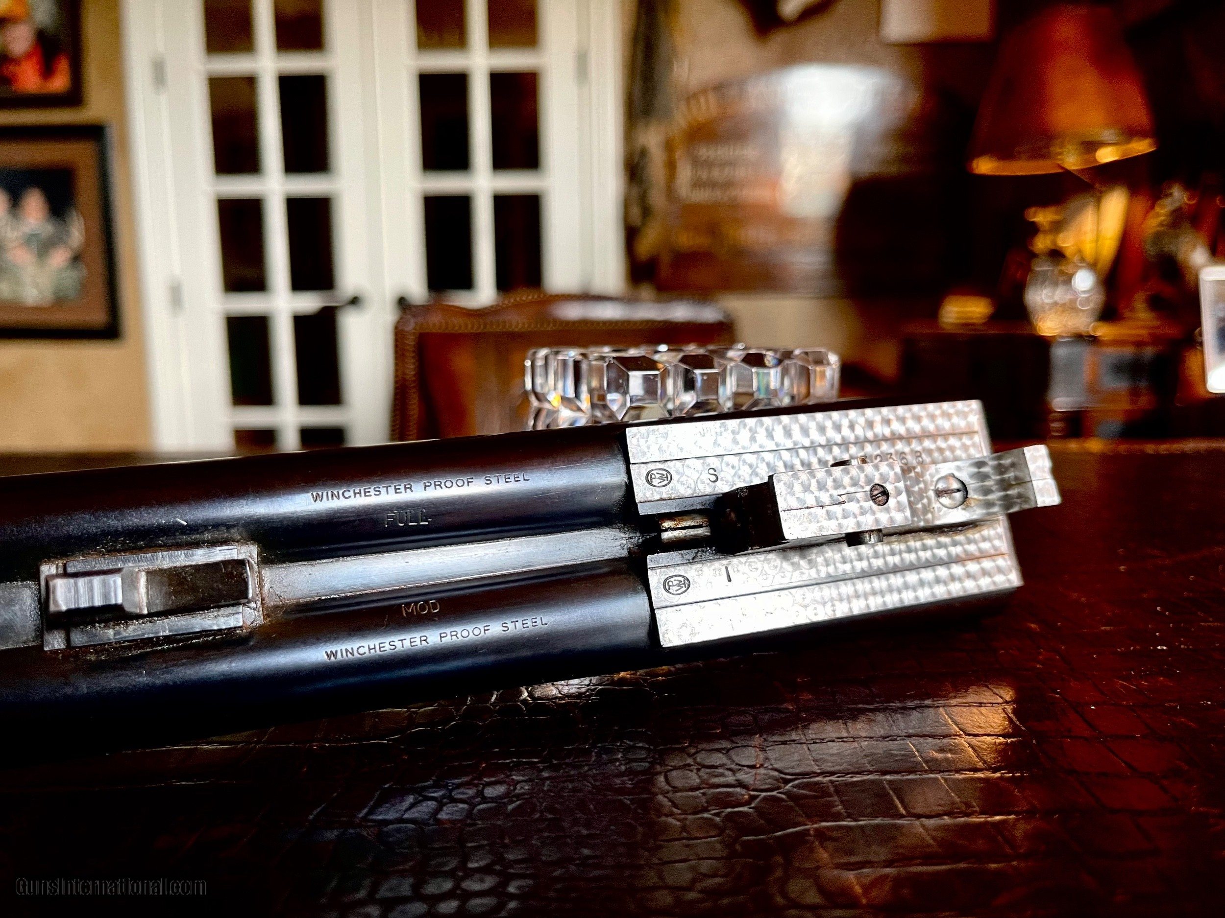Winchester Model 21 Custom Flatside 20ga - 30” - M/F - Vent Rib - Jeweled Action & Flats - High Grade Black Feathercrotch Walnut - Deluxe Checkering