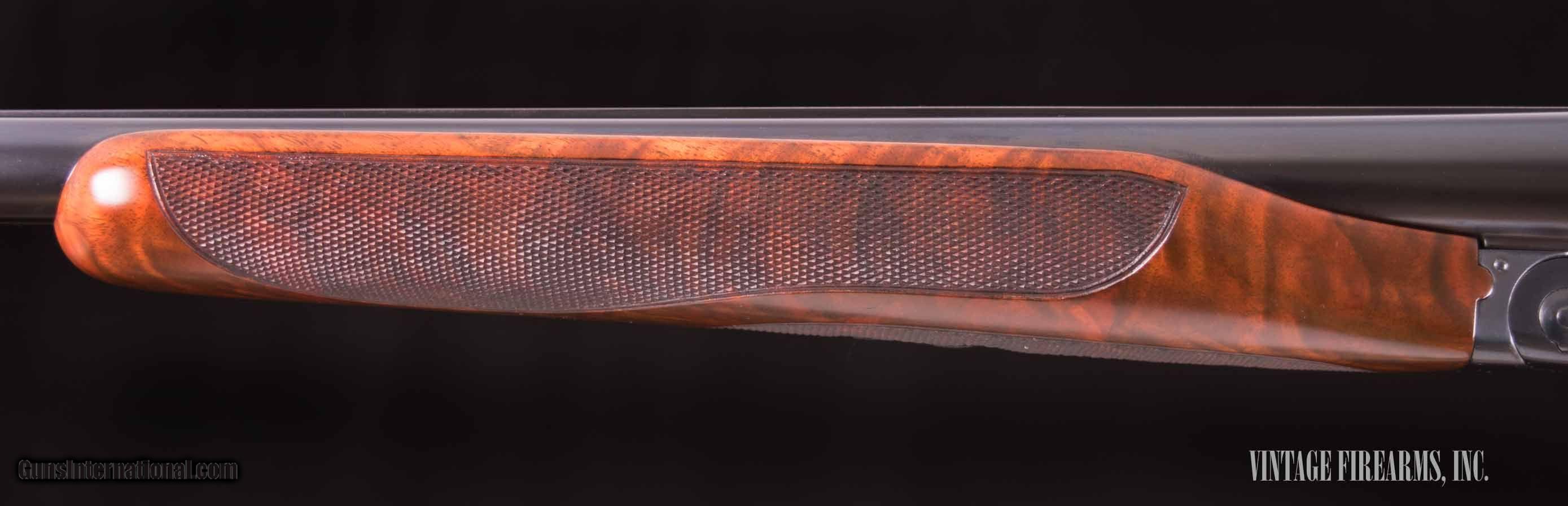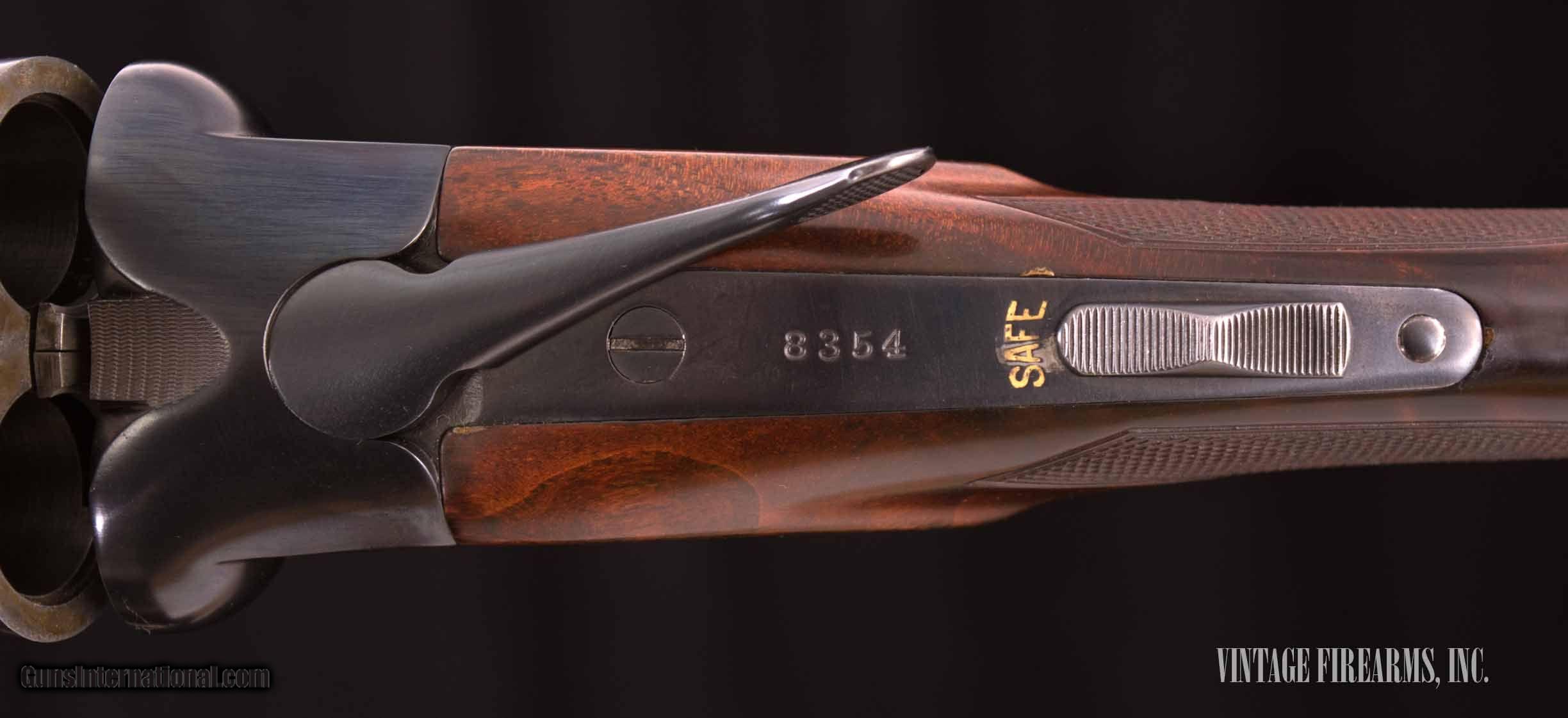 Description: Winchester Model 21 Field 12 Gauge Side-by-Side KNOCK-OUT WOOD, TIGHT, 28” M/F, 99% CONDITION General Specs: Winchester, Year 1935, 12 Gauge, 7lbs 8oz, SxS Serial Number: 8354 When John Olin wanted to have title to the strongest side by side shotgun in the world, he went to work and got it done. The Model 21 is an American icon with a well-deserved reputation. A strikingly handsome gun with the finest steels, gunners in the know have utilized this Winchester in the field and at the club to shoot thousands of rounds without failure. IF YOU LIKE HEAVY LOADS FOR PHEASANTS OR OTHER TOUGH GAME, THIS IS THE GUN. Most double gun enthusiasts are keenly aware of the reputation earned by the Winchester Model 21; a gun of mechanical genius that was under the micro management of John Olin himself. With only 30,000 produced (compared to 250,000 Parkers!), any high condition Model 21 is a valuable, investment quality firearm. This gorgeous M21, sn8354 made in 1935, is a great example. The wood is figured far beyond most Field Grade guns, and the gun was well cared for with the barrels retaining 99% blue and the receiver retaining 99% blue. The 28” barrels still have the factory M/F chokes with excellent bores. The mechanics are perfect and the wood was recently restored in our shop, so the gun looks like new inside and out. What a great field or clays gun at a price that most people can afford. Thanks for looking! Barrels Barrel Length: 28" Chokes: .010/.033 marked M/F; factory chokes Bores: perfect mirrors Bore Diameter: .730/.730 Wall Thickness: .030/.030 % Blue: 99% Chambers: 2 3/4" Ribs: tight Sights: red front bradley; silver middle Action Action: tight Ejectors or Extractors: ejectors, timed Case Color: blue 99% Screws: perfect Trigger Type: single selective trigger Trigger Guard Color: 99% Stock Type: capped pistol grip/beavertail forend/ figured black walnut LOP: 13 5/8" LOP To End Of Wood: 12 3/4" DAH: 2 5/8" DAC: 1 5/8" Cast: 1/8"heel, 1/4"toe off Checkering Condition: excellent Butt Treatment: winchester pad There are more photos upon request. We offer a 30 day mechanical warranty on this fine shotgun. Call us for full details. PLEASE SEE MY OTHER FINE VINTAGE FIREARMS. Just open one of my ads and click on the line that says “see all items from this seller” and a very nice list of fine sporting and collectible arms will appear. I have many more fine sxs shotguns not yet listed. Thanks for looking! We employ a full time gunsmith on premises and can perform alterations to suit your needs within a few weeks of purchase. Payment Methods: Money Order, Certified Check, Personal Check, Wire Transfer Inspection Period / Return Policy: Three Days from the date the item was received. Sales Tax: 6% Michigan Only Shipping & Insurance: Ground $55.00 We ship internationally! Item Condition: Used Requires FFL?: Yes If you have any questions about this item or payment, please email or call us directly, at #616-292-6240. Thanks! Vintage Firearms Inc We employ a full time gunsmith on premises and can perform alterations to suit your needs within a few weeks of purchase. Common requests are: -stock bending to suit your particular requirements -addition of any specified butt pad to increase length of pull -alteration of chokes to suit your shooting preferences -lengthening of chambers and forcing cones -darkening stock color with penetrating stains -restoring any part of the gun including rust blue, charcoal blue, bone and charcoal case color, wood restoration and checkering recuts. If you like one our guns but it needs "tweaked", let us know and we can quote you a time and price. Some enthusiasts like the guns "as found" and others want them "just so". We often list guns as found and let the particular buyer choose how they want their gun to fit or look. SOLD Curio/Relic: Yes |