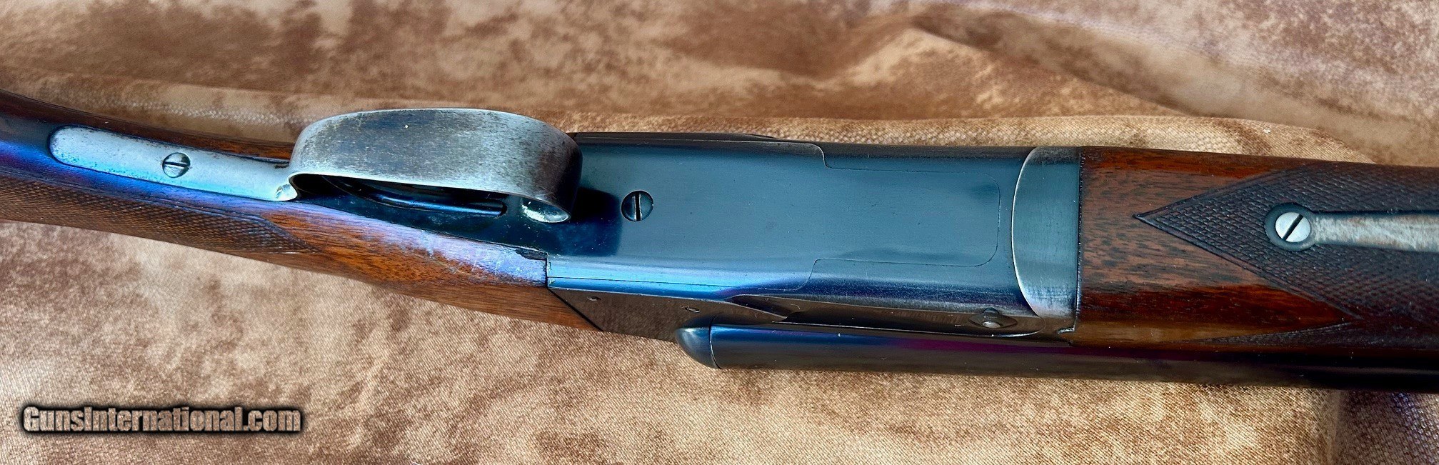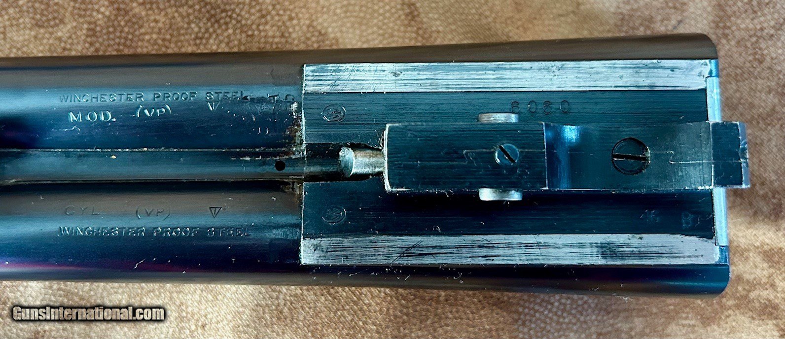 Description: Absolutely fantastic upland Winchester M21 16ga Field grade shotgun. High condition, no abuse. 28" factory marked CYL & MOD chokes. I have never seen another factory CYL Model 21 in any configuration. 2 3/4" chambers. Extractor/ double trigger gun. Both preferred for the upland woods. This is a prewar Model 21..... approx 1936. One of the best. Cosmetically excellent with light field use. Majority of factory original blue remains... most blue wear evident on trigger guard. No dents, no dings, bright excellent bores. Wood finish excellent, may have had finish lightly added ovet the years. No cracks. Light handling marks. Fantastic field dimensions with a jacket/vest. Locks up tight, funtions crisply. Automatic safety. Comes with period Abercrombie & Fitch leather "toe under" luggage case in excellent condition. Lovely compact case. Original lock key. 2 16ga snap caps incl. Pictures represent this gun & case very well. No surprises. Priced for immediate sale. SOLD Curio/Relic: Yes Shotgun Gauge: 16 Gauge Serial Number: 6060 Stock Comb: 1 1/2 Stock Heel: 2 3/8 LOP: 13 7/8 Weight: 6# 11oz Chokes: CYL & MOD Choke Left: 0 k Choke Right: 12k |