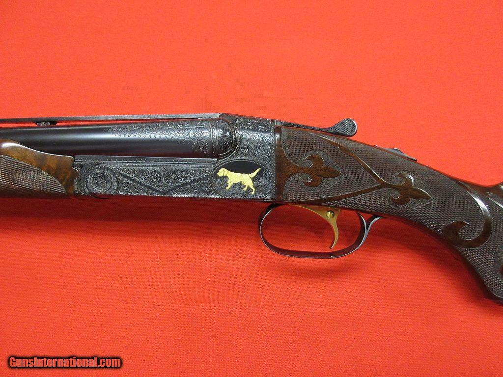 Description: Winchester Model 21 Grand American 20ga 26"/26" Ventilated Rib (FACTORY LETTERS)-- Winchester Model 21 Grand American (serial #W33XXX) -- Factory original and in near new condition. Currently this gun is equipped with a highly figured pistol grip stock that was manufactured by Connecticut shotgun (extra engraved gold inlayed trigger bow included). It includes the factory original straight grip stock with the leather pad and the original gold inlayed straight grip trigger bow as well. This gun matches the factory records/letter exactly with the straight grip stock. Original leather case with dust cover included. Near new condition overall. Please ask for details on this firearm. Additional photos on request. SOLD |