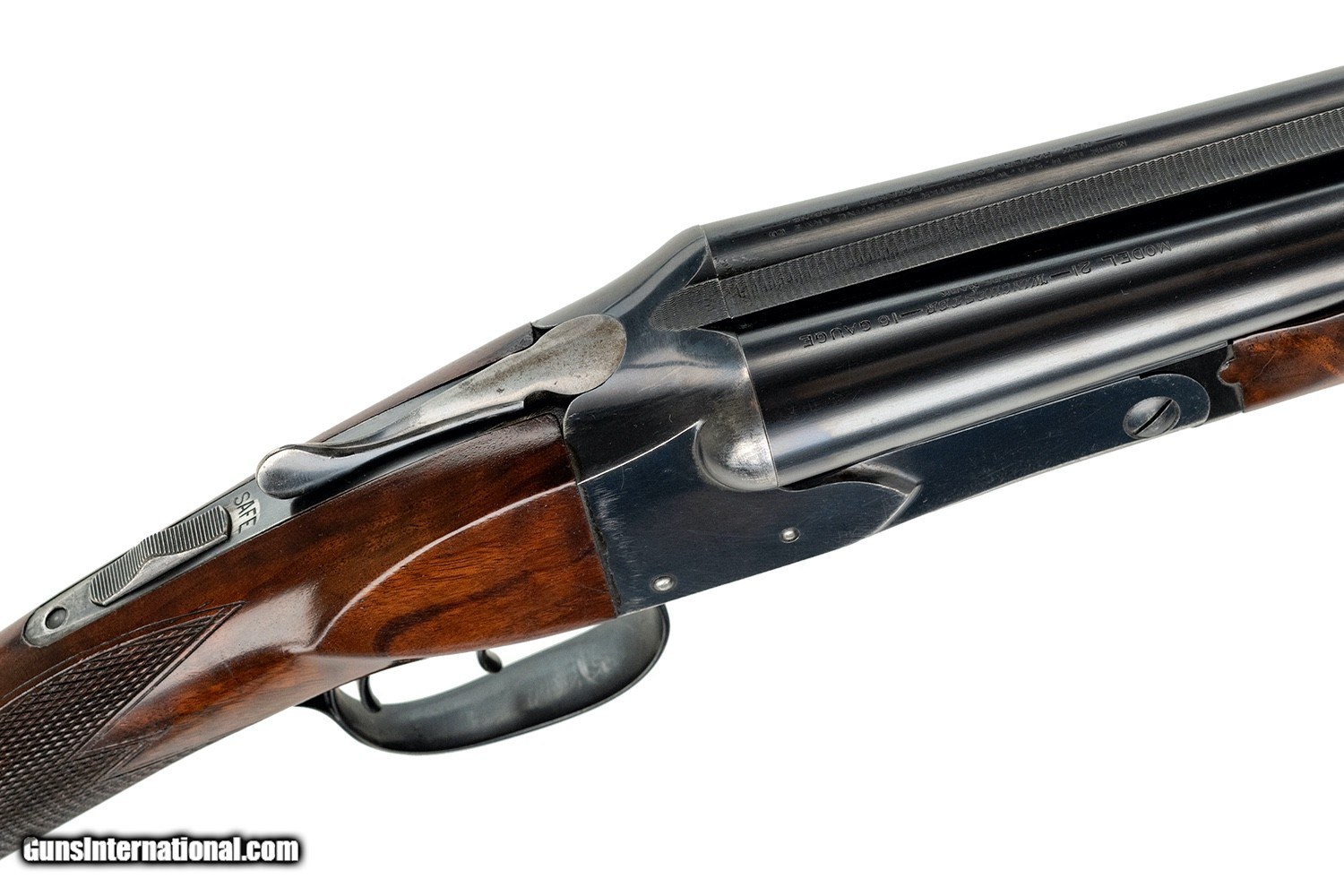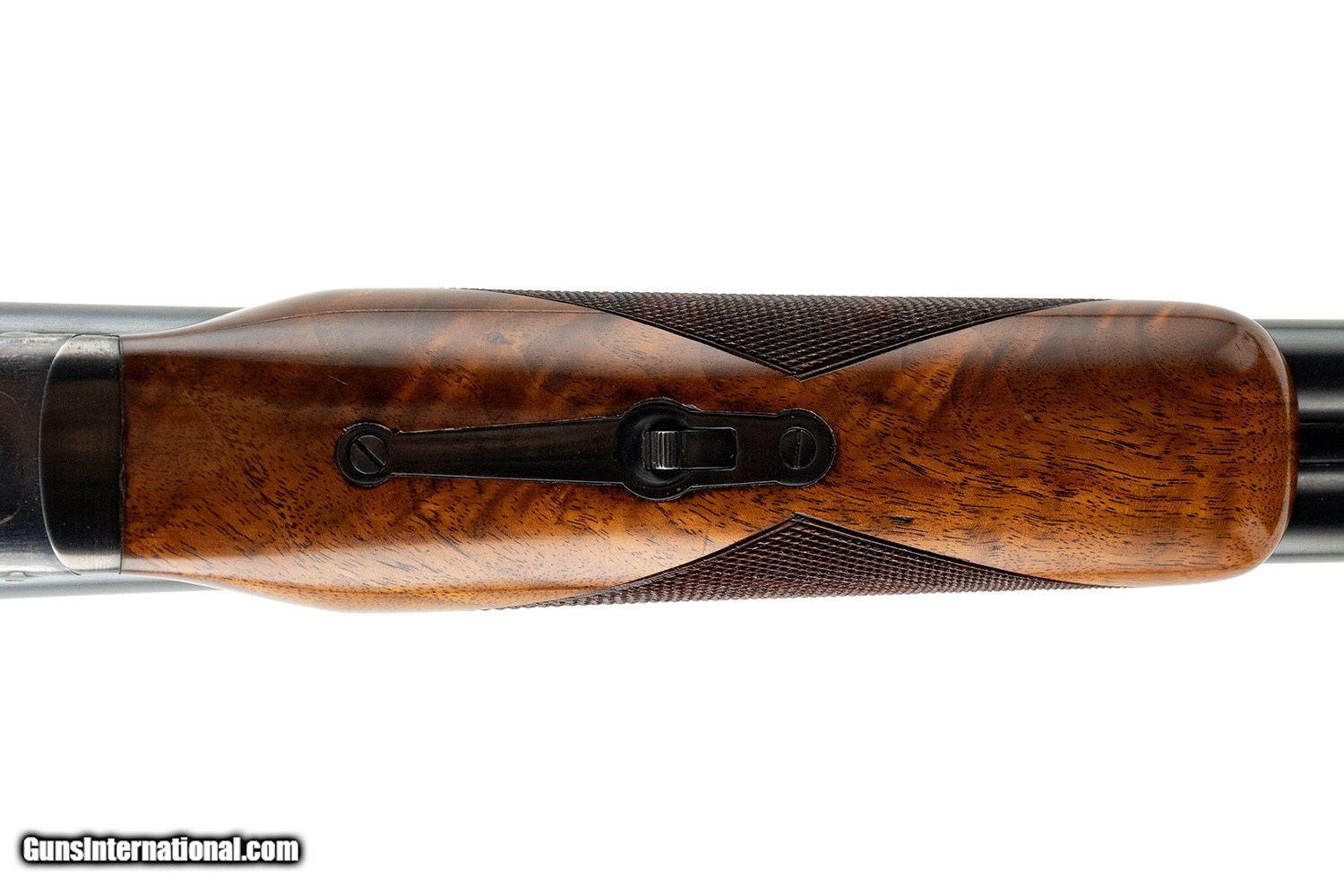 Description: #60XX 28" SOLID RIB MOD AND FULL (.012 AND .028 CONTSTRICTIONS) 2 1/2" CHAMBERS DOUBLE TRIGGER EXTRACTORS BEAVERTAIL FOREND ENGLISH GRIP EXCELLENT CONDITION WITH SOME LIGHT HANDLING AND BLUE WEAR CHECKERED BUTT 6LBS 10 OZ 2" DAH 1 7/16" DAC 13" LOP SOLD |