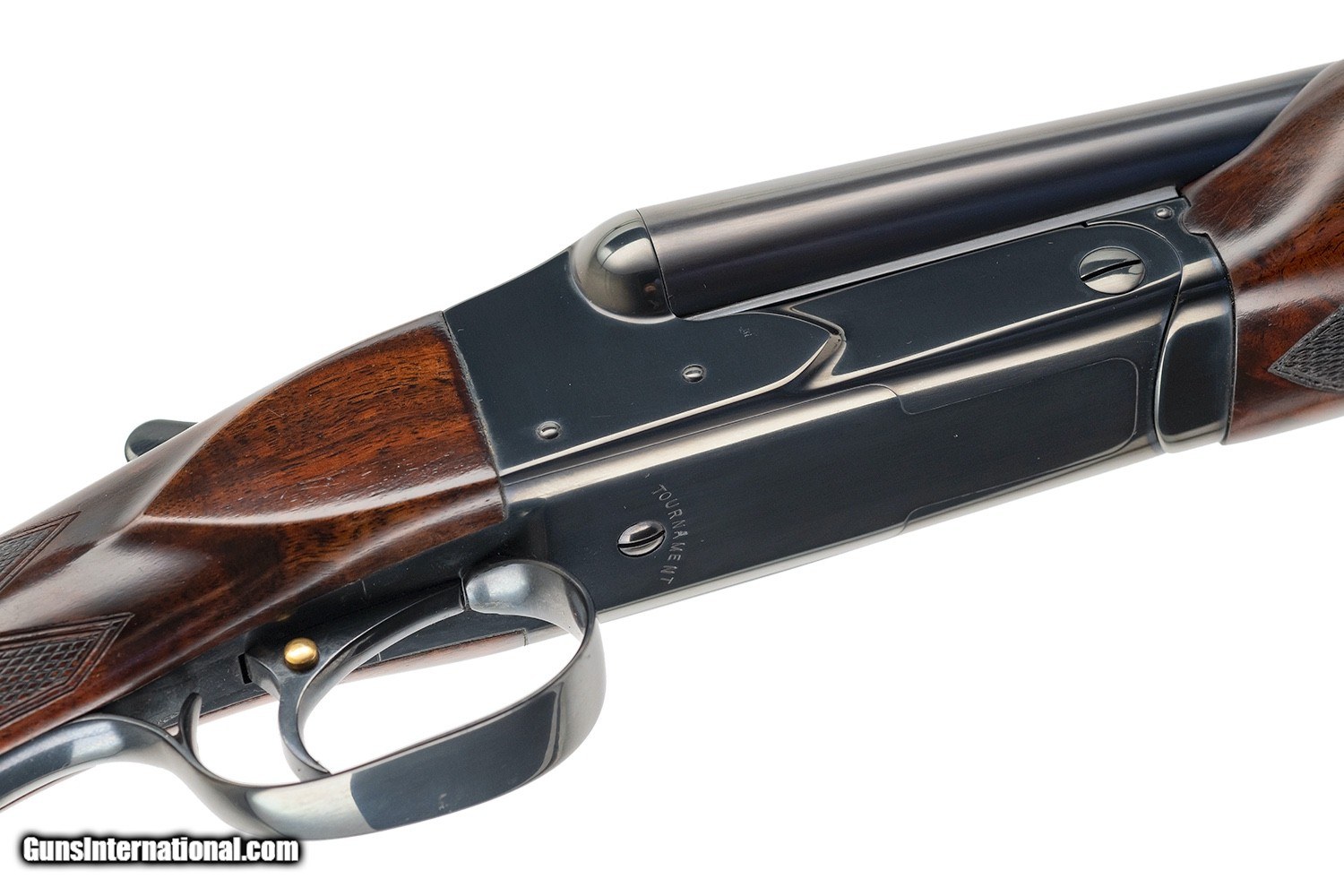 Description: SN# 63XX 28" SOLID RIB BARRELS MOD AND FULL (.008 AND .024 CONSTRICTIONS) 2 3/4" CHAMBERS 28" SOLID RIB BARRELS WS1 AND WS2 (.004 AND .010 CONSTRICTIONS) 2 3/4" CHAMBERS SINGLE SELECTIVE TRIGGER EJECTORS BEAVERTAIL FOREARM PISTOL GRIP BUTT PLATE EXCELLENT CONDITION WITH SOME LIGHT HANDLING MARKS IN WOOD 7LBS 2 OZ 2 3/8" DAH 1 1/2" DAC 14" LOP SOLD |