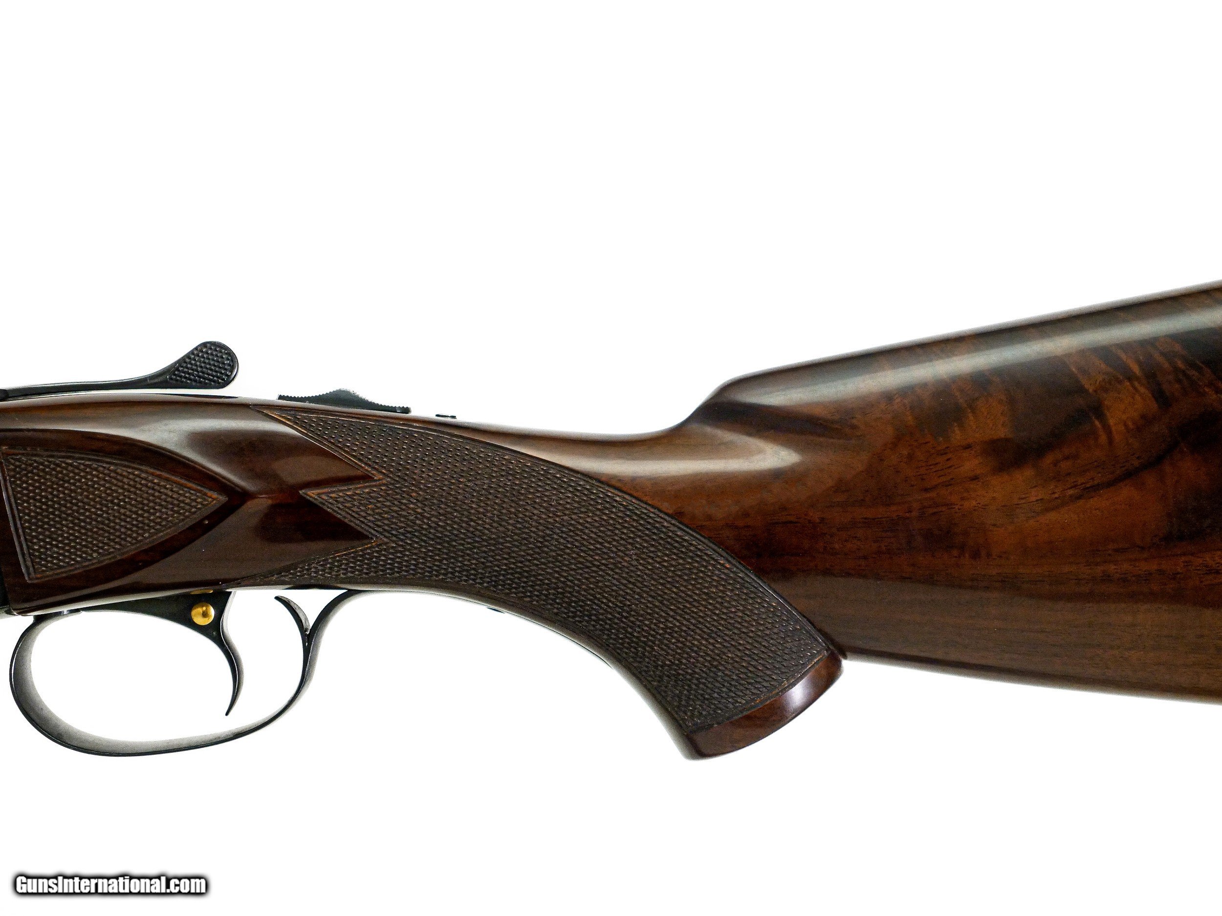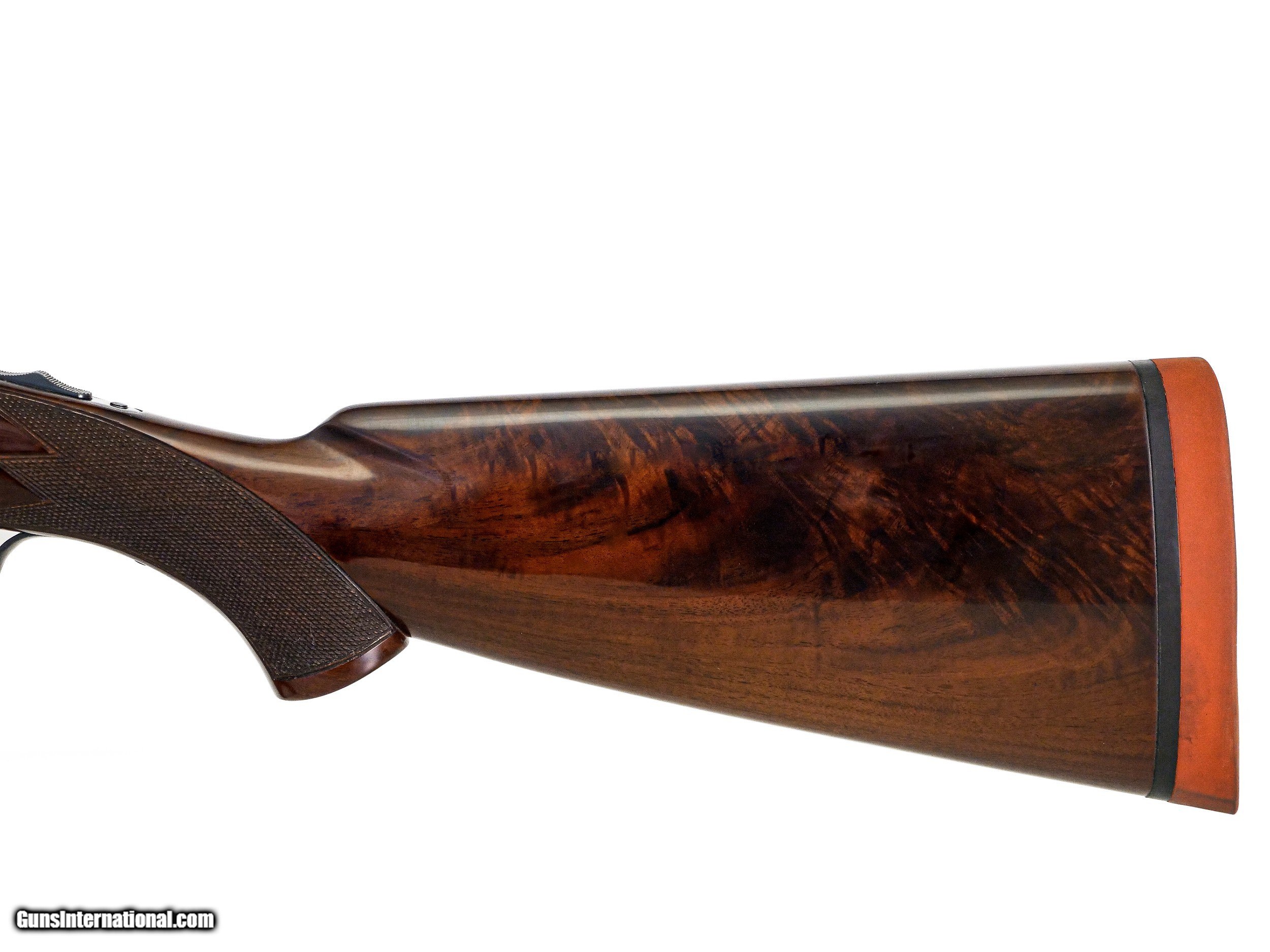 Description: Winchester - Model 21, Rare Trap Grade, 20ga. 28" Barrels Choked M/F. Pistol grip, original Winchester pad, 3 point checkering with side panels checkered, kidney style checkering on beaver tail forend, factory marked trap on floor plate, 99% blue, wood finish and checkering, tight and like new, lifetime warranty by CSMC, sharp checkering, sharp edges, top condition gun with magnificent feather crotch wood. Inv: 52033 6 lbs. 10 oz. 14 1/8" x 1 1/2" x 2" $8,950.00 CT Shotgun/Galazan buys sells and trades the world’s largest inventory on Model 21 shotguns. we are experts in all phases of buying, selling, and repairing as well as restoration of these very complex guns we have handled more Model 21 in all regards than all other companies put together. we have bought sold and manufactured most of the Grand Royal and Grand American grade guns and we understand them intimately. In 1994, Galazan/CT Shotgun purchased the Winchester Custom Shop from U.S. Repeating Arms Company and at that time designated the sole manufacturer and authorized repair for the Model 21, we purchased all of the inventory machining tooling and highly regarded trade secrets in regards to manufacturing and repairing maintaining these intricate shotguns. CT Shotgun/Galazan continues to perform the only authorized factory service on all these fine guns if you are interested in purchasing repairing or altering a Model 21 we should be your sole source when it comes to a Model 21 every gun we sell is serviced and inspected, comes with our lifetime warranty. CT/Galazan also has all assorted accessories, original style cases and recoil pads. SOLD |