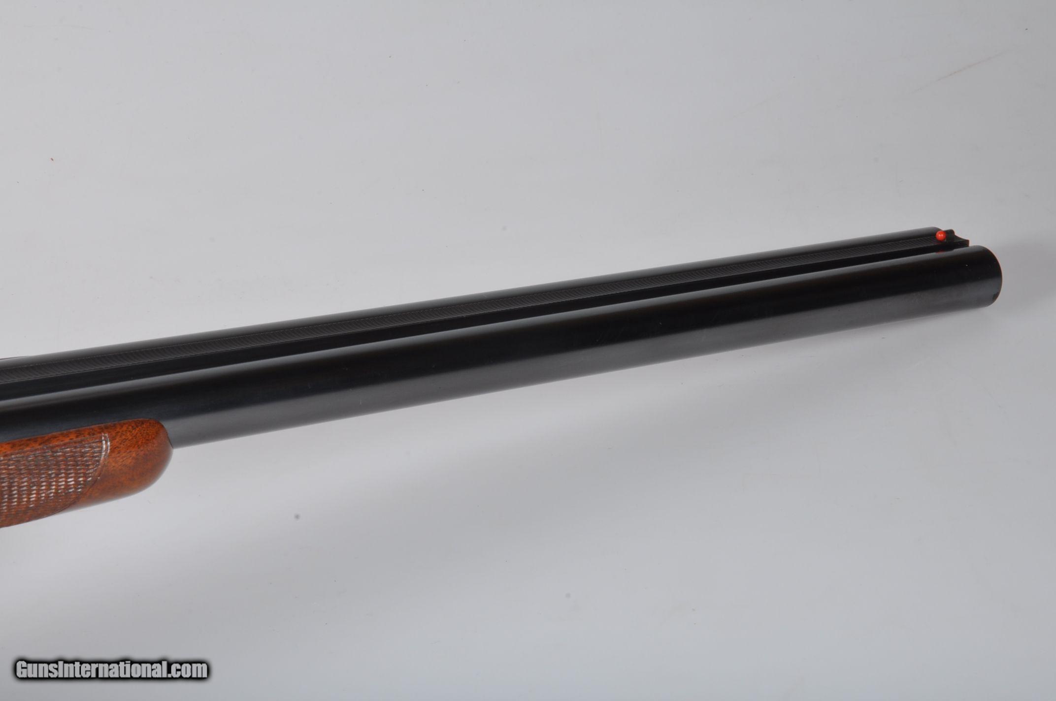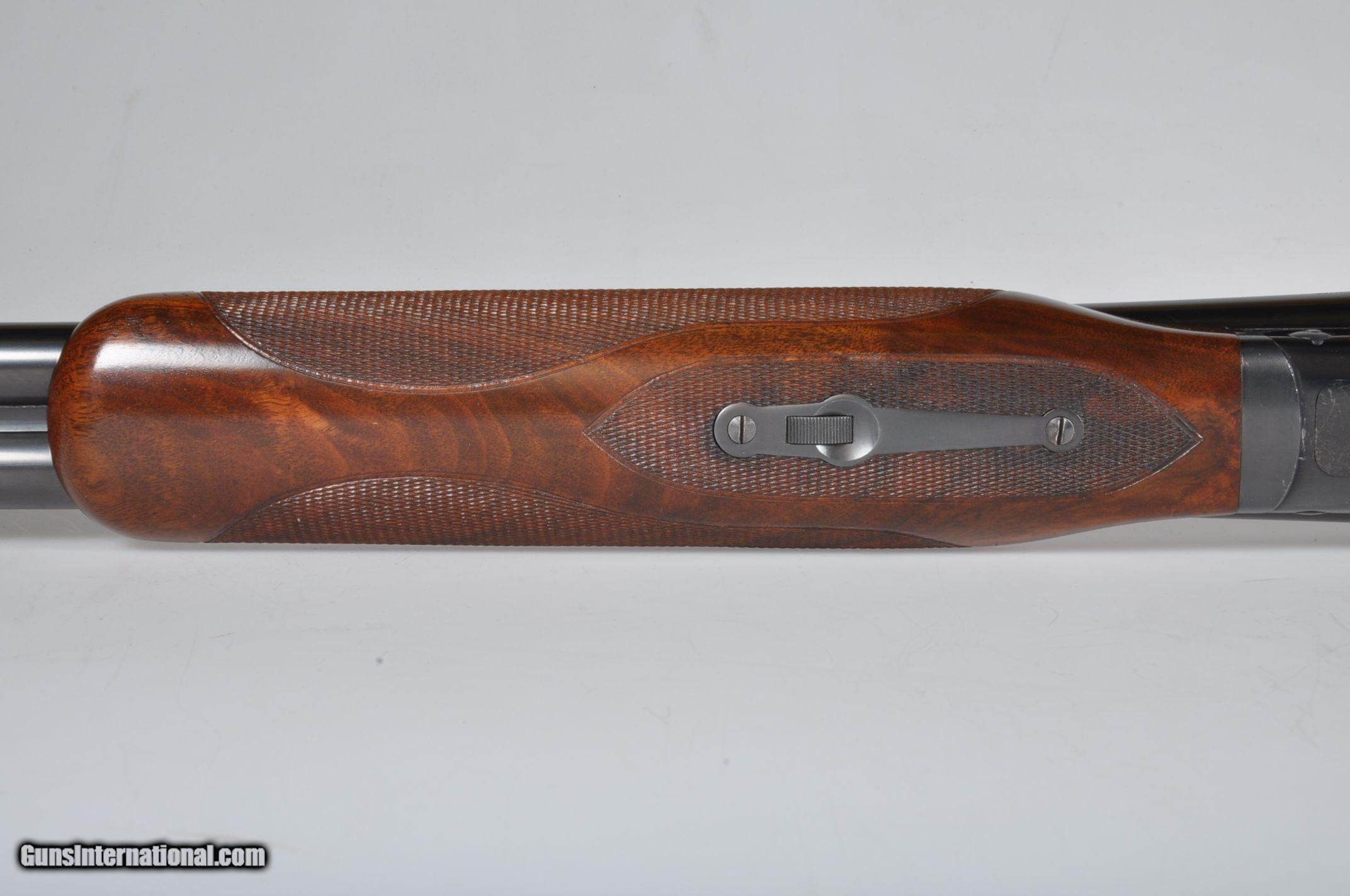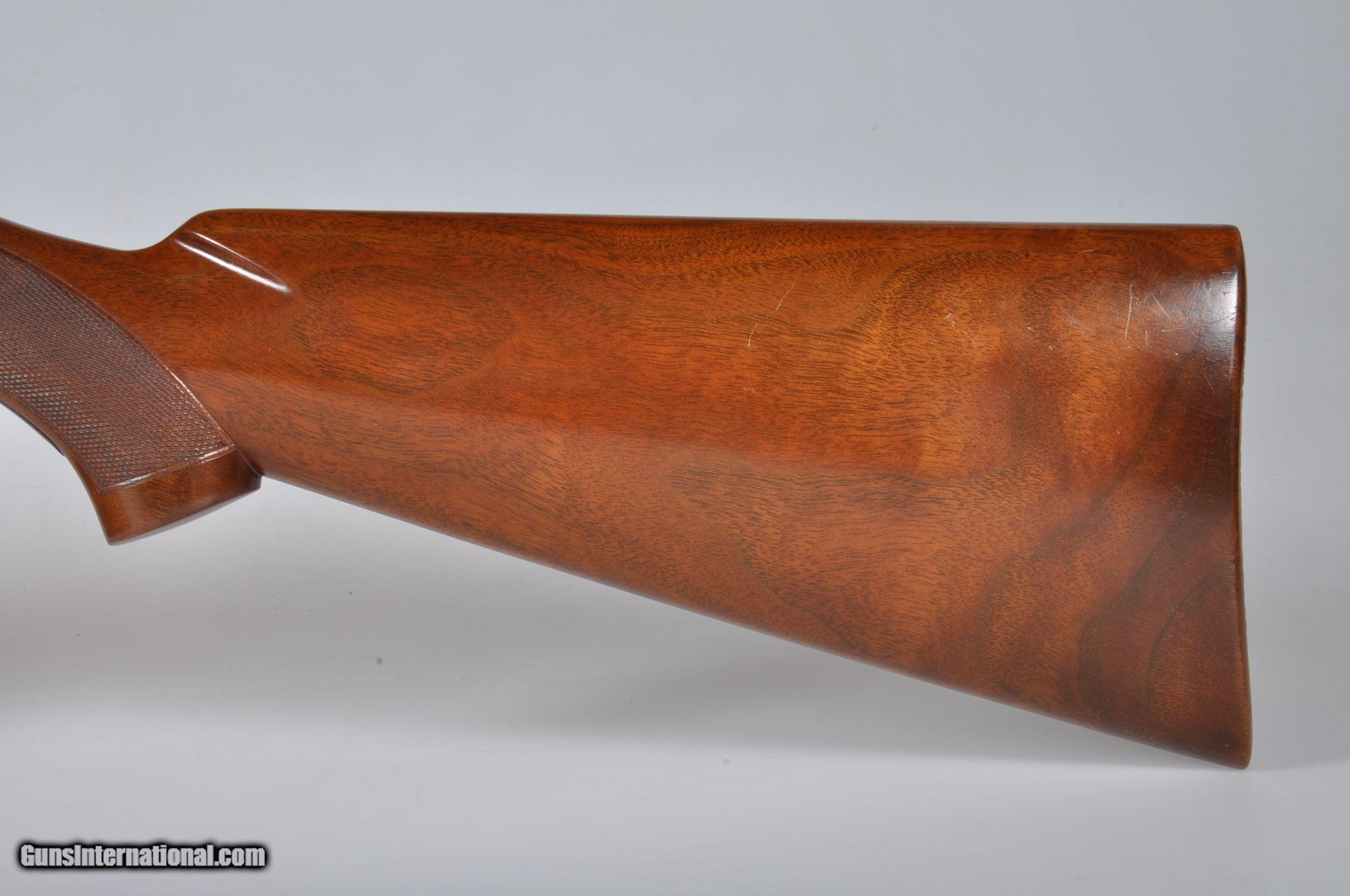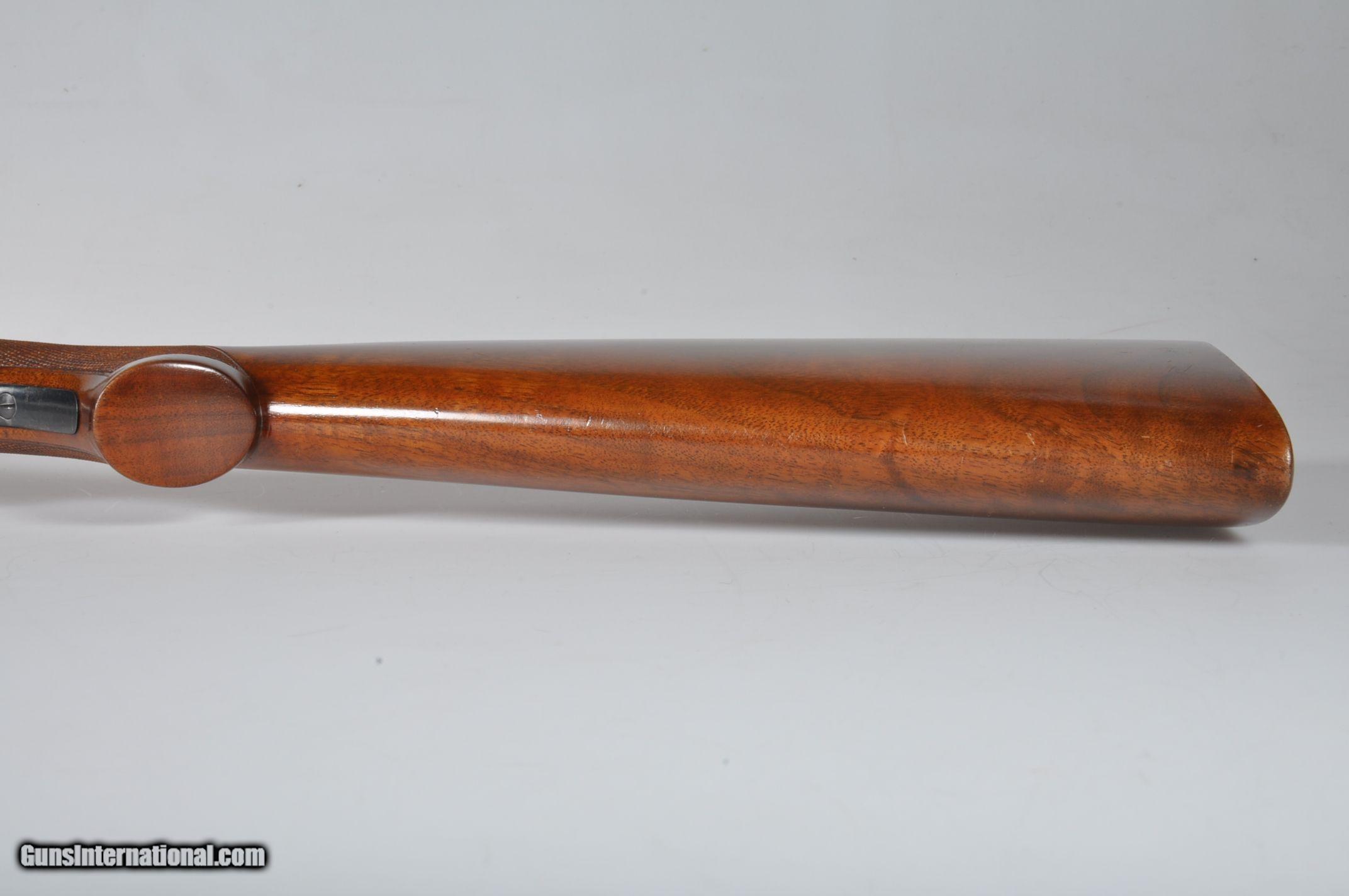 Description: 12 gauge, 26″ barrels, 2 3/4″ chambers. Chokes are marked WS-1/WS-2 and measure +.015 right and .011 left. Full length matted rib with silver mid and red front beads. Bores are bright and shiny. Single selective trigger, automatic ejectors, non-automatic safety. Floorplate is marked SKEET. Pistol grip stock checkered in two point pattern with a 13 7/8” length of pull over a checkered butt. Beavertail forearm with roll type release checkered in Kidney pattern. Condition: All metal retains 95-99% original bluing with the exception of the floorplate which retains 85% original bluing. The stocks retain most of their original finish with a few light handling marks. Drop at comb: 1 3/4”. Drop at heel: 2 5/8”. Weight: 7.2 lbs. Mechanics are excellent. We prefer to communicate by email. We can not accept credit cards for collectible firearms. We have more than 500 Winchester Model 21s in stock in every grade and gauge. We also have hundreds of Parkers, Fox and LC Smith Shotguns so feel free inquire other fine shotguns. SOLD Manufacturer: Winchester Model: 21 Skeet Serial Number: 3513 Chambers: 2 3/4 Ejectors: Yes Barrels: 26 Triggers: SST Gauge Info: 12 Stock: Pistol Grip Fore End: Beavertail LOP: 13 7/8 Weight: 7.2 lbs |