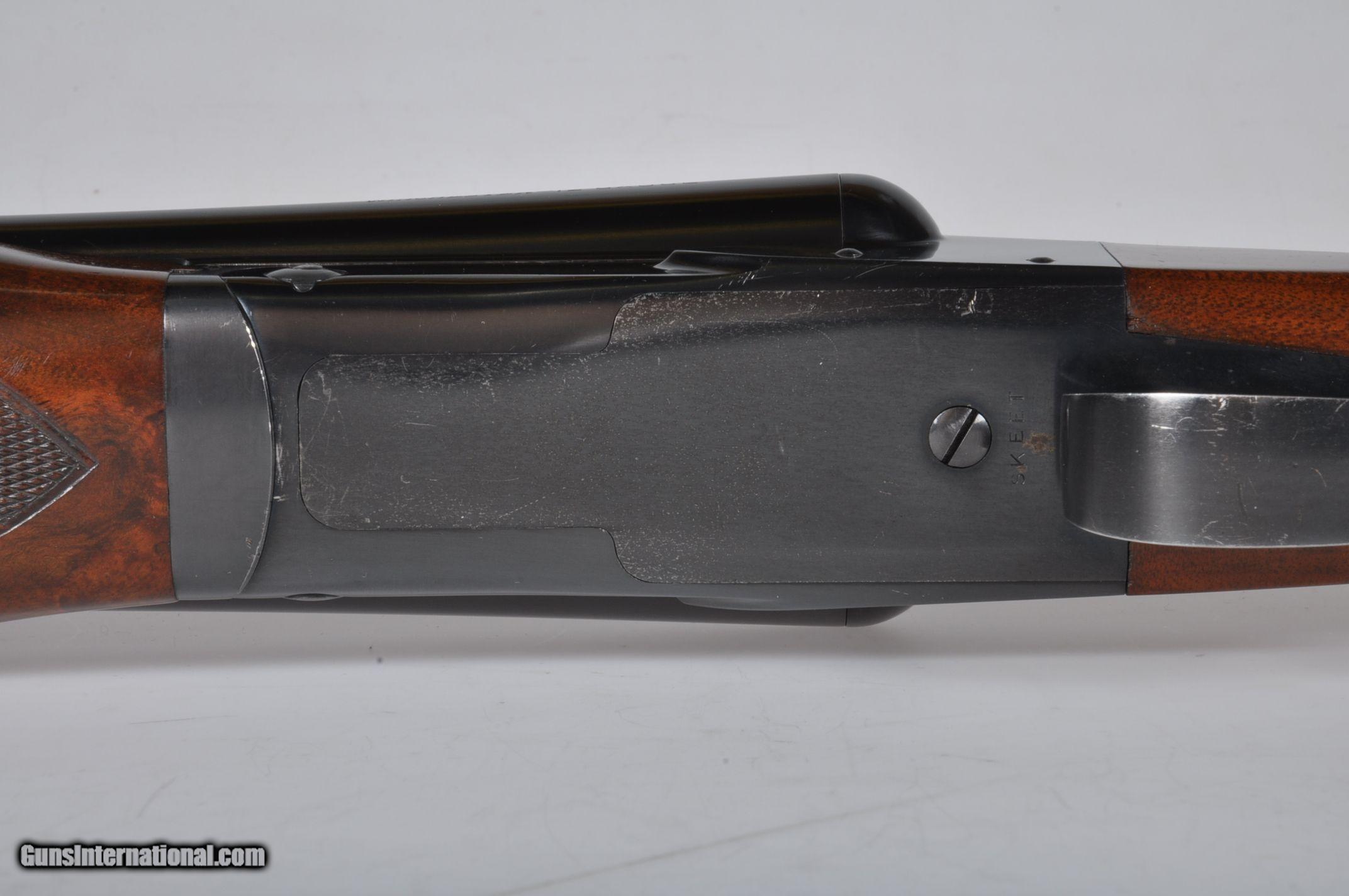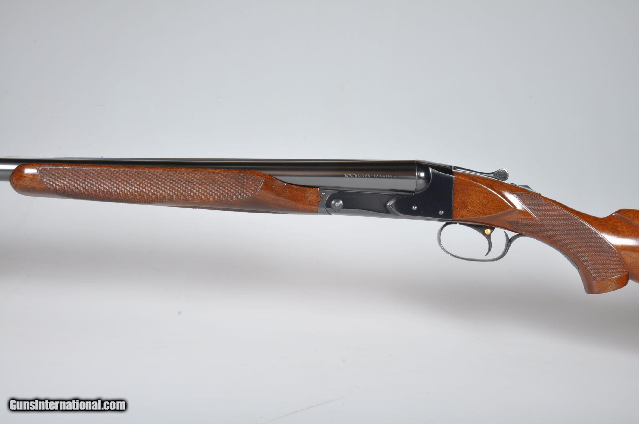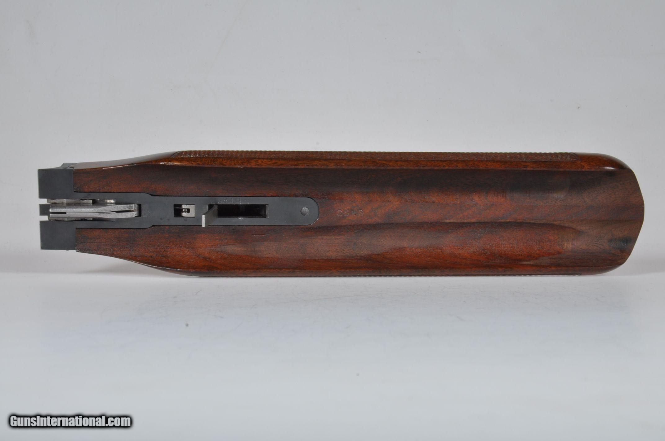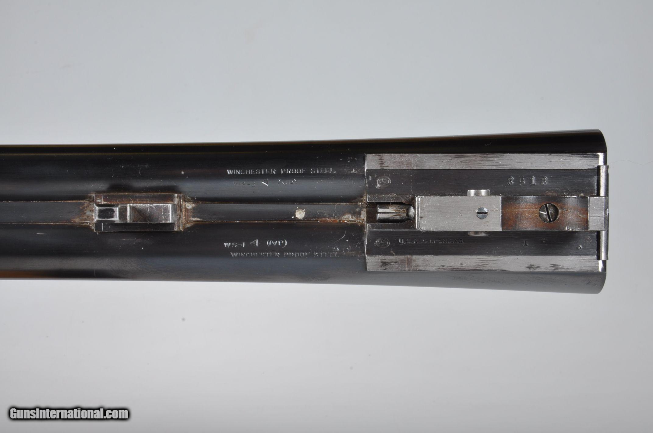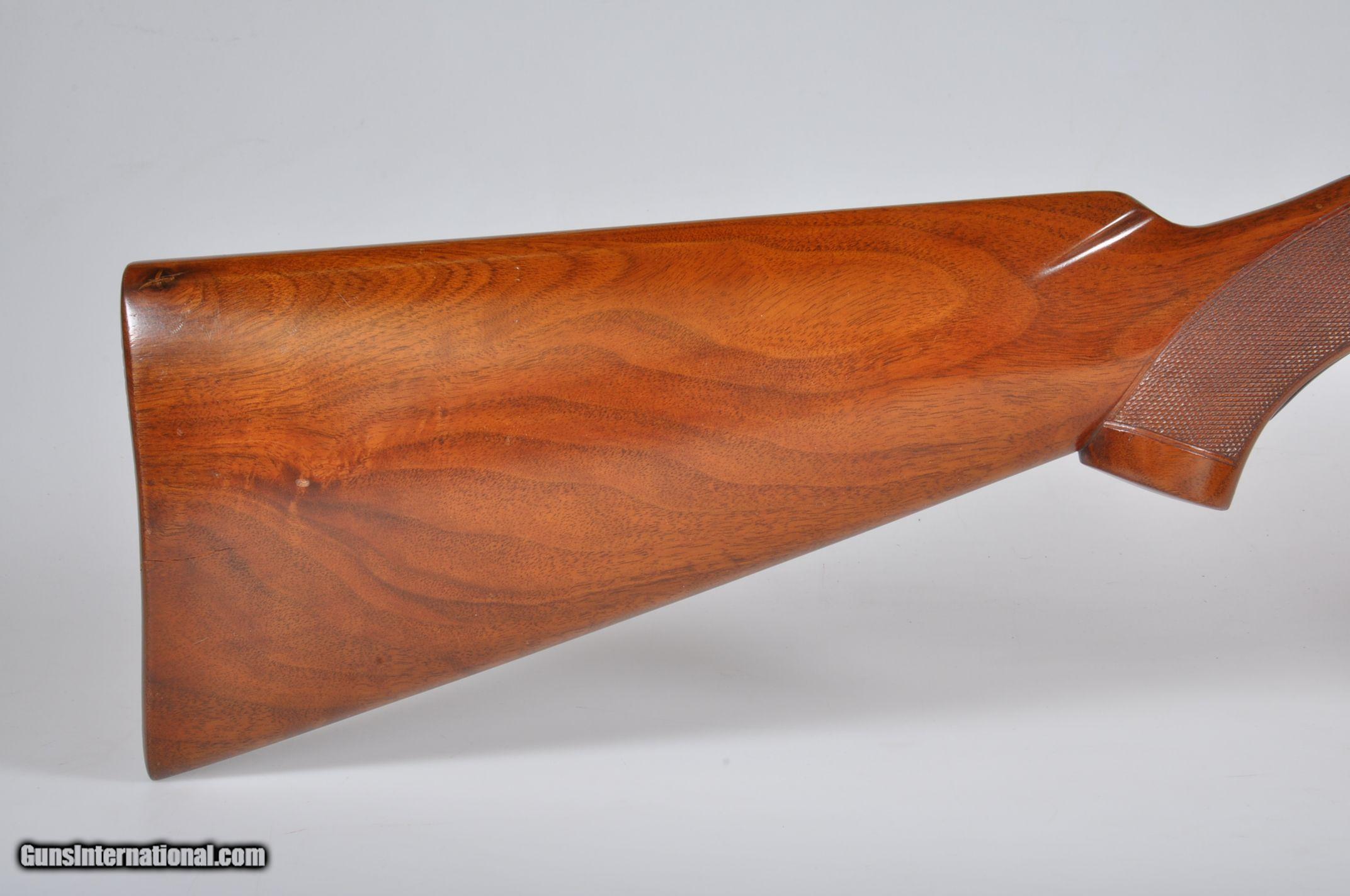 Description: 12 gauge, 26″ barrels, 2 3/4″ chambers. Chokes are marked WS-1/WS-2 and measure +.015 right and .011 left. Full length matted rib with silver mid and red front beads. Bores are bright and shiny. Single selective trigger, automatic ejectors, non-automatic safety. Floorplate is marked SKEET. Pistol grip stock checkered in two point pattern with a 13 7/8” length of pull over a checkered butt. Beavertail forearm with roll type release checkered in Kidney pattern. Condition: All metal retains 95-99% original bluing with the exception of the floorplate which retains 85% original bluing. The stocks retain most of their original finish with a few light handling marks. Drop at comb: 1 3/4”. Drop at heel: 2 5/8”. Weight: 7.2 lbs. Mechanics are excellent. We prefer to communicate by email. We can not accept credit cards for collectible firearms. We have more than 500 Winchester Model 21s in stock in every grade and gauge. We also have hundreds of Parkers, Fox and LC Smith Shotguns so feel free inquire other fine shotguns. SOLD Manufacturer: Winchester Model: 21 Skeet Serial Number: 3513 Chambers: 2 3/4 Ejectors: Yes Barrels: 26 Triggers: SST Gauge Info: 12 Stock: Pistol Grip Fore End: Beavertail LOP: 13 7/8 Weight: 7.2 lbs |