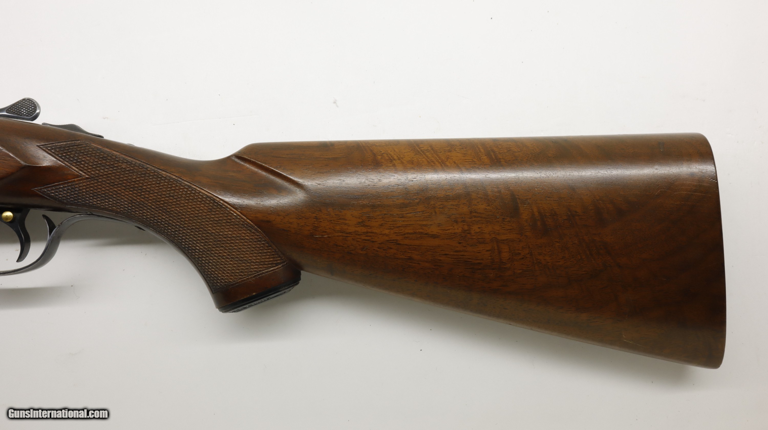 Description: Winchester Model 21, 12ga, 26" Barrels. English stock, factroy chekered butt.LOP is 14". SN is 139xx and all numbers do match. Chokes are marked WS1 and WS2, measure .006 and .009. 1 5/8" DAC, 2 1/2" DAH, no cast. 7 pounds, even. Clean gun! factory finish on both wood and metal, factory checkered butt. Perfect bores. Not been shot much at all! We will trade for silver and gold. We accept personal check, any certified funds, Ven-mo or Z-elle. We can also take your credit card, +3%. Email me if you would like these pictures sent to you, they will come through bigger and better than on the listing page here. We do offer Layaway. Our standard terms are 25% down, 90 days. Initial deposit is not refundable. Email me with any questions. Please check your local laws to confirm it is legal to own in your state! Buyer pays $60 shipping and insurance in a brand new PLANO hard case to your FFL in the lower 48. AK, HI or PR is extra. I will ship to California, as long as it is legal, NO PROBLEM! All my guns come with a non-firing, 3 day unconditional return privilege, from the day UPS delivers to your dealer. Buyer pays shipping both ways if the gun comes back. Please make sure to make it to your FFL to inspect within the 3 days. I am a licensed FFL, and will include a copy of my FFL with the gun for your dealer’s records. I will ship to a C&R if the gun is eligible. I will ship to California, but you need to confirm the gun is legal where you are, California or other. WE BUY AND CONSIGN GUNS AND GUN COLLECTIONS! We will travel to pick up collections! I am always looking for good clean, old original Winchesters to buy, consign, or trade, especially Pre '64's model 70's and model 54's. WE ALSO TRADE FOR CLASSIC CARS AND TRUCKS! We also trade for gold and silver. SOLD Shotgun Gauge: 12 Gauge Manufacturer: Winchester Model: 21 Barrel Length: 26 Condition: Used |