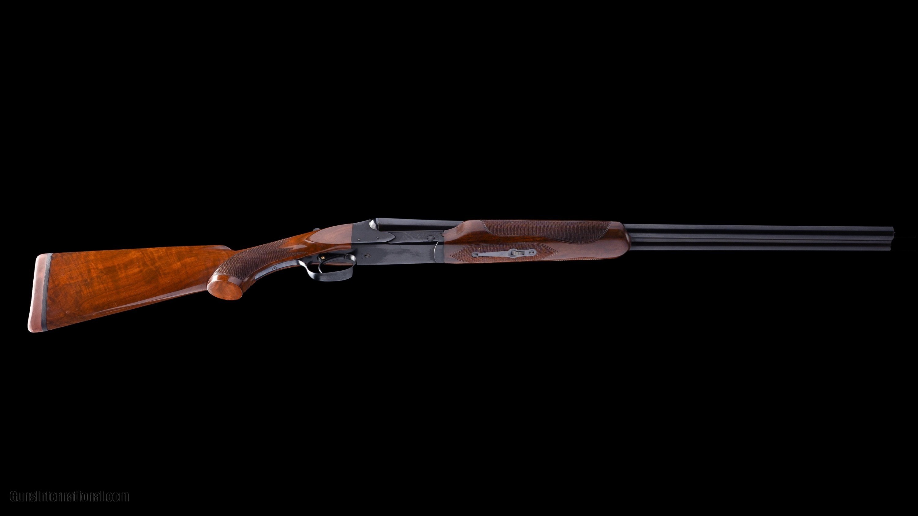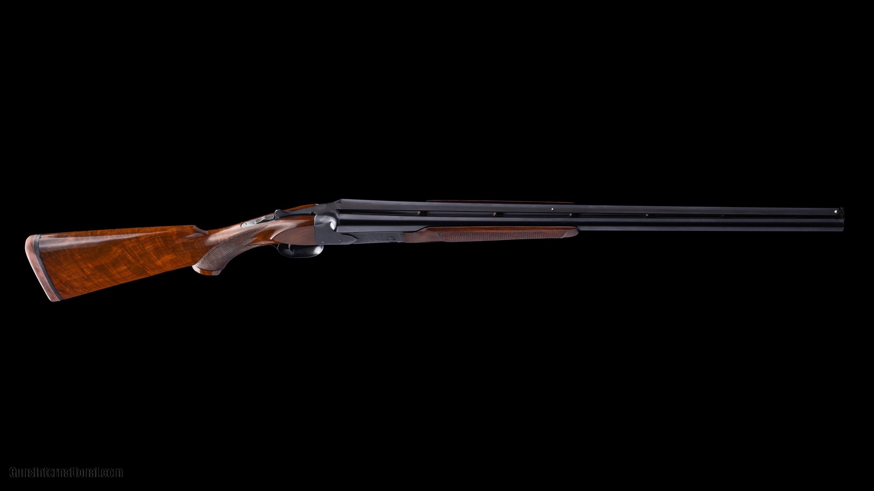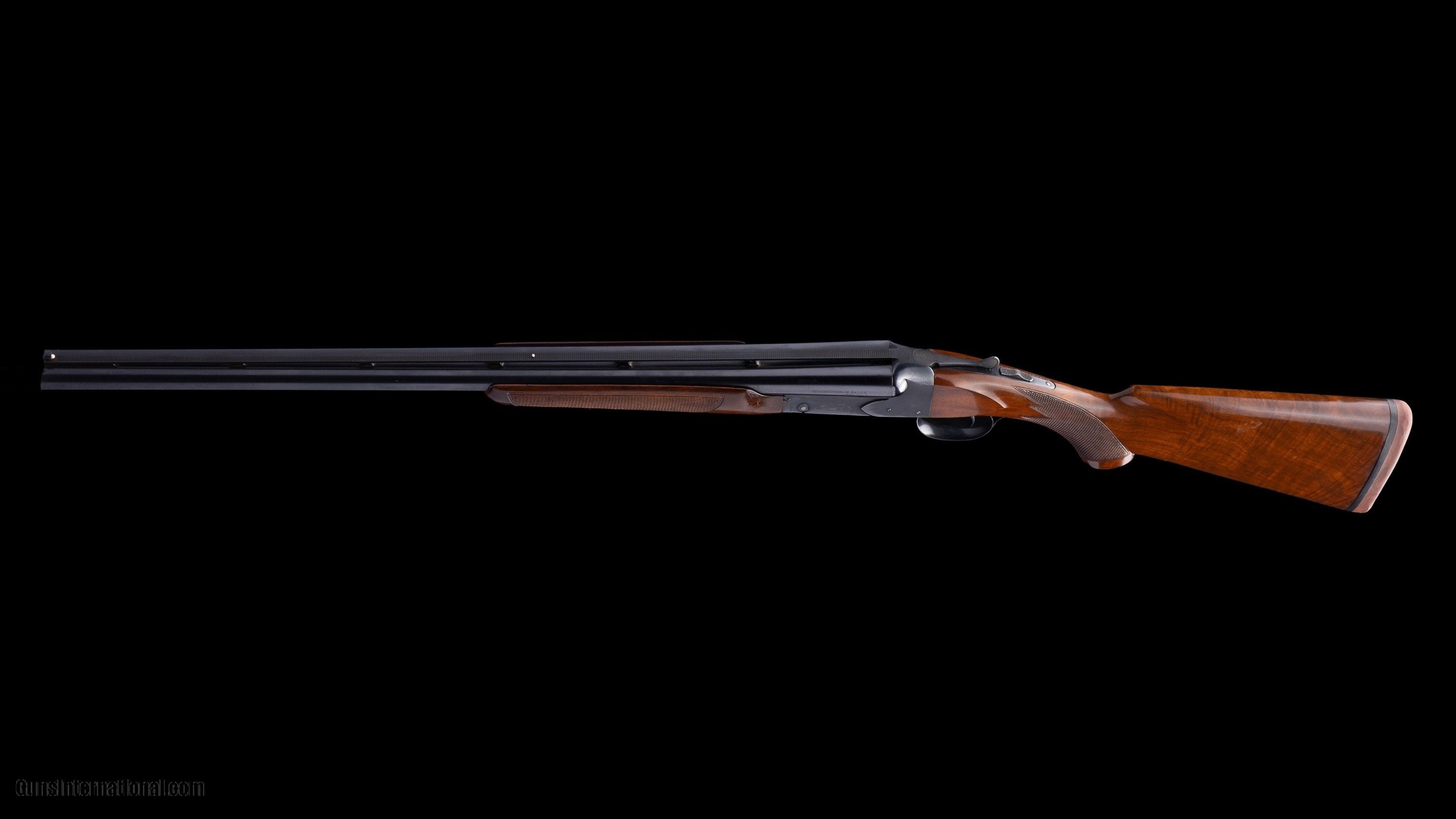 Description: Offered for sale is a genuine Winchester Model 21 **SKEET GRADE** in 16 gauge—an exceptionally scarce and highly desirable factory configuration. This shotgun is correctly factory marked “SKEET” on the underside of the receiver, confirming its elevated grade and superior finishing compared to standard Model 21 production. This example features factory 26-inch barrels, choked Improved Cylinder and Modified, with the rare and desirable factory **ventilated rib**, complete with mid-bead and white front bead. The gun retains its **original Winchester recoil pad**, **pistol grip stock with Winchester grip cap**, and crisp original checkering. Wood quality is notably higher than standard grade, consistent with Skeet Grade guns, with strong figure and excellent finish throughout. Key specifications include: • Gauge: 16 Gauge • Chambers: 2 3/4" • Barrels: 26" • Chokes: IC / MOD (factory marked) • Rib: Factory Ventilated Rib with Mid-Bead • Trigger: Single Selective Trigger • Stock: Pistol Grip with Winchester Grip Cap • Recoil Pad: Original Winchester Pad • Length of Pull: 14" • Drop at Comb: 1 5/8" • Drop at Heel: 2 3/4" • Cast: 1/8" Cast Off • Weight: 7 lbs. 3 oz. • Serial Number: 13331 Condition is excellent and fully original, with clean bores, mechanically tight action, and no evidence of refinish. These 16 gauge Skeet Grades are among the rarest factory configurations Winchester ever produced in the Model 21 line, and they seldom appear on the market—especially in this condition with a vent rib and single selective trigger. A rare opportunity to acquire one of the most desirable Winchester Model 21 field and skeet configurations ever built. Shotgun Gauge: 16 Gauge Manufacturer: Winchester Model: Model 21 Serial Number: 13331 Barrel Length: 26 Condition: Excellent Metal Condition: Excellent Wood Condition: Excellent Bore Condition: Excellent Barrel Type: SxS Triggers: Single Selective Trigger Stock Comb: 1 5/8 Stock Heel: 2 3/4 Stock Cast: 1/8" Cast Off Butt Pad: Orignal LOP: 14 Rib: Ventilated Weight: 7.3 oz Sights: mid-bead and white front bead Chokes: Choked Improved Cylinder and Modified Item Location: Michigan Grips: Pistol Grip with Winchester Grip Cap Price: $13,999.00 Buy Now Contact Seller |