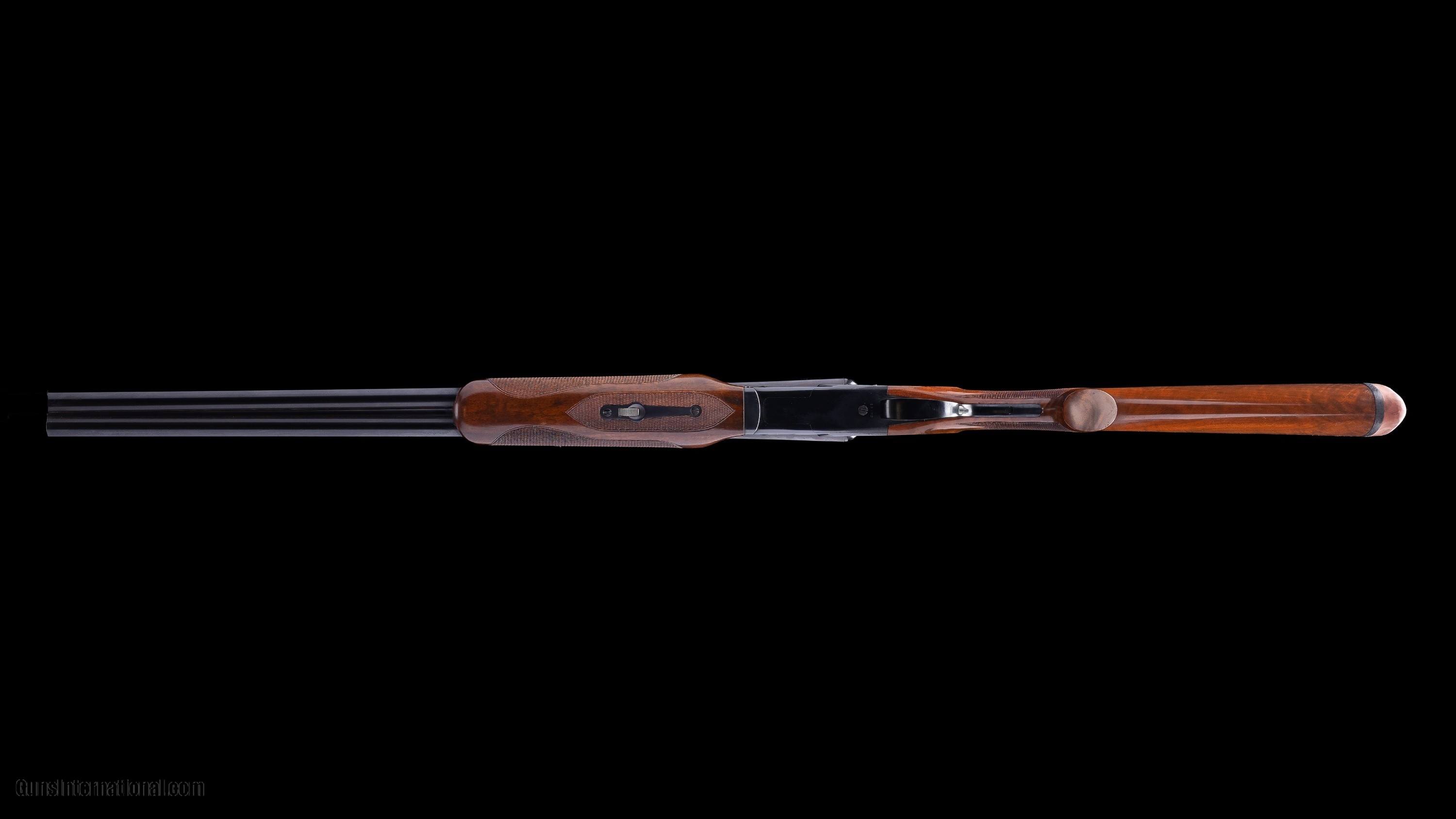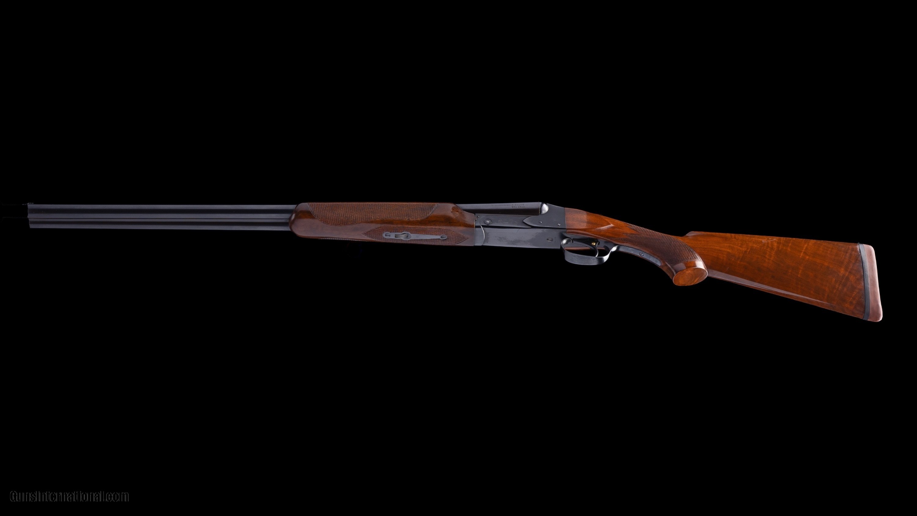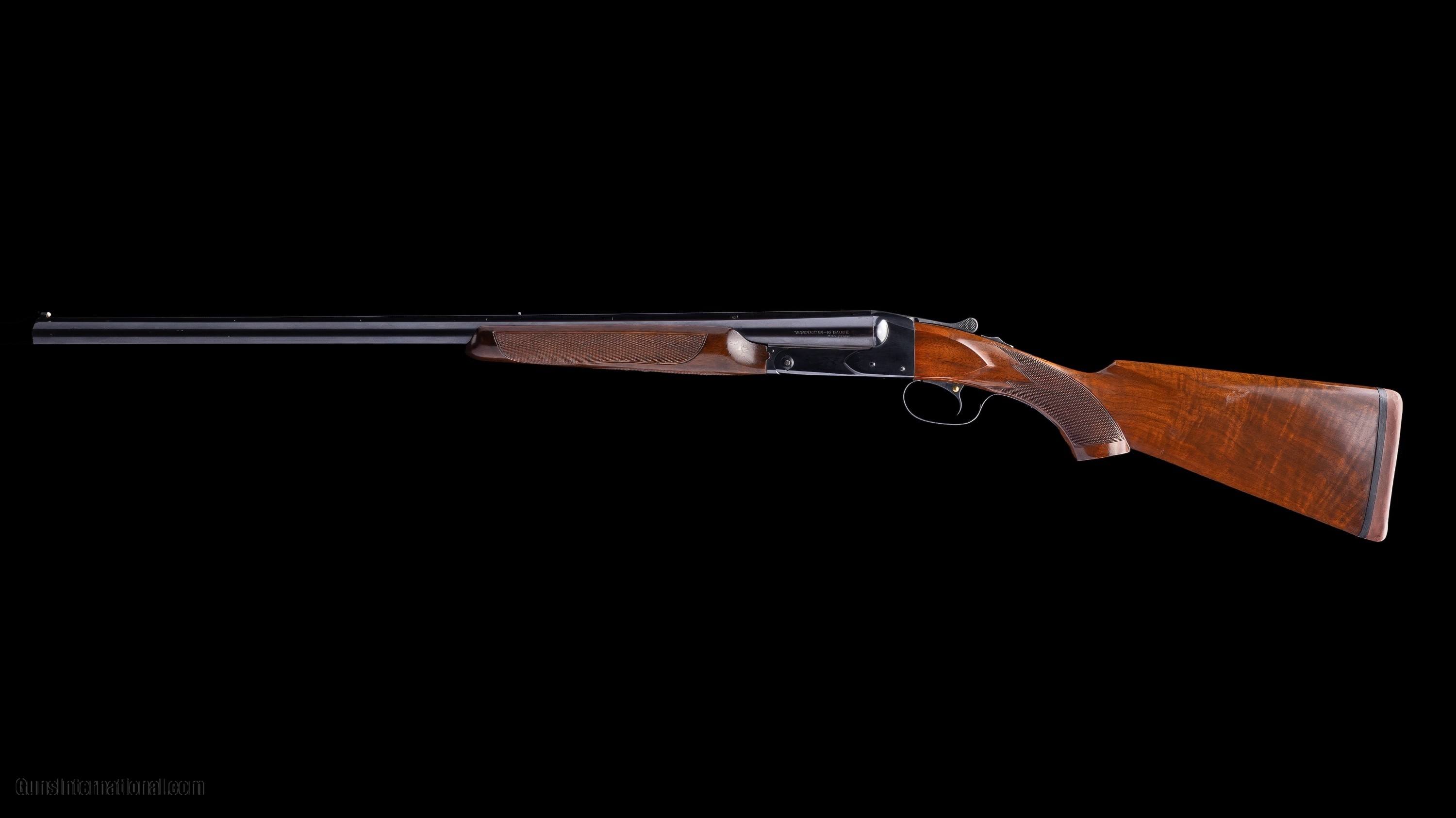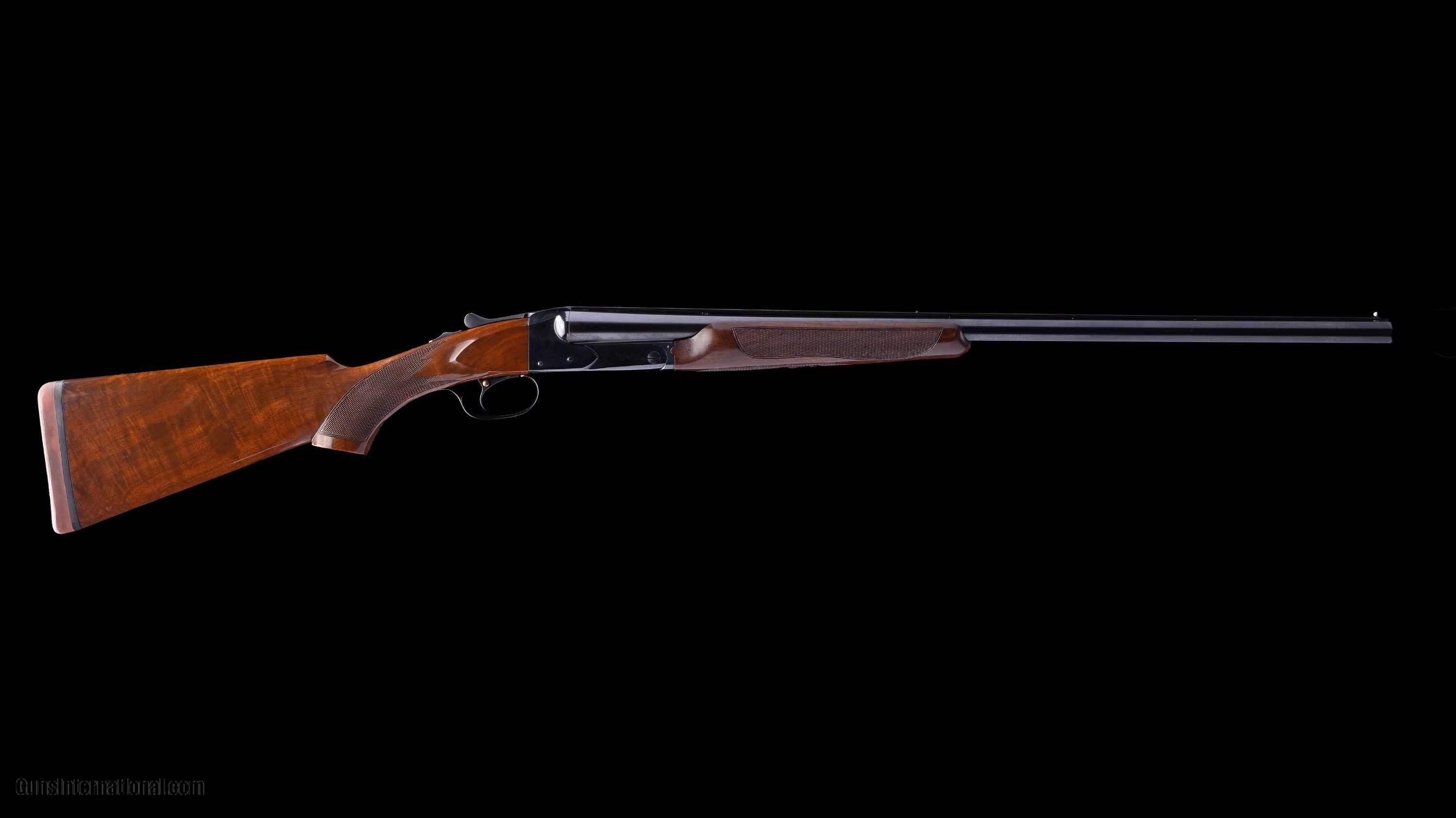 Description: Offered for sale is a genuine Winchester Model 21 **SKEET GRADE** in 16 gauge—an exceptionally scarce and highly desirable factory configuration. This shotgun is correctly factory marked “SKEET” on the underside of the receiver, confirming its elevated grade and superior finishing compared to standard Model 21 production. This example features factory 26-inch barrels, choked Improved Cylinder and Modified, with the rare and desirable factory **ventilated rib**, complete with mid-bead and white front bead. The gun retains its **original Winchester recoil pad**, **pistol grip stock with Winchester grip cap**, and crisp original checkering. Wood quality is notably higher than standard grade, consistent with Skeet Grade guns, with strong figure and excellent finish throughout. Key specifications include: • Gauge: 16 Gauge • Chambers: 2 3/4" • Barrels: 26" • Chokes: IC / MOD (factory marked) • Rib: Factory Ventilated Rib with Mid-Bead • Trigger: Single Selective Trigger • Stock: Pistol Grip with Winchester Grip Cap • Recoil Pad: Original Winchester Pad • Length of Pull: 14" • Drop at Comb: 1 5/8" • Drop at Heel: 2 3/4" • Cast: 1/8" Cast Off • Weight: 7 lbs. 3 oz. • Serial Number: 13331 Condition is excellent and fully original, with clean bores, mechanically tight action, and no evidence of refinish. These 16 gauge Skeet Grades are among the rarest factory configurations Winchester ever produced in the Model 21 line, and they seldom appear on the market—especially in this condition with a vent rib and single selective trigger. A rare opportunity to acquire one of the most desirable Winchester Model 21 field and skeet configurations ever built. Shotgun Gauge: 16 Gauge Manufacturer: Winchester Model: Model 21 Serial Number: 13331 Barrel Length: 26 Condition: Excellent Metal Condition: Excellent Wood Condition: Excellent Bore Condition: Excellent Barrel Type: SxS Triggers: Single Selective Trigger Stock Comb: 1 5/8 Stock Heel: 2 3/4 Stock Cast: 1/8" Cast Off Butt Pad: Orignal LOP: 14 Rib: Ventilated Weight: 7.3 oz Sights: mid-bead and white front bead Chokes: Choked Improved Cylinder and Modified Item Location: Michigan Grips: Pistol Grip with Winchester Grip Cap Price: $13,999.00 Buy Now Contact Seller |