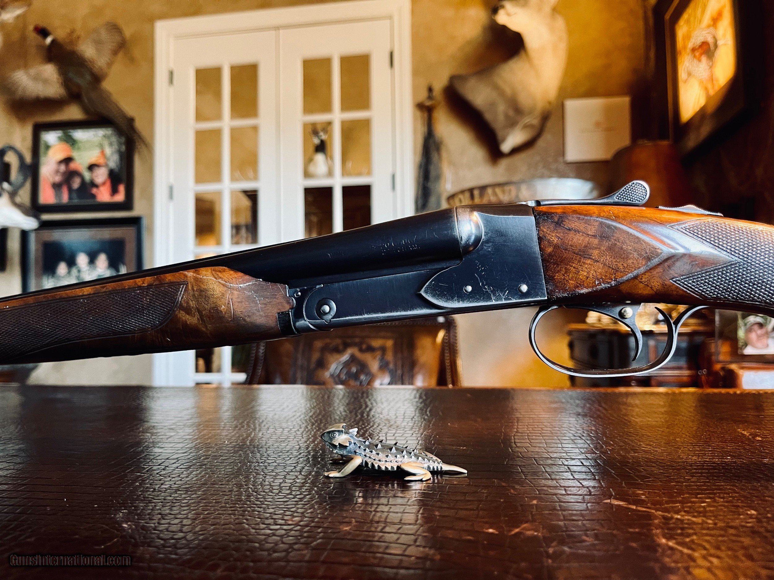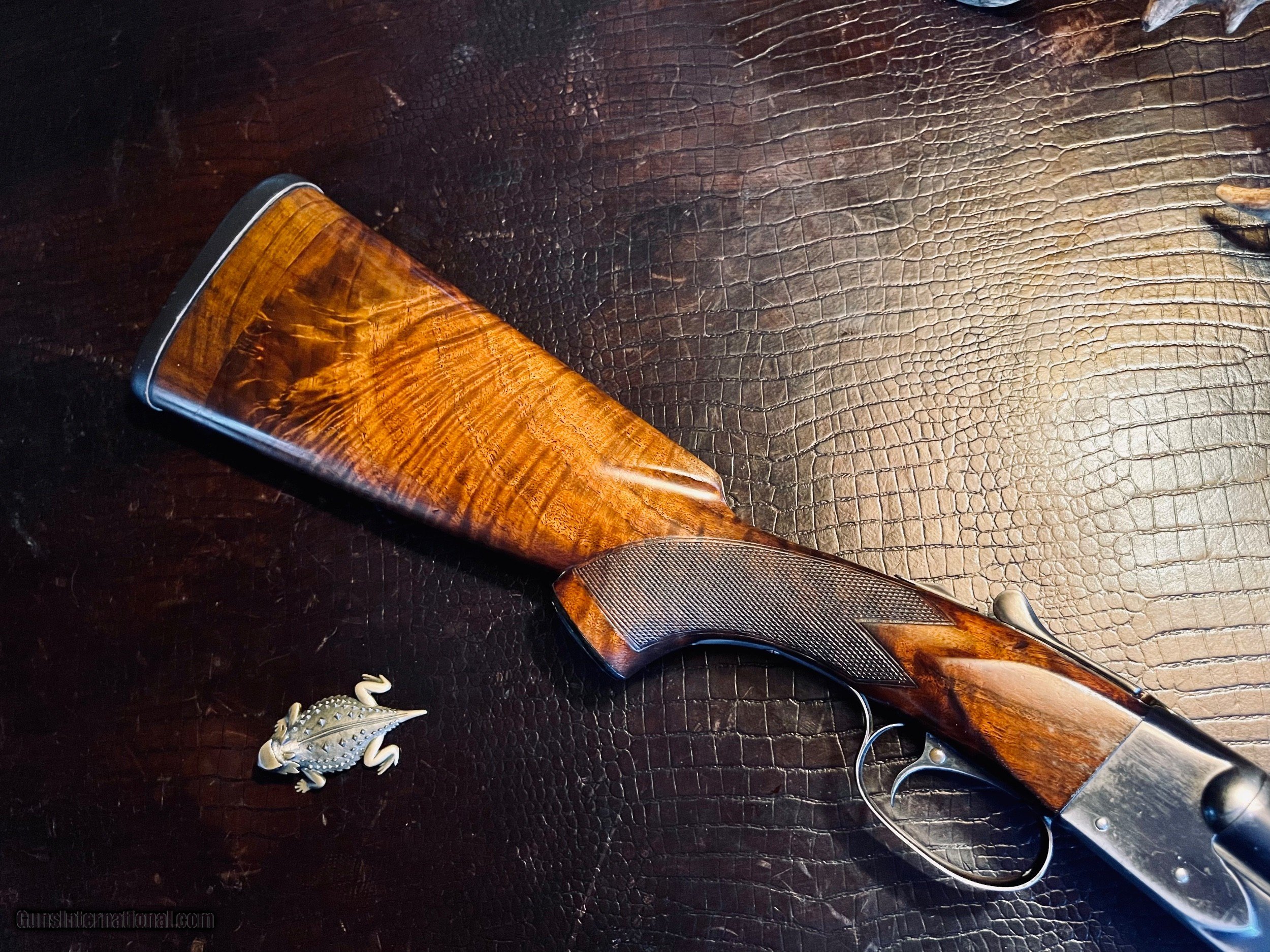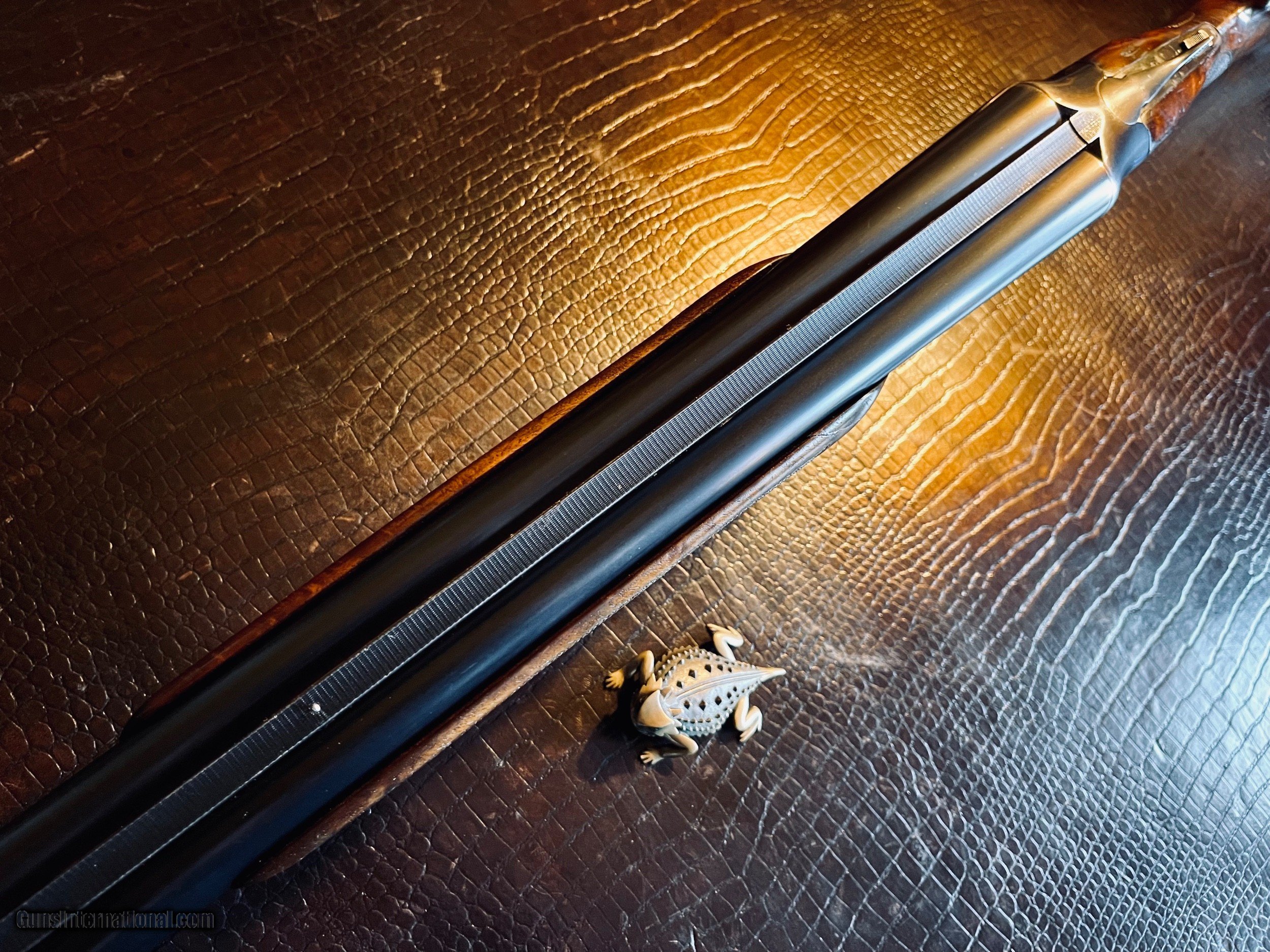 SOLD Shotgun Gauge: 20 Gauge Manufacturer: Winchester Model: Model 21 Skeet Grade Serial Number: 15024 Barrel Length: 28” Chambers: 2 3/4” Ejectors: Auto Timed Crisp Condition: Experienced in the field Metal Condition: Experienced - ses photos Wood Condition: Experienced - see photos Bore Condition: Great Triggers: Single Stock: Pistol Grip Stock Comb: 1 9/16” Stock Heel: 2 3/8” Stock Cast: Neutral Fore End: Kidney Beavertail Butt Pad: Leather Custom LOP: 14” Rib: Hand Matted Rib Weight: 6 lbs 3 ozs Manufacture Date: Mid 1940’s Choke Left: WS2 Choke Right: WS1 |
