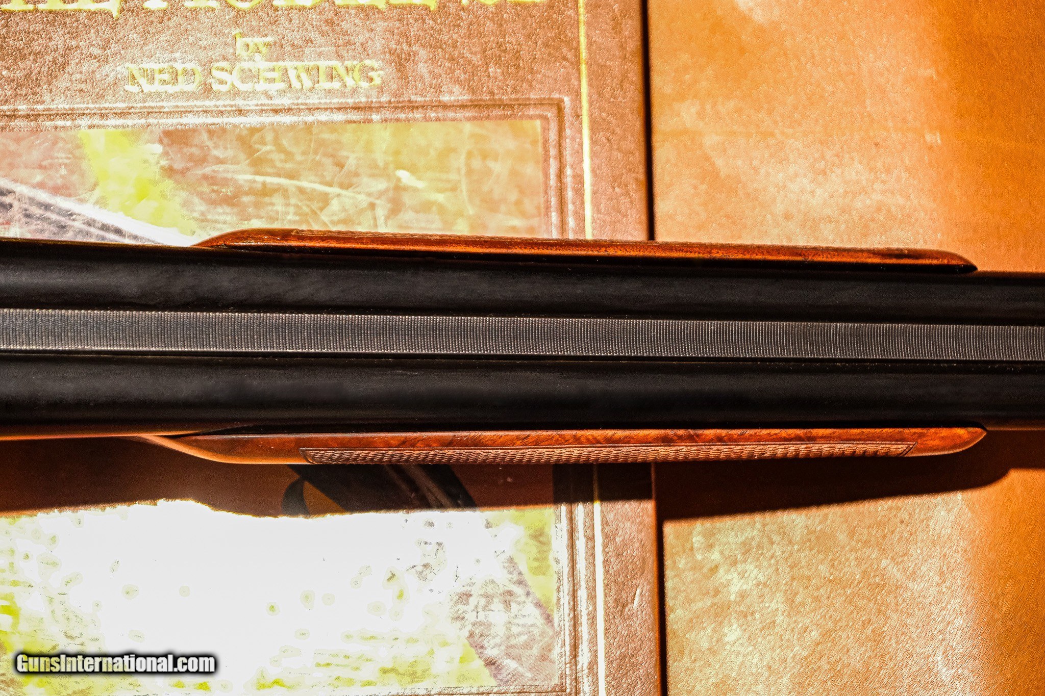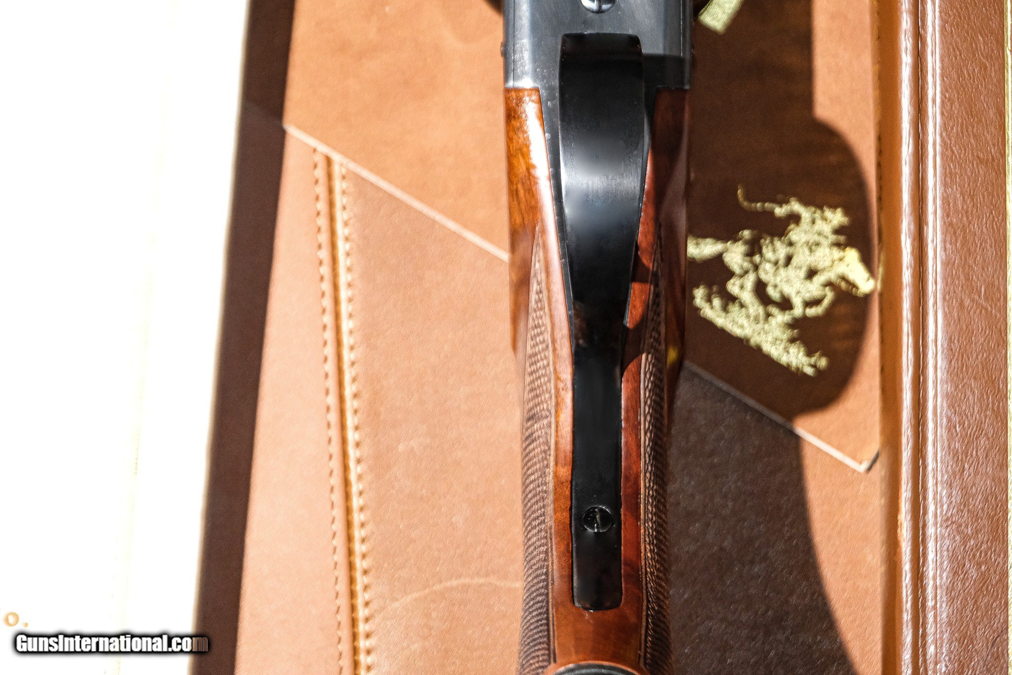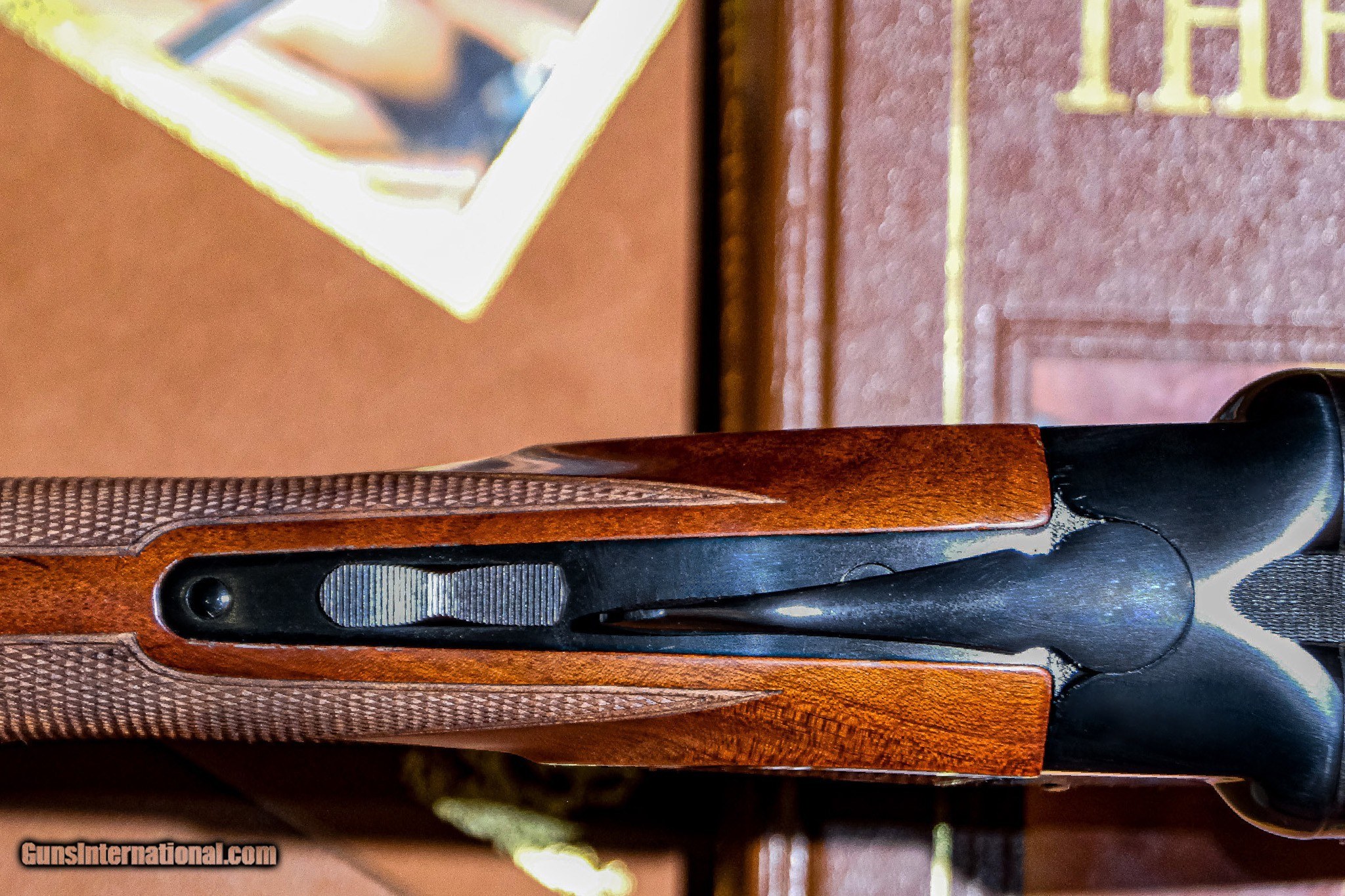 Description: Winchester - Model 21, SxS, 16ga. 26" Barrels Choked IC/M. 2 ¾” chambers, 1940s gun, kidney style beavertail forend, matted rib, capped pistol grip. Absolutely perfect bluing, checkering, and pins. Three-point checkering with deluxe checkered side panels. This is an outstanding Model 21 and one of the nicest 16-gauges we have ever had. Warrantied for life to the original owner courtesy of Connecticut Shotgun. Inv: 89948 6 lbs. 13 oz. 14 3/8" x 1 ½" x 2 ½" $8,100.00 CT Shotgun/Galazan buys sells and trades the world’s largest inventory on Model 21 shotguns. we are experts in all phases of buying, selling, and repairing as well as restoration of these very complex guns we have handled more Model 21 in all regards than all other companies put together. we have bought sold and manufactured most of the Grand Royal and Grand American grade guns and we understand them intimately. In 1994, Galazan/CT Shotgun purchased the Winchester Custom Shop from U.S. Repeating Arms Company and at that time designated the sole manufacturer and authorized repair for the Model 21, we purchased all of the inventory machining tooling and highly regarded trade secrets in regards to manufacturing and repairing maintaining these intricate shotguns. CT Shotgun/Galazan continues to perform the only authorized factory service on all these fine guns if you are interested in purchasing repairing or altering a Model 21 we should be your sole source when it comes to a Model 21 every gun we sell is serviced and inspected, comes with our lifetime warranty. CT/Galazan also has all assorted accessories, original style cases and recoil pads. WHY BUY A MODEL 21? 1. No one knows the gun better than us. 2. We are the only authorized repair facility for Model 21s. 3. We build the new Winchester Model 21. 4. We build the CSMC Model 21. 5. Every gun receives a safety inspection before sold to a customer. 6. Most guns are detailed, cleaned & lubricated and any parts charged to make them as factory new. 7. Fair honesty, reputable dealing for over 50 years. 8. Very competitive pricing. If you compare our guns to any other gun on the market, you will find in most instance that our guns are the best value. The best are brought up to factory specs which, in some cases, can be more than the gun. 9. The largest collection of Model 21s in the world. 10. Why any Model 21 SxS you buy from us; we offer a lifetime mechanical warranty. The largest, most diverse, high-grade shotgun and firearms inventory in history. There is no one even close and a service department to back up everything we sell with our unparalleled warranty to support our customers exclusively. If someone tells you they have a larger inventory, just look for yourself. Price: $8,100.00 Contact Seller |