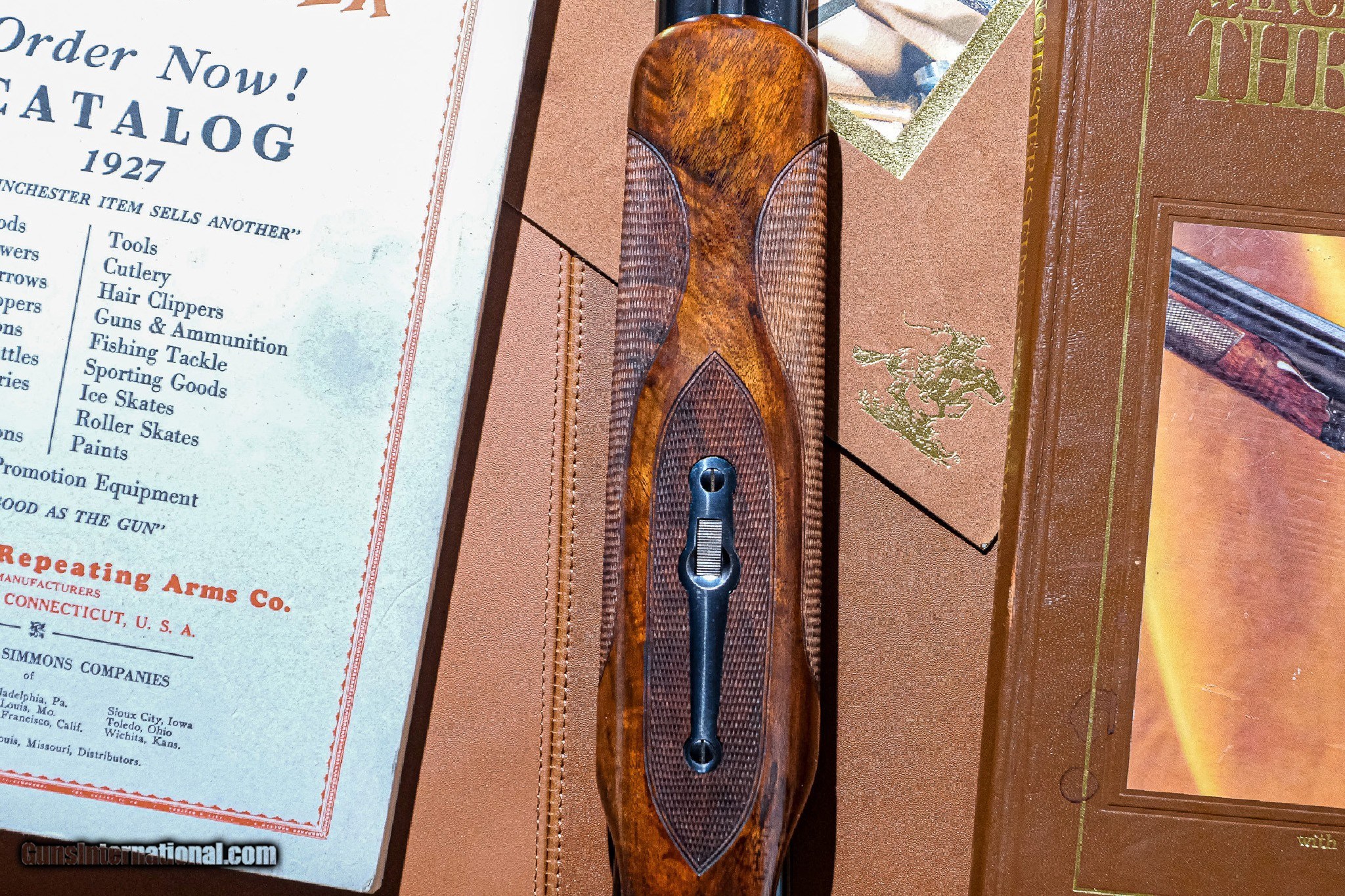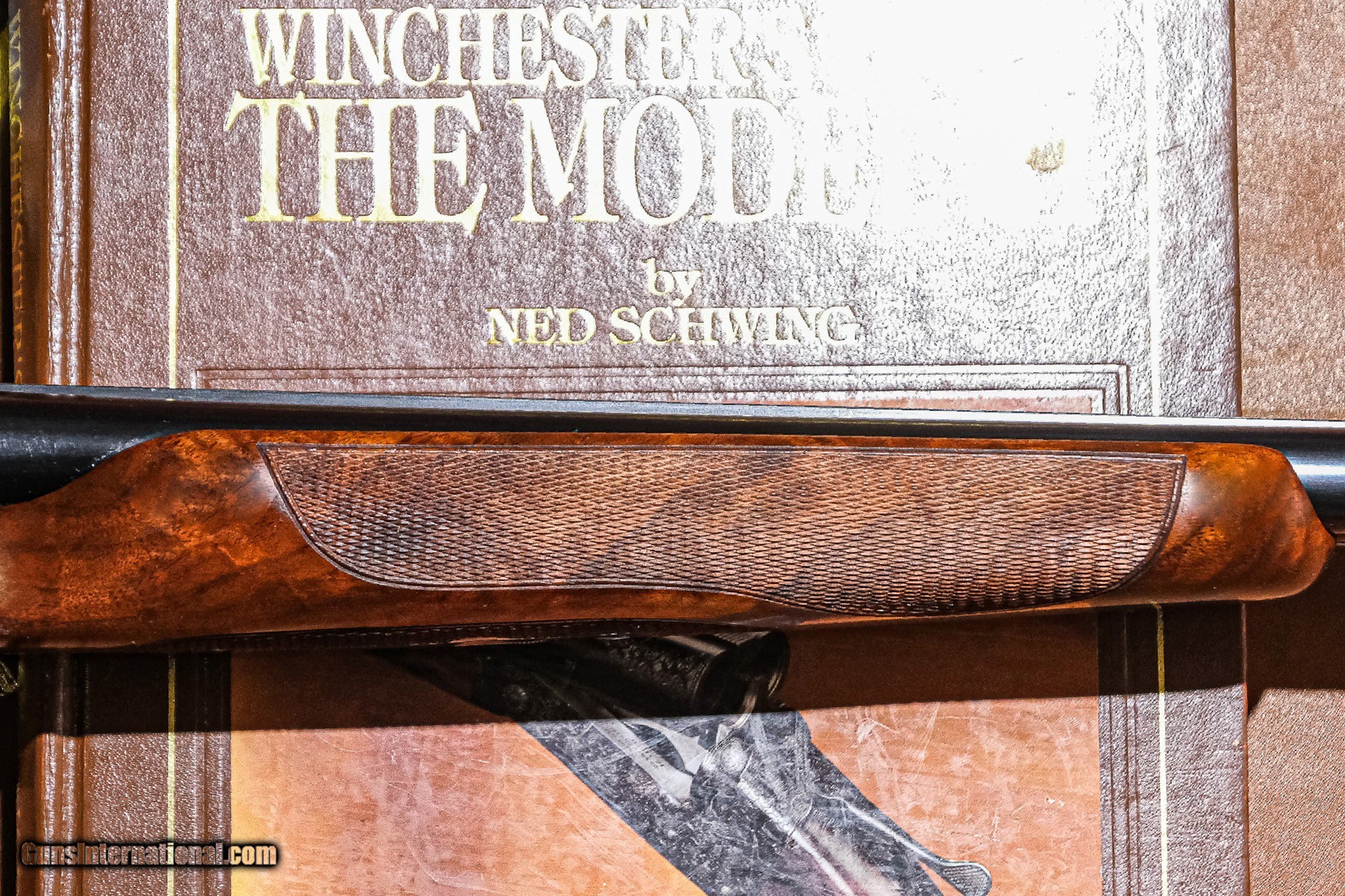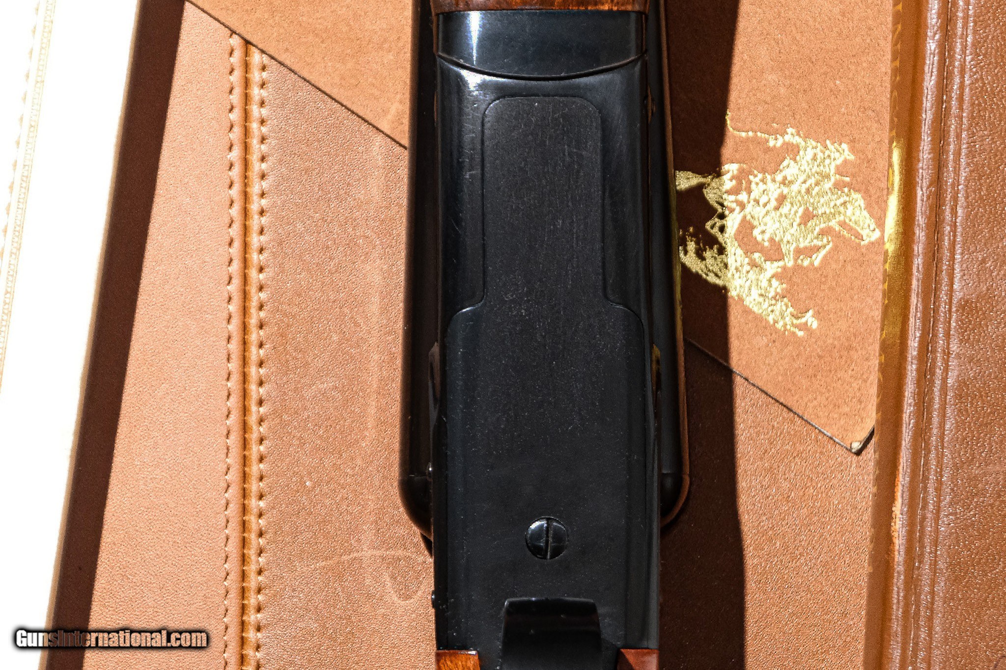Description: Winchester - Model 21, SxS, 16ga. 26" Barrels Choked IC/M. 2 ¾” chambers, 1940s gun, kidney style beavertail forend, matted rib, capped pistol grip. Absolutely perfect bluing, checkering, and pins. Three-point checkering with deluxe checkered side panels. This is an outstanding Model 21 and one of the nicest 16-gauges we have ever had. Warrantied for life to the original owner courtesy of Connecticut Shotgun. Inv: 89948 6 lbs. 13 oz. 14 3/8" x 1 ½" x 2 ½" $8,100.00 CT Shotgun/Galazan buys sells and trades the world’s largest inventory on Model 21 shotguns. we are experts in all phases of buying, selling, and repairing as well as restoration of these very complex guns we have handled more Model 21 in all regards than all other companies put together. we have bought sold and manufactured most of the Grand Royal and Grand American grade guns and we understand them intimately. In 1994, Galazan/CT Shotgun purchased the Winchester Custom Shop from U.S. Repeating Arms Company and at that time designated the sole manufacturer and authorized repair for the Model 21, we purchased all of the inventory machining tooling and highly regarded trade secrets in regards to manufacturing and repairing maintaining these intricate shotguns. CT Shotgun/Galazan continues to perform the only authorized factory service on all these fine guns if you are interested in purchasing repairing or altering a Model 21 we should be your sole source when it comes to a Model 21 every gun we sell is serviced and inspected, comes with our lifetime warranty. CT/Galazan also has all assorted accessories, original style cases and recoil pads. WHY BUY A MODEL 21? 1. No one knows the gun better than us. 2. We are the only authorized repair facility for Model 21s. 3. We build the new Winchester Model 21. 4. We build the CSMC Model 21. 5. Every gun receives a safety inspection before sold to a customer. 6. Most guns are detailed, cleaned & lubricated and any parts charged to make them as factory new. 7. Fair honesty, reputable dealing for over 50 years. 8. Very competitive pricing. If you compare our guns to any other gun on the market, you will find in most instance that our guns are the best value. The best are brought up to factory specs which, in some cases, can be more than the gun. 9. The largest collection of Model 21s in the world. 10. Why any Model 21 SxS you buy from us; we offer a lifetime mechanical warranty. The largest, most diverse, high-grade shotgun and firearms inventory in history. There is no one even close and a service department to back up everything we sell with our unparalleled warranty to support our customers exclusively. If someone tells you they have a larger inventory, just look for yourself. Price: $8,100.00 Contact Seller |