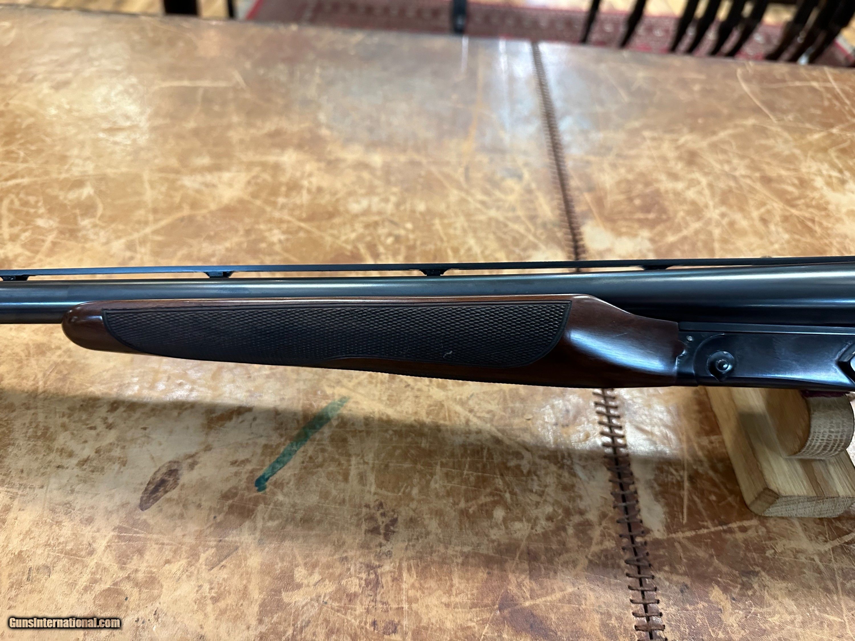 Description: Winchester - Model 21, SxS, 20ga. 28" Barrels Choked M/F. Vent rib 28” barrels choked M/F. Kidney style beavertail, pistol grip, Winchester pad, double trigger, automatic ejector, 2 ¾” chambers, automatic safety. 99% blue, wood finish, and checkering as close to perfect as you can buy. Fiddleback wood with a slight feather. Virtually new gun comes with a lifetime warranty. Just an overall rare combination. Inv: 81734 7 lbs. 10 oz. 14 ½" x 1 5/8" x 2 ½" $8,995.00 CT Shotgun/Galazan buys sells and trades the world’s largest inventory on Model 21 shotguns. We are experts in all phases of buying, selling, and repairing as well as restoration of these very complex guns we have handled more Model 21 in all regards than all other companies put together. we have bought sold and manufactured most of the Grand Royal and Grand American grade guns and we understand them intimately. In 1994, Galazan/CT Shotgun purchased the Winchester Custom Shop from U.S. Repeating Arms Company and at that time designated the sole manufacturer and authorized repair for the Model 21, we purchased all of the inventory machining tooling and highly regarded trade secrets in regards to manufacturing and repairing maintaining these intricate shotguns. CT Shotgun/Galazan continues to perform the only authorized factory service on all these fine guns if you are interested in purchasing repairing or altering a Model 21 we should be your sole source when it comes to a Model 21 every gun we sell is serviced and inspected, comes with our lifetime warranty. CT/Galazan also has all assorted accessories, original style cases and recoil pads. WHY BUY A MODEL 21? 1. No one knows the gun better than us. 2. We are the only authorized repair facility for Model 21s. 3. We build the new Winchester Model 21. 4. We build the CSMC Model 21. 5. Every gun receives a safety inspection before sold to a customer. 6. Most guns are detailed, cleaned & lubricated and any parts charged to make them as factory new. 7. Fair honesty, reputable dealing for over 20 years. 8. Very competitive pricing. If you compare our guns to any other gun on the market, you will find in most instance that our guns are the best value. The best are brought up to factory specs which, in some cases, can be more than the gun. 9. The largest collection of Model 21s in the world. 10. With any Model 21 SxS you buy from us; we offer a lifetime mechanical warranty. SOLD Shotgun Gauge: 20 Gauge |