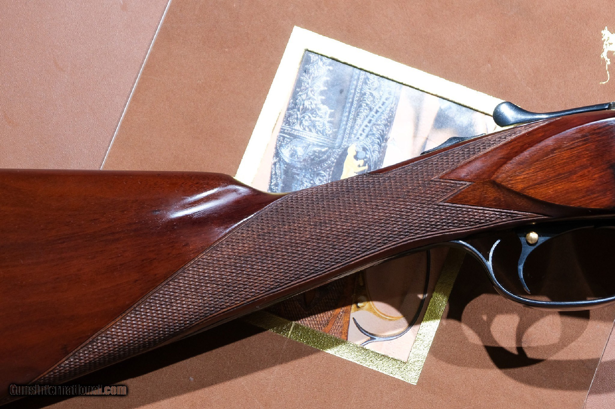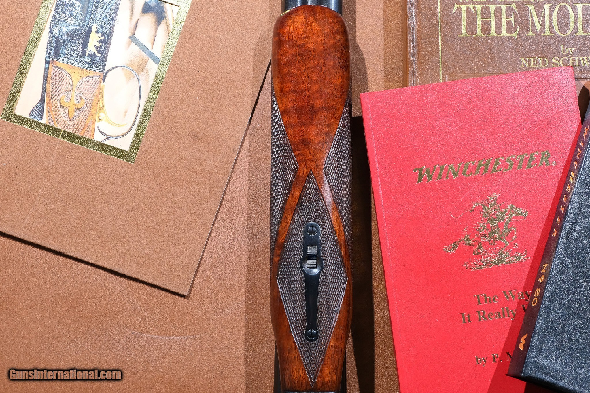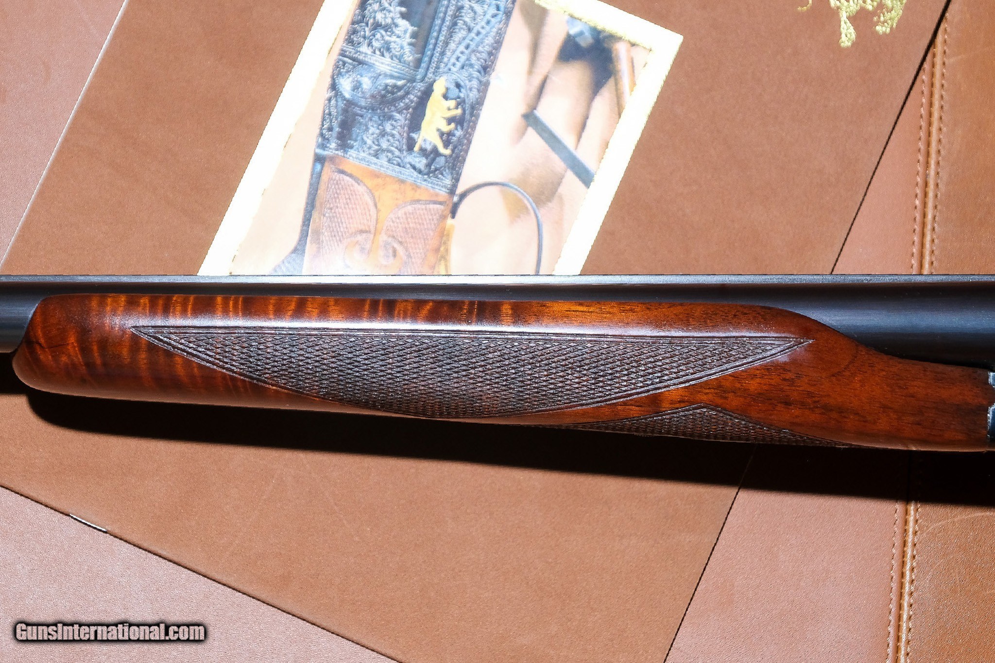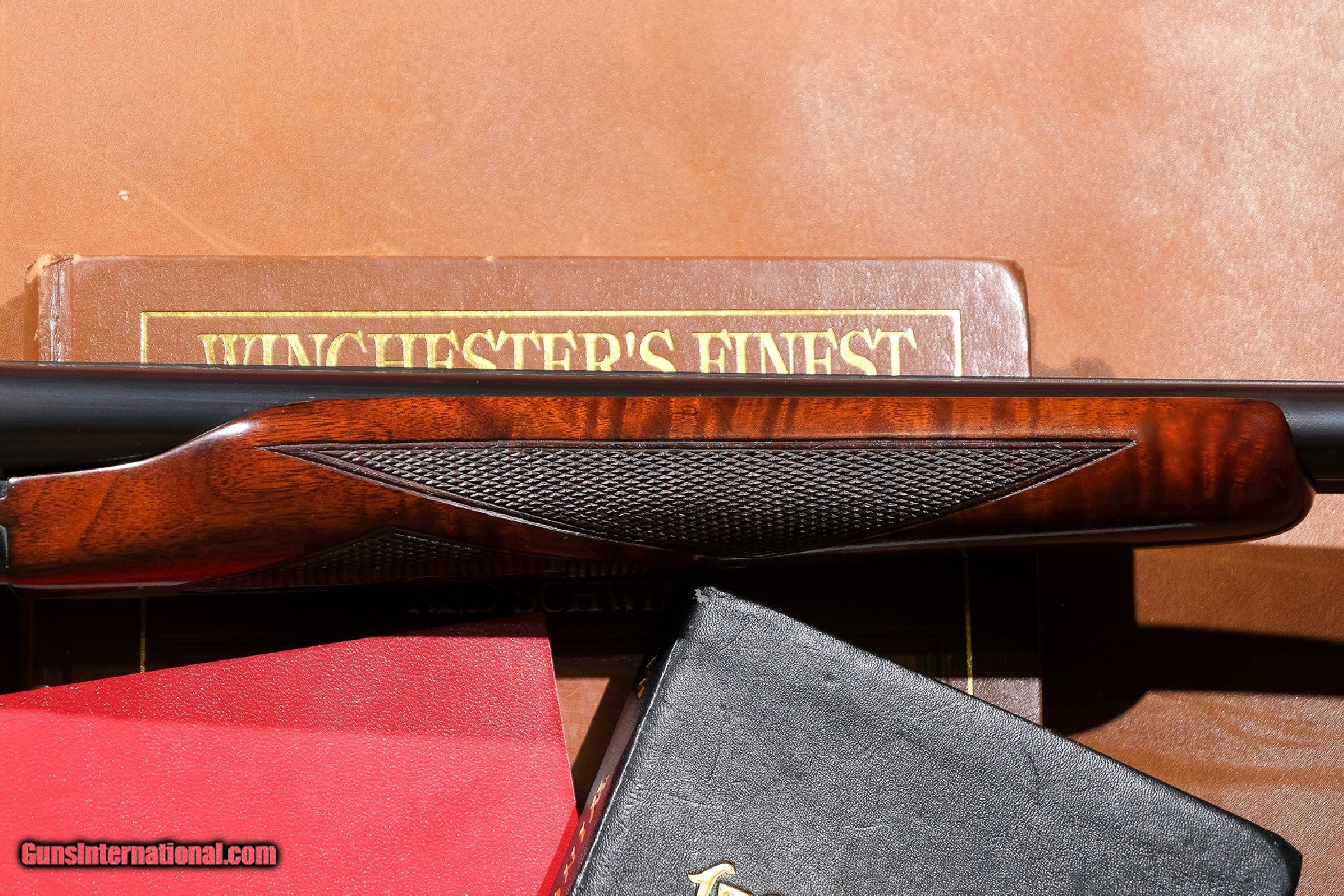 Description: Winchester - Model 21, SxS, 3" Magnum Duck Grade, 12ga. 30" Barrels Choked F/F. 3” magnum duck, factory marked duck, straight grip, Monte Carlo stock, three-point checkering, single selective trigger, automatic ejector, diamond style beavertail forend. 100% blue, wood finish, and checkering. This is a very unusual combination in a magnum gun. Gun is virtually as new. This is obviously a special-order gun with unique stock dimensions. Warrantied for life to the original owner courtesy of Connecticut Shotgun. Inv: 91475 7 lbs. 5 oz. 14 3/8" x 1 5/8" x 2" x 2 ½" (Monte Carlo Stock) $7,400.00 CT Shotgun/Galazan buys sells and trades the world’s largest inventory on Model 21 shotguns. we are experts in all phases of buying, selling, and repairing as well as restoration of these very complex guns we have handled more Model 21 in all regards than all other companies put together. we have bought sold and manufactured most of the Grand Royal and Grand American grade guns and we understand them intimately. In 1994, Galazan/CT Shotgun purchased the Winchester Custom Shop from U.S. Repeating Arms Company and at that time designated the sole manufacturer and authorized repair for the Model 21, we purchased all of the inventory machining tooling and highly regarded trade secrets in regards to manufacturing and repairing maintaining these intricate shotguns. CT Shotgun/Galazan continues to perform the only authorized factory service on all these fine guns if you are interested in purchasing repairing or altering a Model 21 we should be your sole source when it comes to a Model 21 every gun we sell is serviced and inspected, comes with our lifetime warranty. CT/Galazan also has all assorted accessories, original style cases and recoil pads. WHY BUY A MODEL 21? 1. No one knows the gun better than us. 2. We are the only authorized repair facility for Model 21s. 3. We build the new Winchester Model 21. 4. We build the CSMC Model 21. 5. Every gun receives a safety inspection before sold to a customer. 6. Most guns are detailed, cleaned & lubricated and any parts charged to make them as factory new. 7. Fair honesty, reputable dealing for over 50 years. 8. Very competitive pricing. If you compare our guns to any other gun on the market, you will find in most instance that our guns are the best value. The best are brought up to factory specs which, in some cases, can be more than the gun. 9. The largest collection of Model 21s in the world. 10. Why any Model 21 SxS you buy from us; we offer a lifetime mechanical warranty. The largest, most diverse, high-grade shotgun and firearms inventory in history. There is no one even close and a service department to back up everything we sell with our unparalleled warranty to support our customers exclusively. If someone tells you they have a larger inventory, just look for yourself. Price: $7,400.00 Contact Seller |