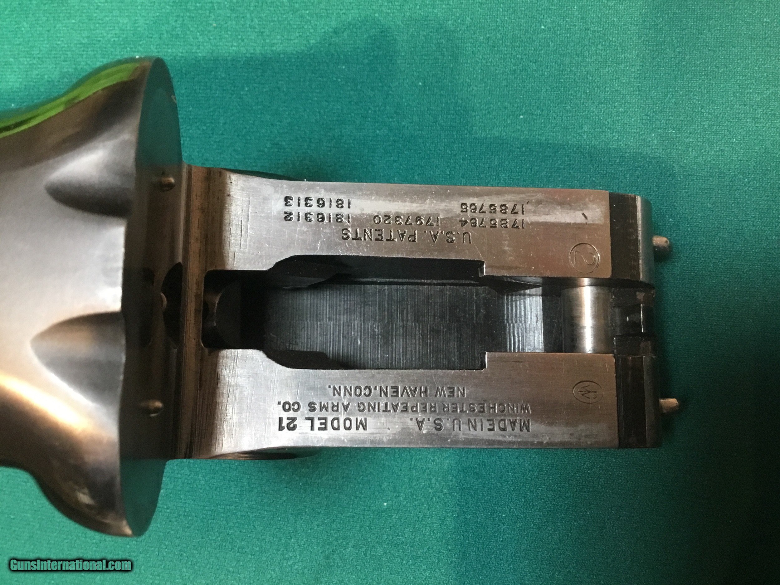 Description: WINCHESTER 21 S X S SHOTGUN 12GA WITH GALCO CASE, CUSTOM STOCK AND FACTORY LETTER. #14339 HISTORY OF THE WINCHESTER 21 SHOTGUN The Winchester Model 21 is a deluxe grade side by side (S x S) shotgun. The shotgun's initial production ran from 1931 through 1960 and yielded approximately 30,000 guns. Winchester Arms ceased the main production line of this shotgun in 1960 and the Model 21 was sourced to the Winchester Custom Shop until the gun's retirement in 1991. New Winchester Model 21 production continues under license to Connecticut Shotgun Manufacturing Company. The Winchester Model 21 action is a typical breach loader shotgun, commonly called a break or hinge action. Like all quality double guns, production is time-consuming due to the laborious process of joining the barrels to produce an identical convergence of shot. The Model 21 was Winchester's effort to make a quality side by side shotgun to rival those of high-end makers such as Parker and Fox. Financial troubles plagued the gun's development until the Western Cartridge Company purchased Winchester Repeating Arms in 1931. The Model 21 has a considerable collector following as it is regarded as almost a custom-made shotgun. ** Types Produced from 1931 to 1959 Model 21 grades at this time were chambered in 12, 16 and 20 gauge. A .410 bore was offered in Custom Grade only and is extremely rare, only exceeded by the rare (8 known) 28 gauge guns produced. Barrel lengths were offered from 26 inches to 32 inches. The undersides of the trigger plates were typically stamped with the name of the grade, as this one is, “Dr. John Littig." This Winchester 21 serial # 14339 12 gauge The replacement stock is high grade Walnut with a custom leather butt plate. This work would be $5500.00 if done today (January 2020). The work was done by *Paul D. Hillmer of Iowa. He and his wife are still are doing only customer work on shotguns (especially for completion shooters) even today. THE GALCO DELUXE CUSTOM LOCKING CASE A GALCO Deluxe Field bag costs $600, in today's market. This custom locking case with initials “RWL” and customer labeling inside (Winchester 21 with Company Logo etc.) would be more, much more to replace. Likely would cost $1000.00+. These cases are no longer made. The case includes the following: Small leather pouch with cleaning jags and brushes Two "snap caps" made out of ebony wood and brass Two-part cleaning rod made out of ebony wood and brass Two barrels, one for trap and one for skeet. This shotgun, a Winchester 21, has a factory letter and a custom “build invoice” from Winchester, that states the gun was made in 1946 and returned for more custom work ("Repair ") for Dr. John Littig M.D. in 1947. Note his name is engraved on the trigger guard. The shotgun has been used but shows very little wear. Later there was additional custom work done by Mr. Paul D. Hillmer (*see above). Look at photos for choke— 2 pair of barrels! Please look at all photos, call or e-mail any questions, this truly a beautiful American made shotgun! thanks for looking SOLD Curio/Relic: Yes Manufacturer: Winchester Model: Model 21 Shotgun Serial Number: 14339 Chambers: 2 Ejectors: Yes Condition: Excellent Metal Condition: Excellent Wood Condition: Excellent Bore Condition: Excellent Barrels: Two Barrel Type: Two pairs Action: Break Triggers: One Gauge Info: 12 Stock: Custom walnut Butt Pad: Leather pad Manufacture Date: 1946 Extras: Yes Case: Leather w/ locks Item Location: Colorado |