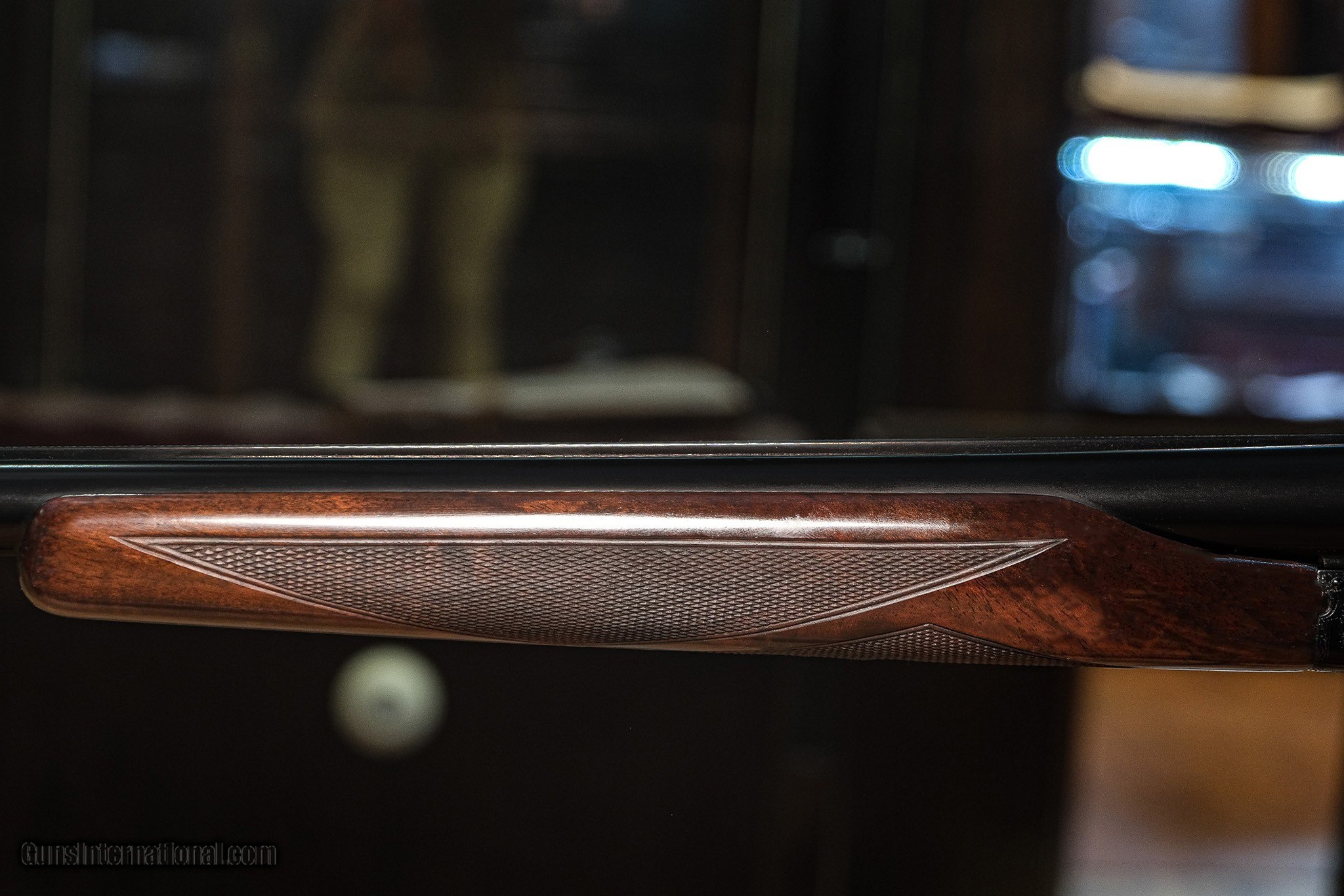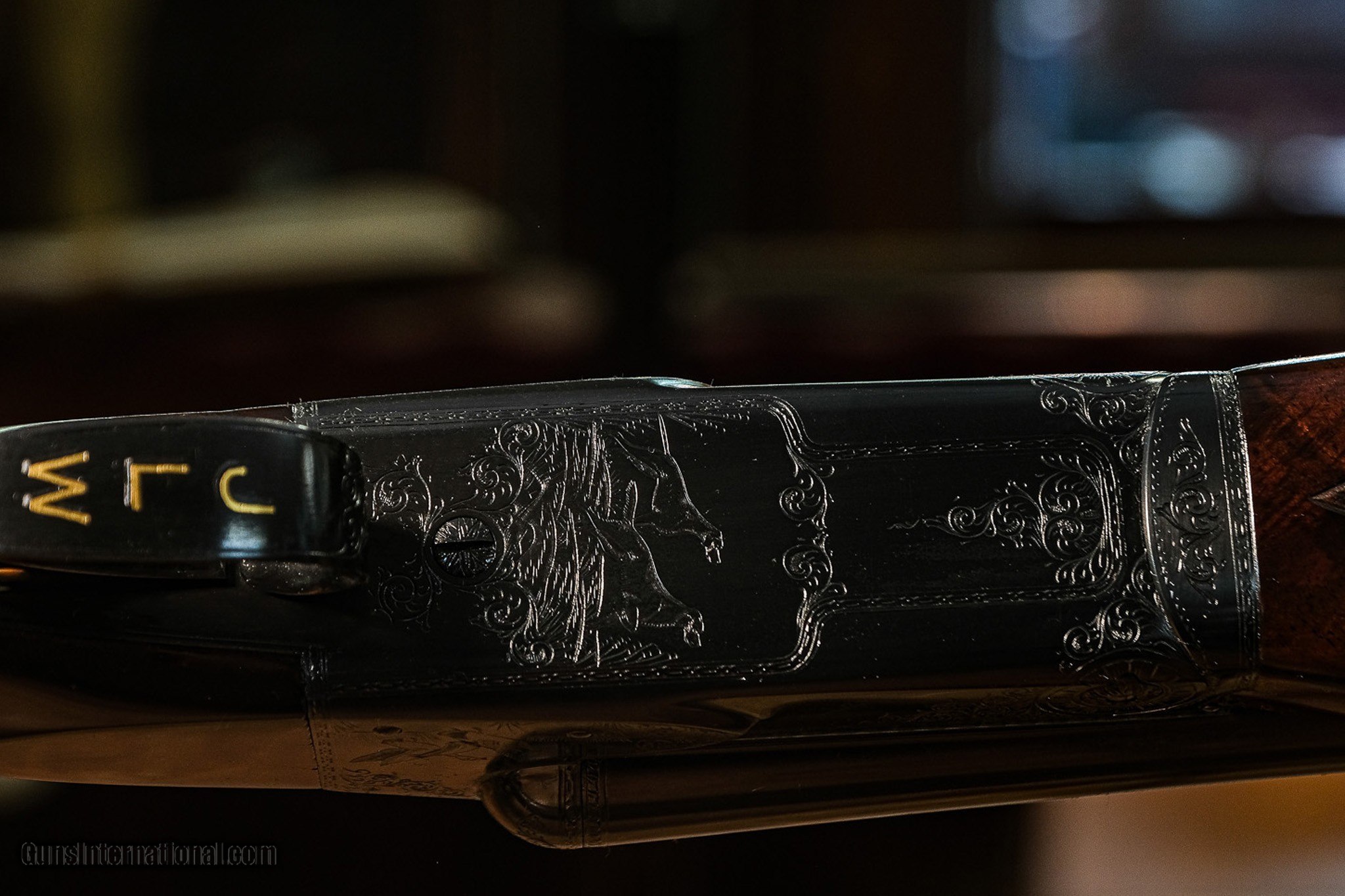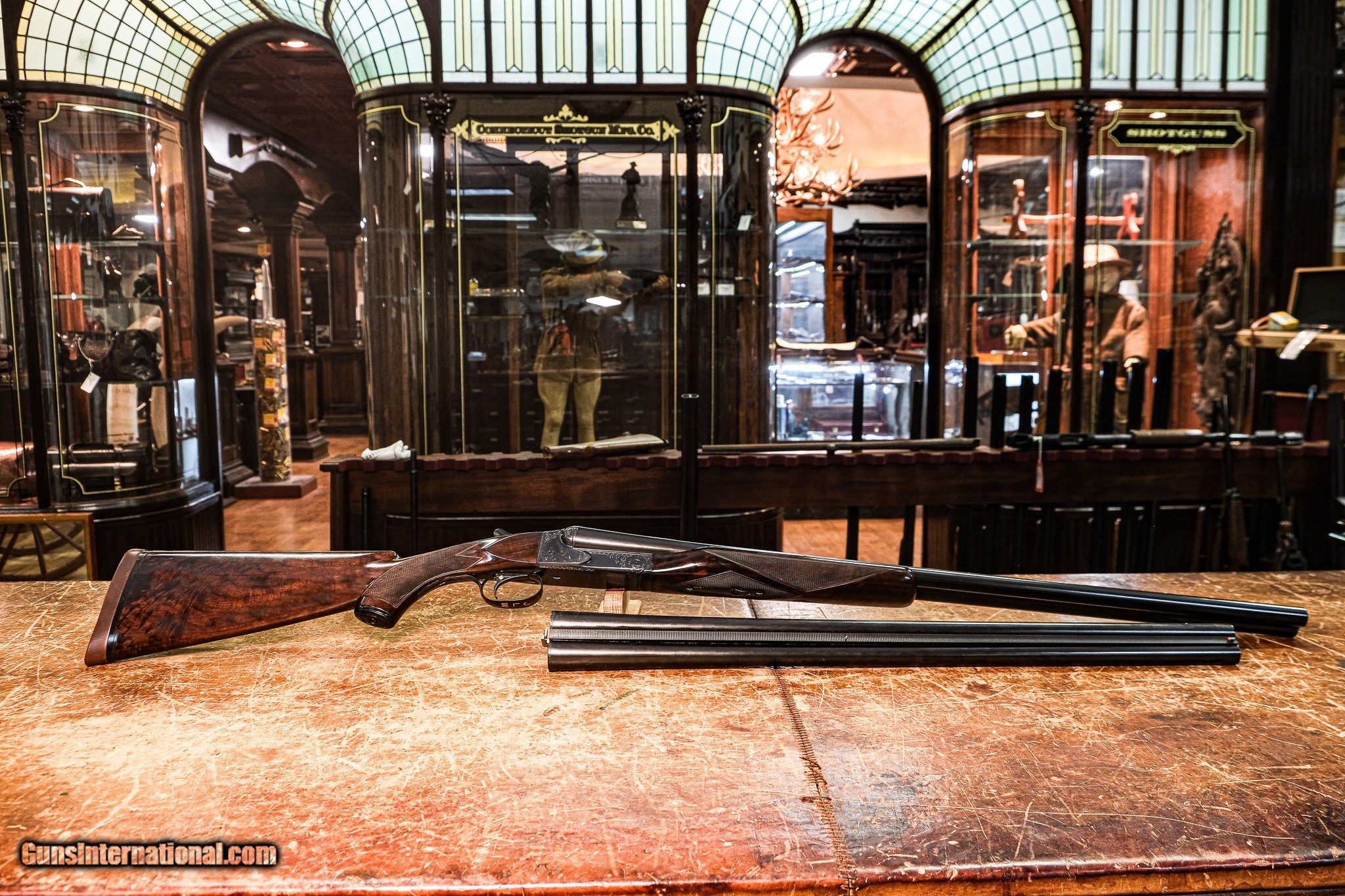 Description: Winchester - Model 21, SxS, Factory #4 Engraving, Cody Lettered, Two Barrel Set, 12ga. 30" F/F & 26" WS1/WS2. First set, 30” barrels, 3” magnum, choked F/F. Second set, 26” barrels, 2 ¾” chambers, choked WS1/WS2. Barrel flats, forend, and frame are engine turned. Made in 1954, Cody Letter states it was #4 engraved with JLW with gold inlay in trigger guard. 14 7/8”, Winchester recoil pad, matted rib, superb sharp #4 engraving, capped pistol grip, automatic safety, single trigger, ejector, everything on this gun is factory lettered. Shipped to Clayton, Missouri. Gun was returned to the factory, altered and adjusted in 1967, per the letter. Very unusual and rare gun. 99% wood finish, barrel blue, and checkering. One of the ultimate collectibles. Inv: 86063 7 lbs. 15 oz. 14 7/8” x 2” x 3 ¼" $14,995.00 CT Shotgun/Galazan buys sells and trades the world’s largest inventory on Model 21 shotguns. We are experts in all phases of buying, selling, and repairing as well as restoration of these very complex guns we have handled more Model 21 in all regards than all other companies put together. we have bought sold and manufactured most of the Grand Royal and Grand American grade guns and we understand them intimately. In 1994, Galazan/CT Shotgun purchased the Winchester Custom Shop from U.S. Repeating Arms Company and at that time designated the sole manufacturer and authorized repair for the Model 21, we purchased all of the inventory machining tooling and highly regarded trade secrets in regards to manufacturing and repairing maintaining these intricate shotguns. CT Shotgun/Galazan continues to perform the only authorized factory service on all these fine guns if you are interested in purchasing repairing or altering a Model 21 we should be your sole source when it comes to a Model 21 every gun we sell is serviced and inspected, comes with our lifetime warranty. CT/Galazan also has all assorted accessories, original style cases and recoil pads. WHY BUY A MODEL 21? 1. No one knows the gun better than us. 2. We are the only authorized repair facility for Model 21s. 3. We build the new Winchester Model 21. 4. We build the CSMC Model 21. 5. Every gun receives a safety inspection before sold to a customer. 6. Most guns are detailed, cleaned & lubricated and any parts charged to make them as factory new. 7. Fair honesty, reputable dealing for over 20 years. 8. Very competitive pricing. If you compare our guns to any other gun on the market, you will find in most instance that our guns are the best value. The best are brought up to factory specs which, in some cases, can be more than the gun. 9. The largest collection of Model 21s in the world. 10. With any Model 21 SxS you buy from us; we offer a lifetime mechanical warranty. SOLD |