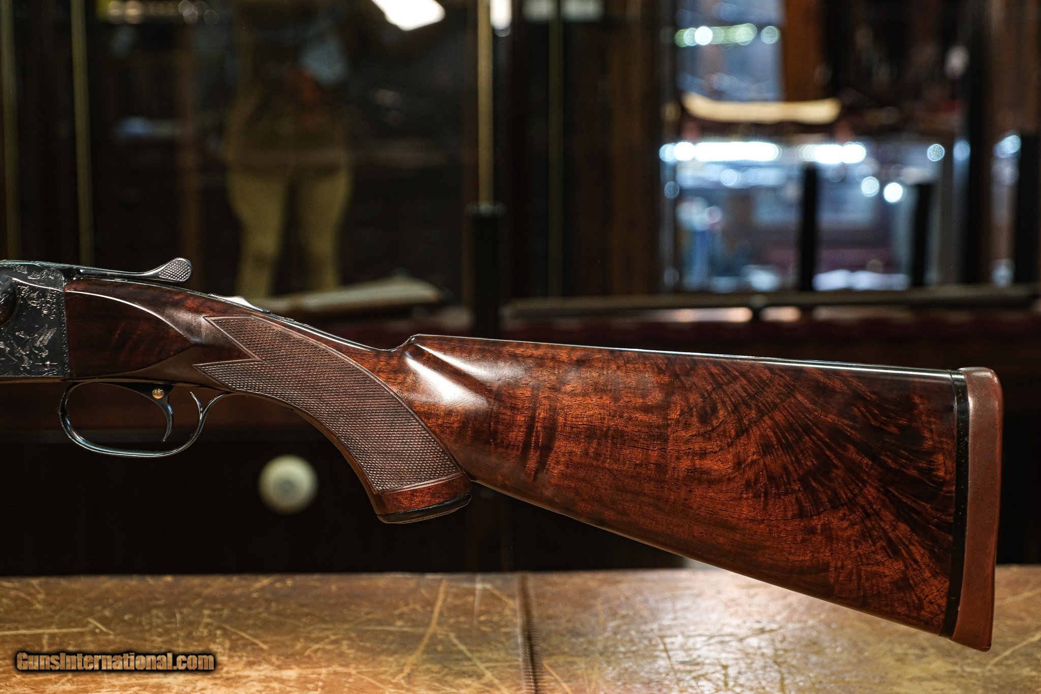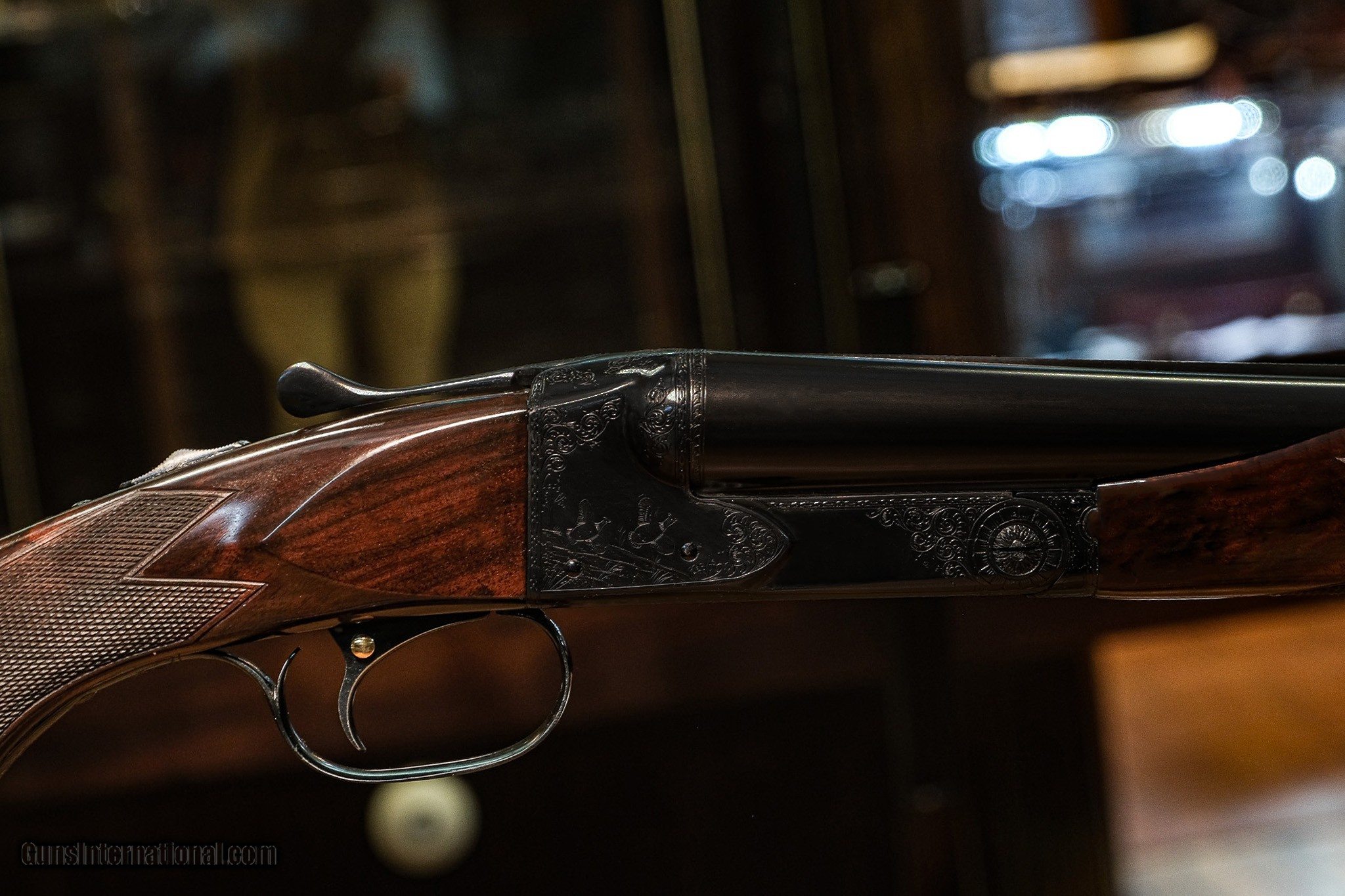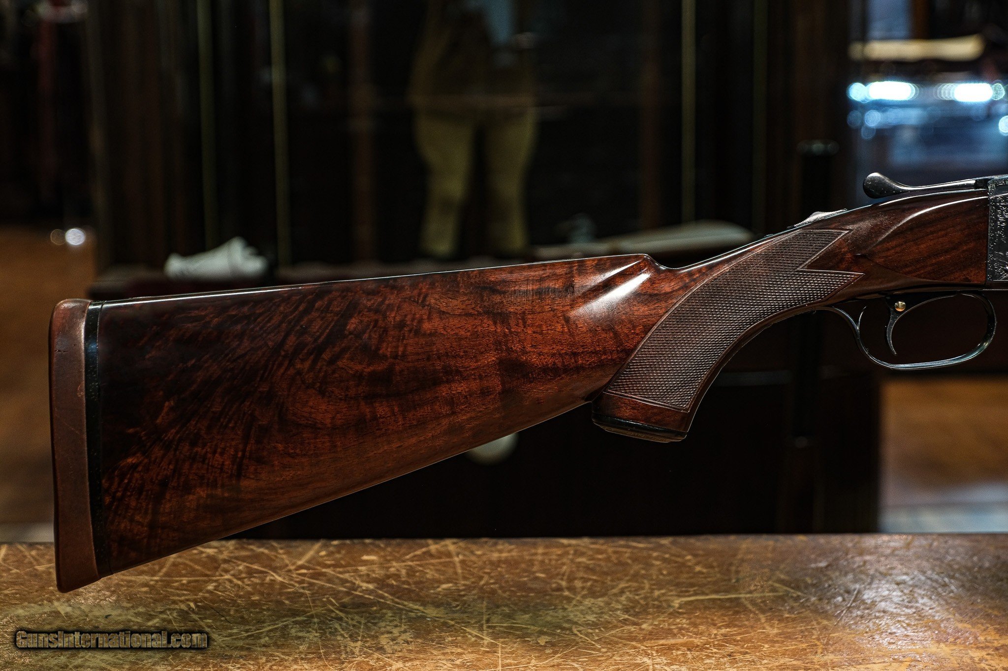 Description: Winchester - Model 21, SxS, Factory #4 Engraving, Cody Lettered, Two Barrel Set, 12ga. 30" F/F & 26" WS1/WS2. First set, 30” barrels, 3” magnum, choked F/F. Second set, 26” barrels, 2 ¾” chambers, choked WS1/WS2. Barrel flats, forend, and frame are engine turned. Made in 1954, Cody Letter states it was #4 engraved with JLW with gold inlay in trigger guard. 14 7/8”, Winchester recoil pad, matted rib, superb sharp #4 engraving, capped pistol grip, automatic safety, single trigger, ejector, everything on this gun is factory lettered. Shipped to Clayton, Missouri. Gun was returned to the factory, altered and adjusted in 1967, per the letter. Very unusual and rare gun. 99% wood finish, barrel blue, and checkering. One of the ultimate collectibles. Inv: 86063 7 lbs. 15 oz. 14 7/8” x 2” x 3 ¼" $14,995.00 CT Shotgun/Galazan buys sells and trades the world’s largest inventory on Model 21 shotguns. We are experts in all phases of buying, selling, and repairing as well as restoration of these very complex guns we have handled more Model 21 in all regards than all other companies put together. we have bought sold and manufactured most of the Grand Royal and Grand American grade guns and we understand them intimately. In 1994, Galazan/CT Shotgun purchased the Winchester Custom Shop from U.S. Repeating Arms Company and at that time designated the sole manufacturer and authorized repair for the Model 21, we purchased all of the inventory machining tooling and highly regarded trade secrets in regards to manufacturing and repairing maintaining these intricate shotguns. CT Shotgun/Galazan continues to perform the only authorized factory service on all these fine guns if you are interested in purchasing repairing or altering a Model 21 we should be your sole source when it comes to a Model 21 every gun we sell is serviced and inspected, comes with our lifetime warranty. CT/Galazan also has all assorted accessories, original style cases and recoil pads. WHY BUY A MODEL 21? 1. No one knows the gun better than us. 2. We are the only authorized repair facility for Model 21s. 3. We build the new Winchester Model 21. 4. We build the CSMC Model 21. 5. Every gun receives a safety inspection before sold to a customer. 6. Most guns are detailed, cleaned & lubricated and any parts charged to make them as factory new. 7. Fair honesty, reputable dealing for over 20 years. 8. Very competitive pricing. If you compare our guns to any other gun on the market, you will find in most instance that our guns are the best value. The best are brought up to factory specs which, in some cases, can be more than the gun. 9. The largest collection of Model 21s in the world. 10. With any Model 21 SxS you buy from us; we offer a lifetime mechanical warranty. SOLD |
