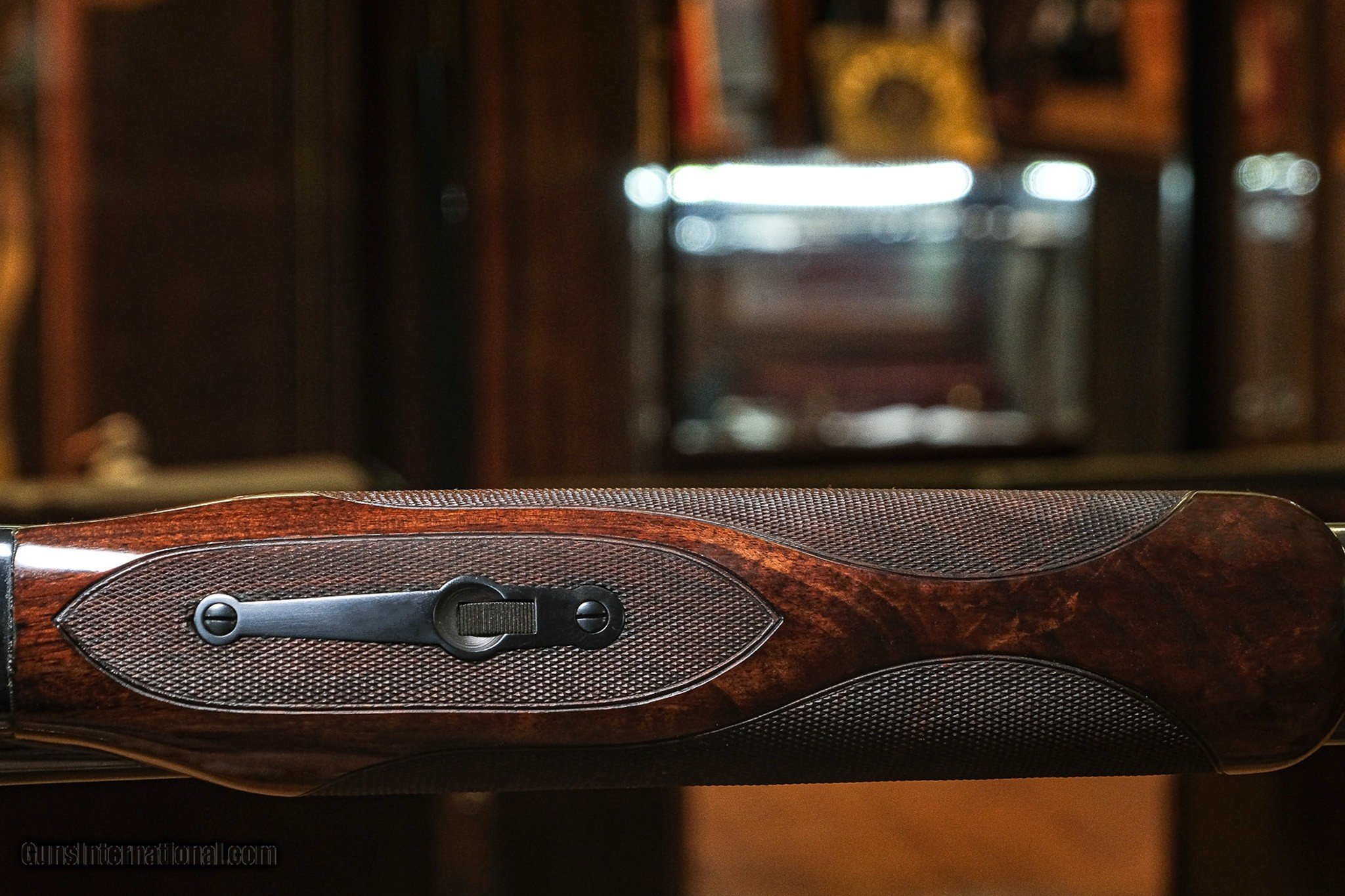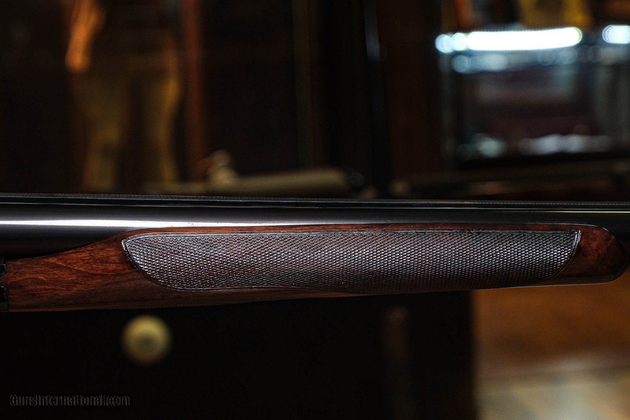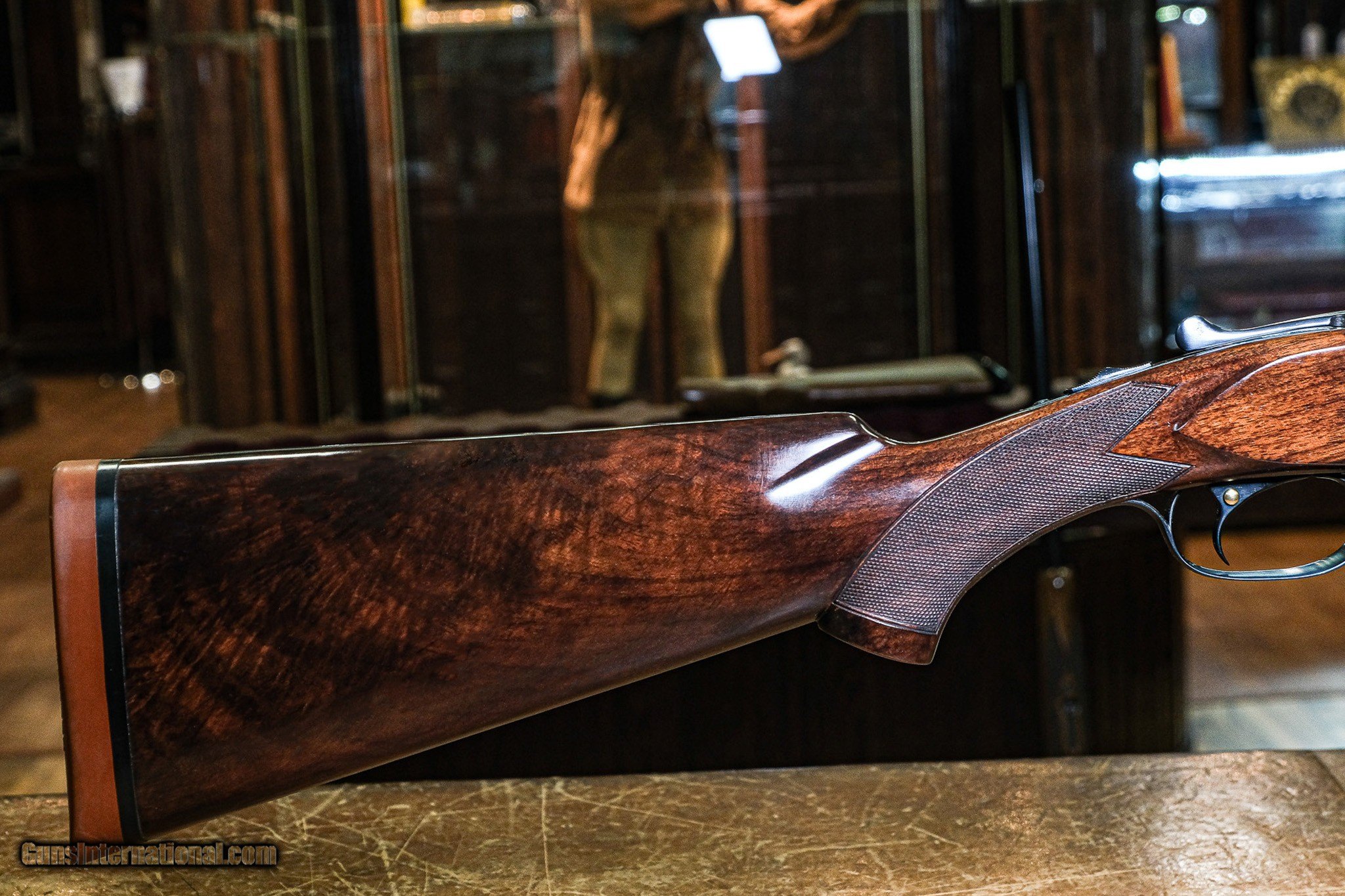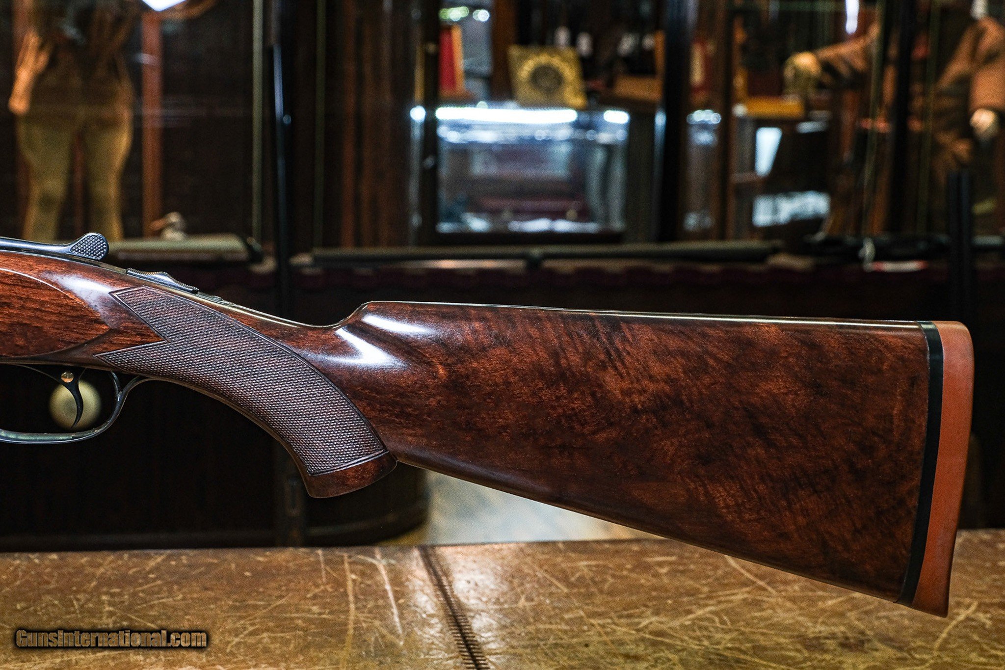 Description: Winchester - Model 21, SxS, Tournament Grade, Two Barrel Set, 12ga. 26" WS1/WS2 & 30" M/F. One beavertail forend with kidney pattern checkering, full fancy American black walnut pistol grip stock, factory Winchester pad, single selective trigger, automatic ejectors, solid matte ribs, 99% condition throughout, available for immediate delivery. S & H - $50.00. Inv: 34085 7 lbs. 10 oz. 14 ¾" x 1 ½" x 2 ¼" $9,999.00 CT Shotgun/Galazan buys sells and trades the world’s largest inventory on Model 21 shotguns. We are experts in all phases of buying, selling, and repairing as well as restoration of these very complex guns we have handled more Model 21 in all regards than all other companies put together. we have bought sold and manufactured most of the Grand Royal and Grand American grade guns and we understand them intimately. In 1994, Galazan/CT Shotgun purchased the Winchester Custom Shop from U.S. Repeating Arms Company and at that time designated the sole manufacturer and authorized repair for the Model 21, we purchased all of the inventory machining tooling and highly regarded trade secrets in regards to manufacturing and repairing maintaining these intricate shotguns. CT Shotgun/Galazan continues to perform the only authorized factory service on all these fine guns if you are interested in purchasing repairing or altering a Model 21 we should be your sole source when it comes to a Model 21 every gun we sell is serviced and inspected, comes with our lifetime warranty. CT/Galazan also has all assorted accessories, original style cases and recoil pads. WHY BUY A MODEL 21? 1. No one knows the gun better than us. 2. We are the only authorized repair facility for Model 21s. 3. We build the new Winchester Model 21. 4. We build the CSMC Model 21. 5. Every gun receives a safety inspection before sold to a customer. 6. Most guns are detailed, cleaned & lubricated and any parts charged to make them as factory new. 7. Fair honesty, reputable dealing for over 20 years. 8. Very competitive pricing. If you compare our guns to any other gun on the market, you will find in most instance that our guns are the best value. The best are brought up to factory specs which, in some cases, can be more than the gun. 9. The largest collection of Model 21s in the world. 10. With any Model 21 SxS you buy from us; we offer a lifetime mechanical warranty. SOLD |