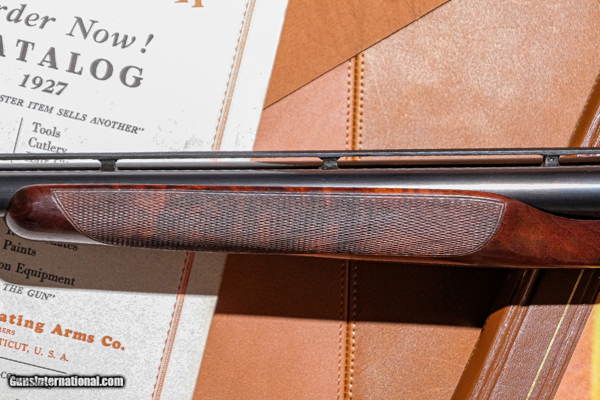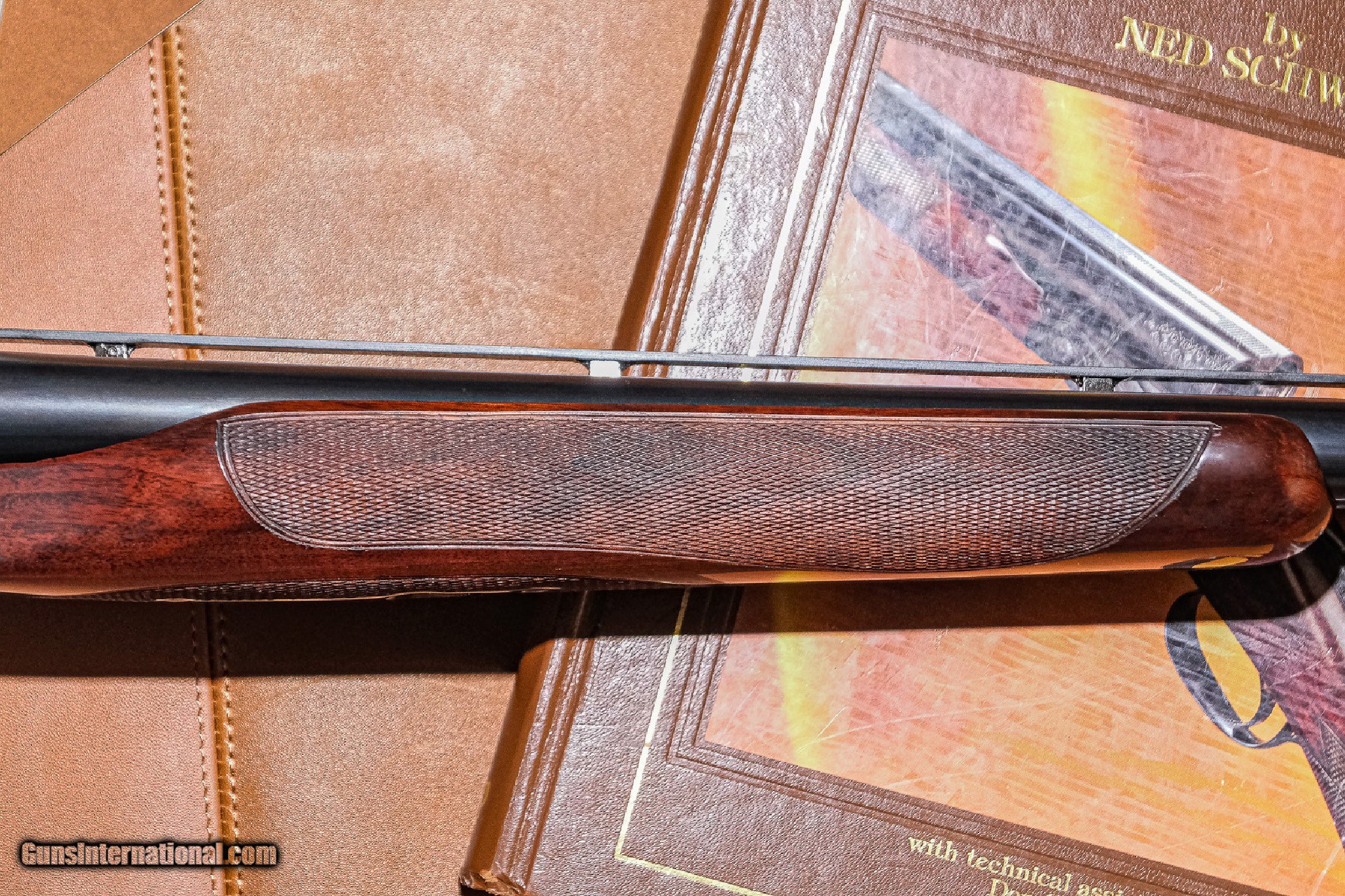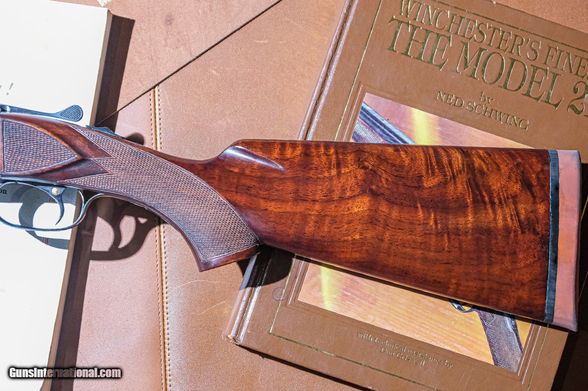 Description: Winchester - Model 21, SxS, Trap Grade, 12ga. 30" Vent Rib Barrels Choked F/F. 2 ¾” chambers, single selective trigger, automatic ejector, kidney style checkering with checkered side panels and three-point checkering on stock, Winchester pad, pistol grip. This is a rare factory vent rib gun. Highly figured wood. 99% blue, wood finish, and checkering. Perfect pins and screws. This is a rare configuration. Warrantied for life to the original owner courtesy of Connecticut Shotgun. Inv: 90656 7 lbs. 13 oz. 14" x 1 3/8" x 1 7/8" $7,995.00 CT Shotgun/Galazan buys sells and trades the world’s largest inventory on Model 21 shotguns. we are experts in all phases of buying, selling, and repairing as well as restoration of these very complex guns we have handled more Model 21 in all regards than all other companies put together. we have bought sold and manufactured most of the Grand Royal and Grand American grade guns and we understand them intimately. In 1994, Galazan/CT Shotgun purchased the Winchester Custom Shop from U.S. Repeating Arms Company and at that time designated the sole manufacturer and authorized repair for the Model 21, we purchased all of the inventory machining tooling and highly regarded trade secrets in regards to manufacturing and repairing maintaining these intricate shotguns. CT Shotgun/Galazan continues to perform the only authorized factory service on all these fine guns if you are interested in purchasing repairing or altering a Model 21 we should be your sole source when it comes to a Model 21 every gun we sell is serviced and inspected, comes with our lifetime warranty. CT/Galazan also has all assorted accessories, original style cases and recoil pads. WHY BUY A MODEL 21? 1. No one knows the gun better than us. 2. We are the only authorized repair facility for Model 21s. 3. We build the new Winchester Model 21. 4. We build the CSMC Model 21. 5. Every gun receives a safety inspection before sold to a customer. 6. Most guns are detailed, cleaned & lubricated and any parts charged to make them as factory new. 7. Fair honesty, reputable dealing for over 50 years. 8. Very competitive pricing. If you compare our guns to any other gun on the market, you will find in most instance that our guns are the best value. The best are brought up to factory specs which, in some cases, can be more than the gun. 9. The largest collection of Model 21s in the world. 10. Why any Model 21 SxS you buy from us; we offer a lifetime mechanical warranty. The largest, most diverse, high-grade shotgun and firearms inventory in history. There is no one even close and a service department to back up everything we sell with our unparalleled warranty to support our customers exclusively. If someone tells you they have a larger inventory, just look for yourself. Price: $7,995.00 Contact Seller |